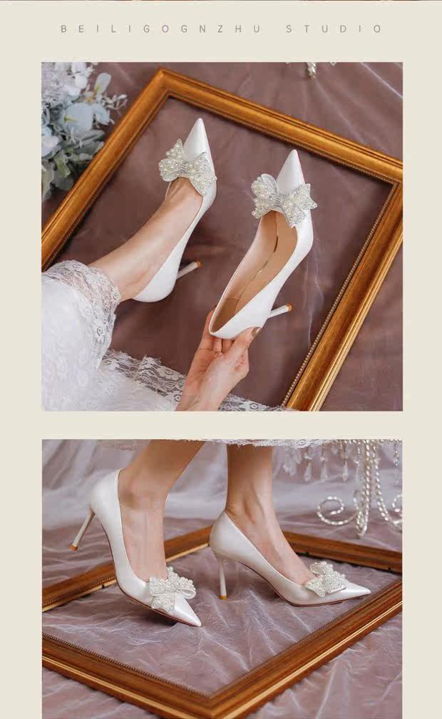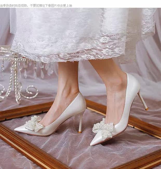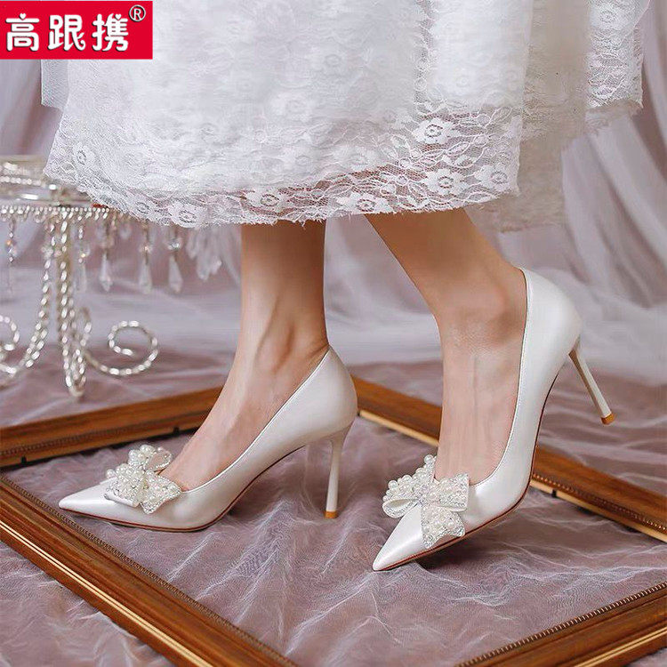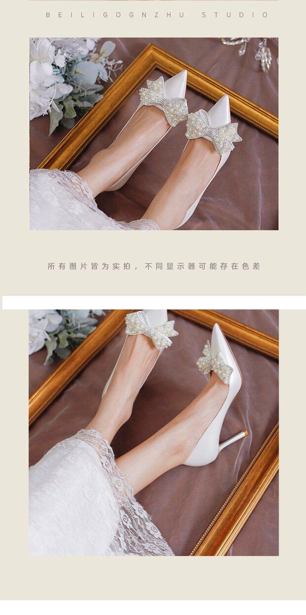 Белая универсальная обувь на высоком каблуке с бантиком с заостренным носом, 2021 года, французский стиль