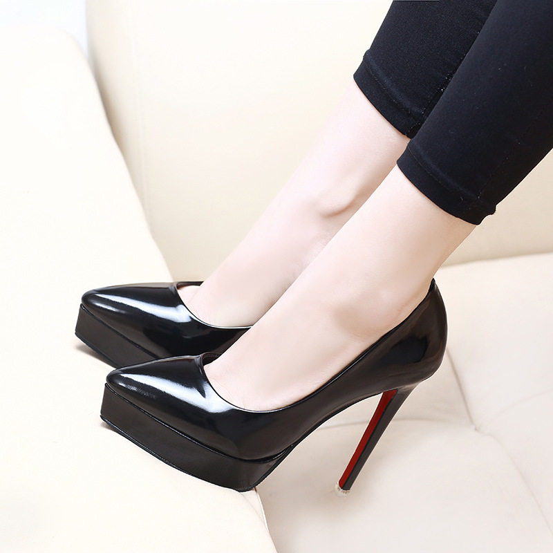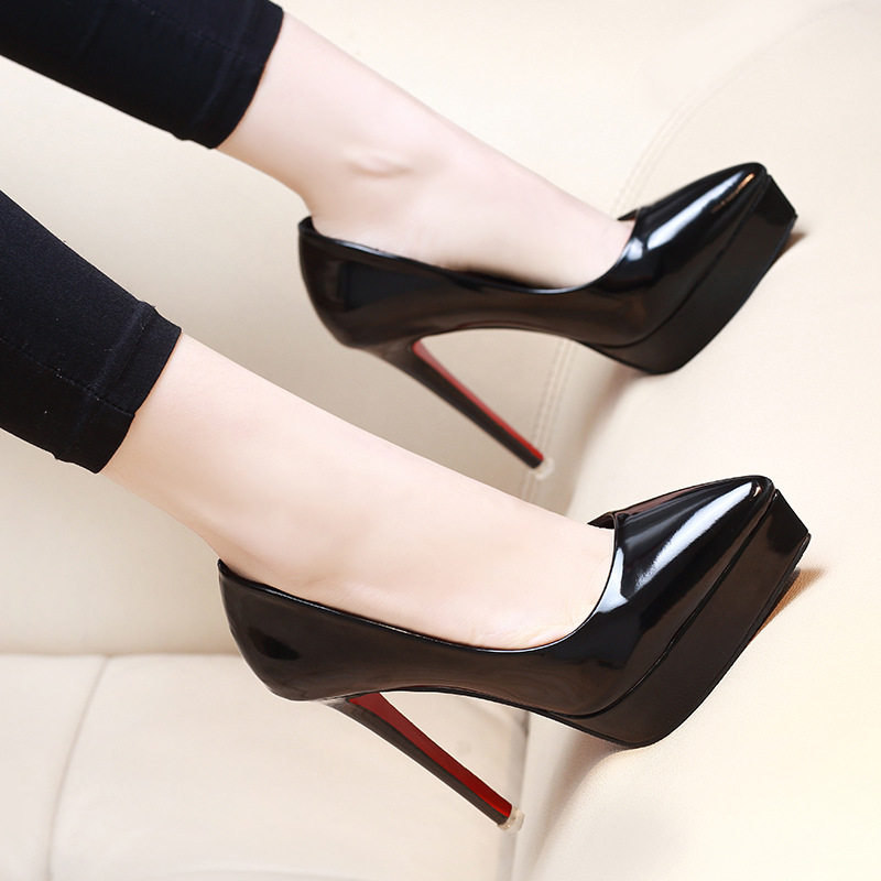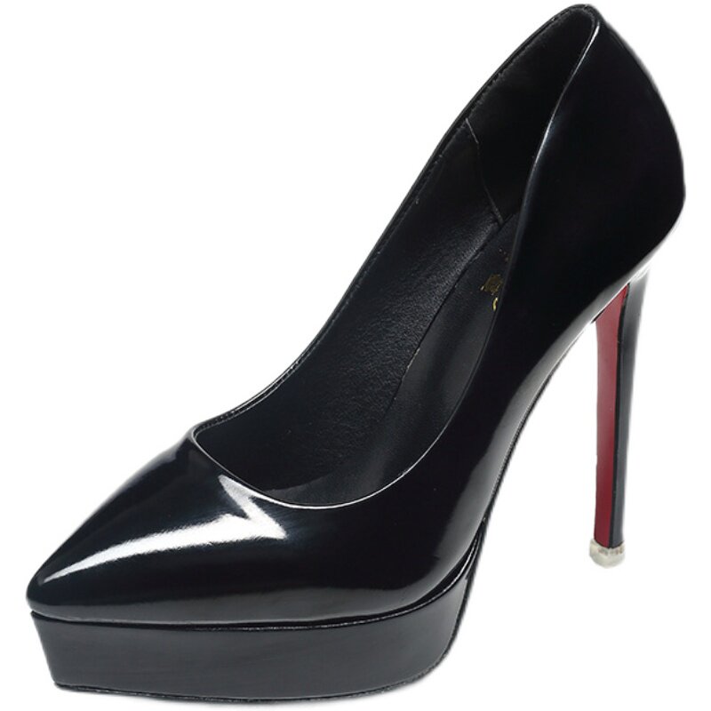 Весенняя черная рабочая обувь на высоком каблуке с заостренным носом, тренд сезона