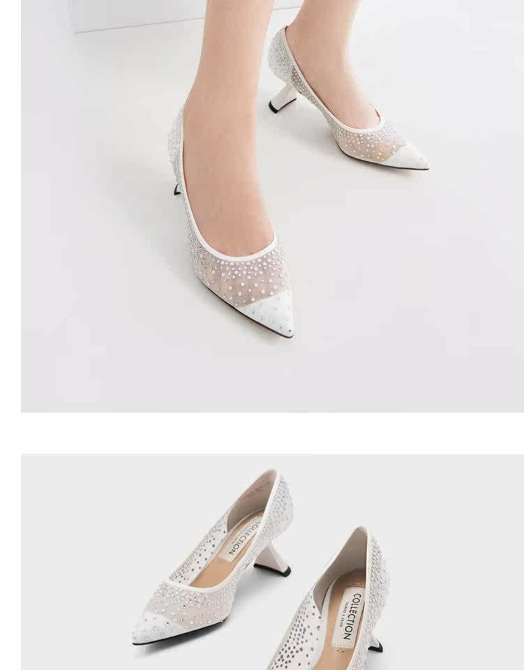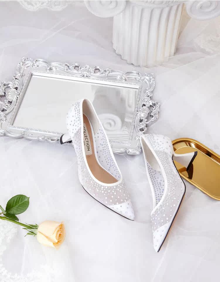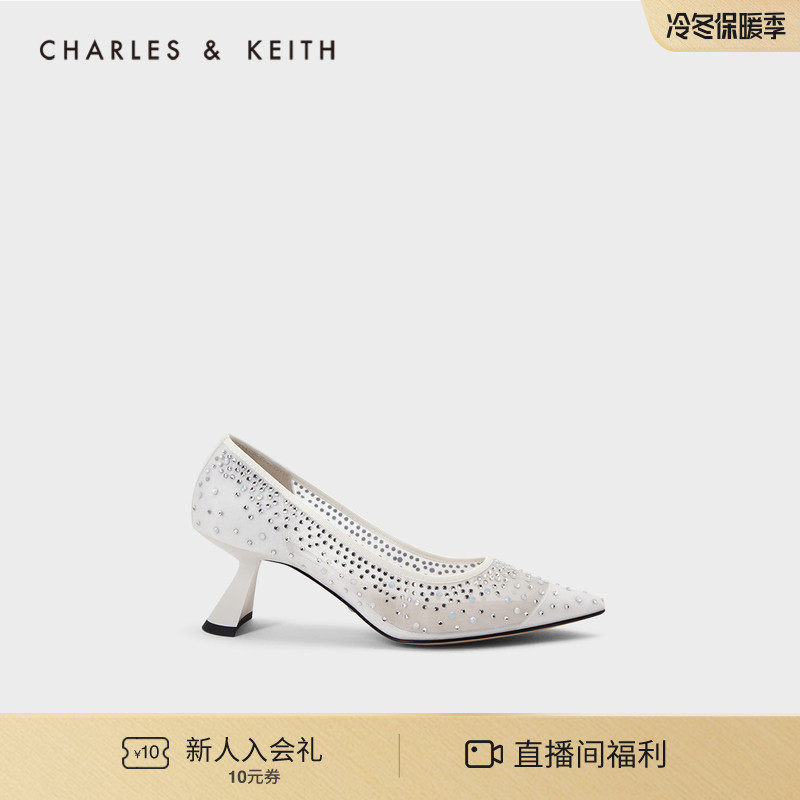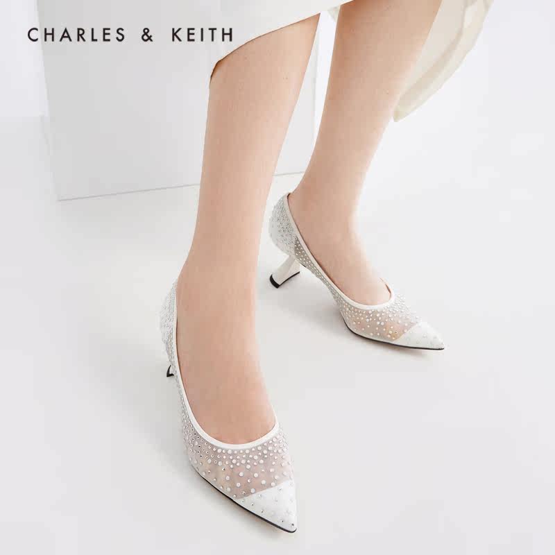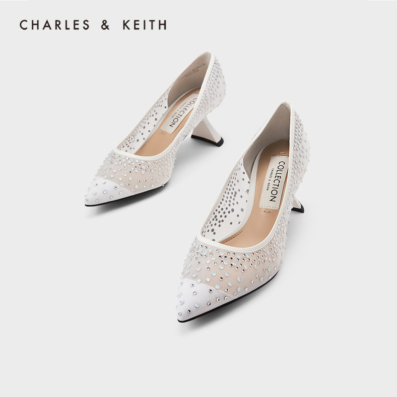 Charles&keith, демисезонные сетчатые свадебные туфли, с драгоценным камнем
