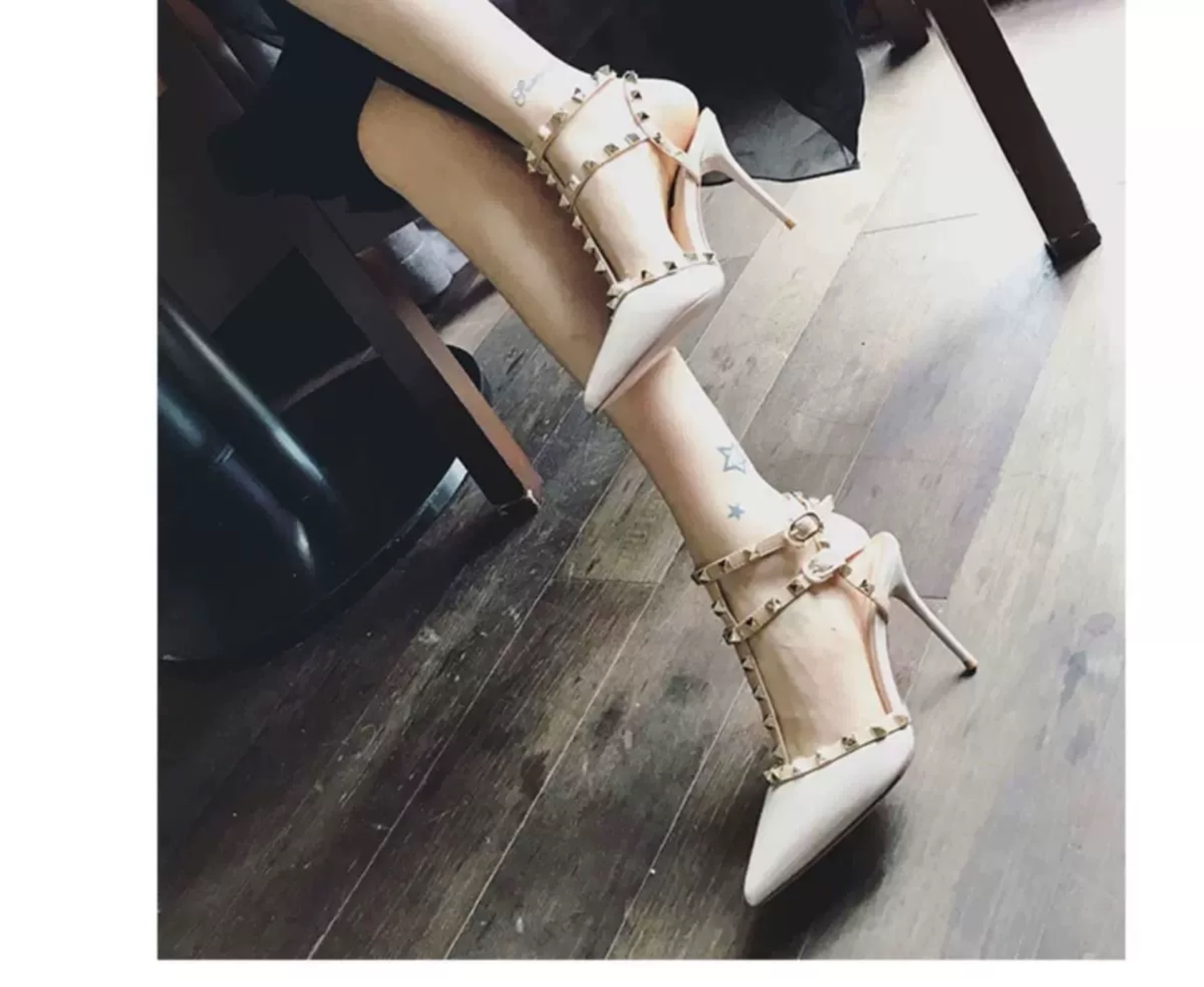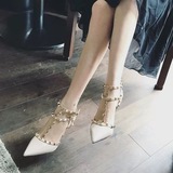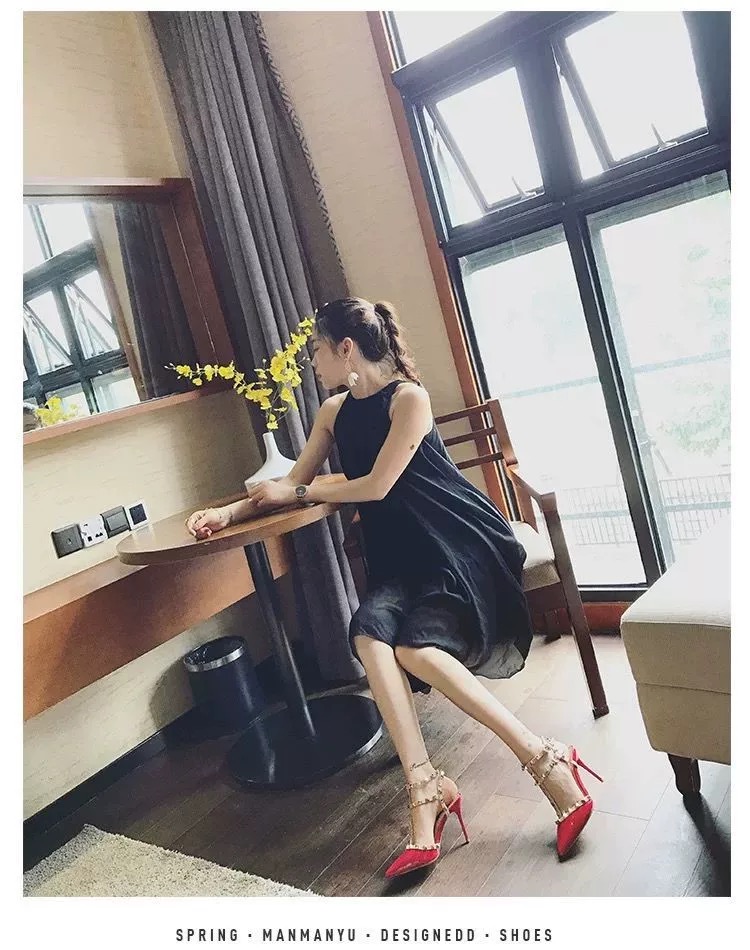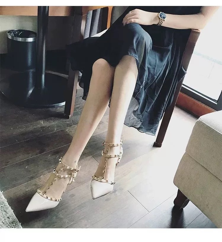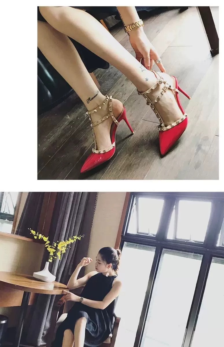 Обувь с высоким содержанием на кровати, сексуальное флирт, тонкий каблук, темперамент, заостренный ночной клуб, супер -высокое одно слово с заклепки