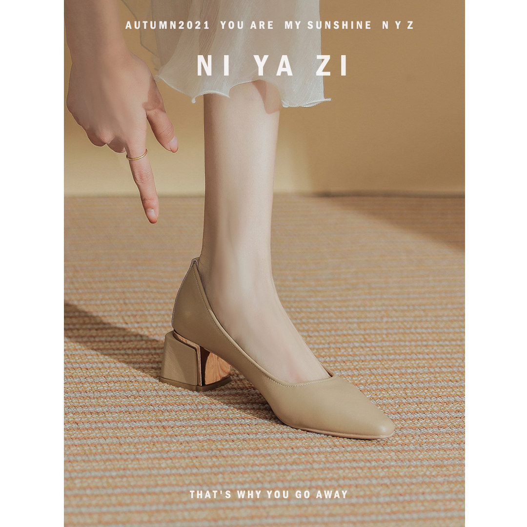 Нюдовая рабочая обувь на высоком каблуке, из натуральной кожи, мягкая подошва