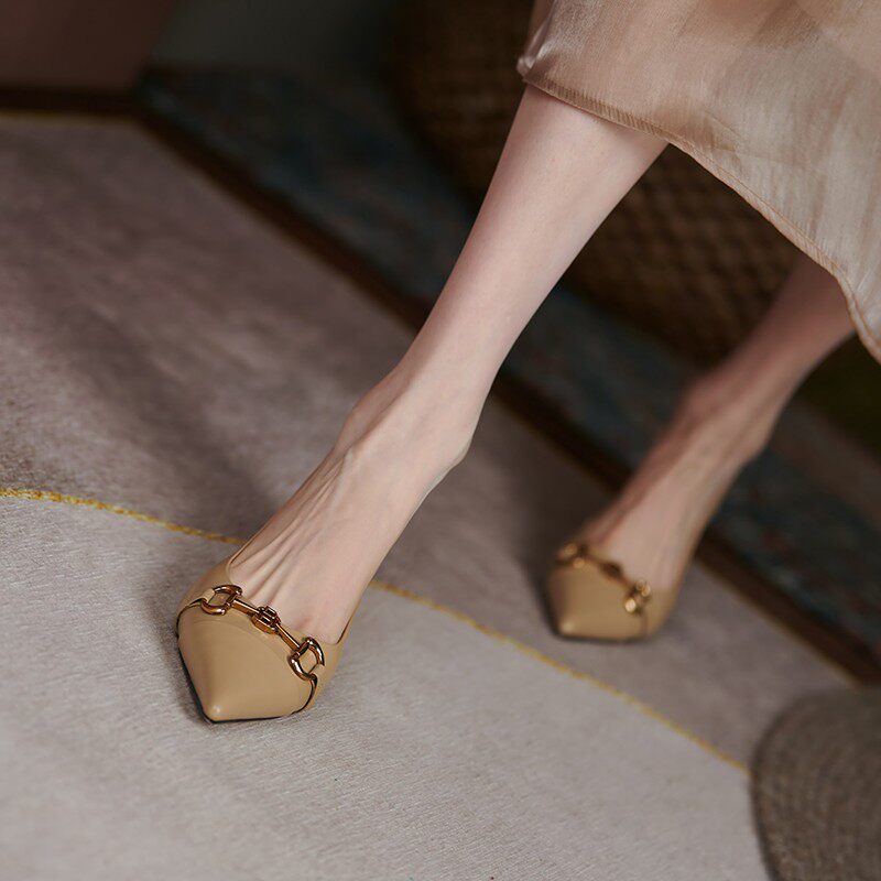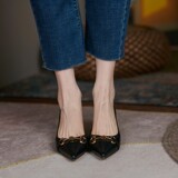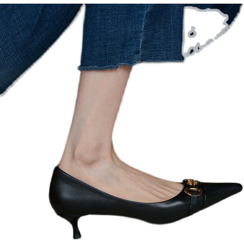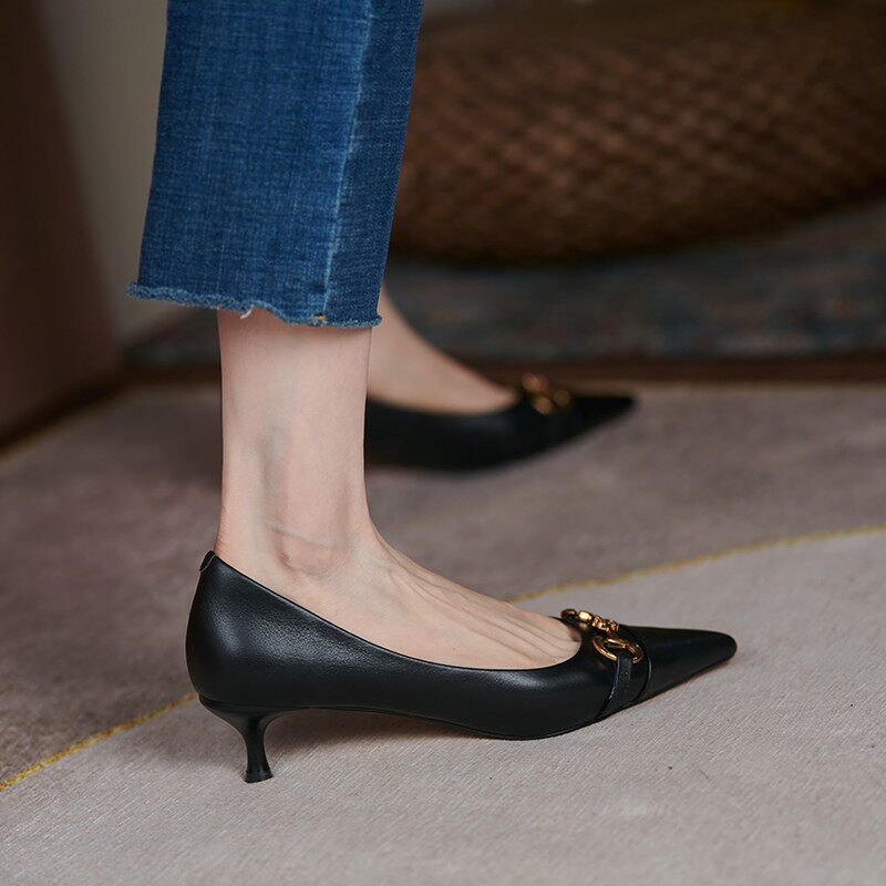 Черная универсальная обувь с заостренным носом на высоком каблуке, французский стиль, 2023, осенняя, тренд сезона, из натуральной кожи