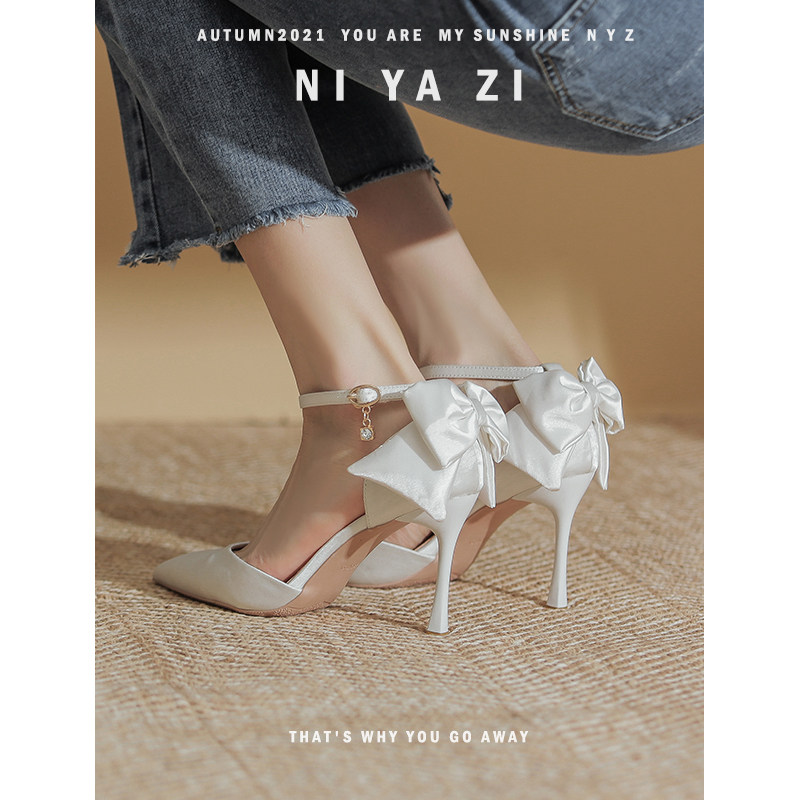 Свадебные туфли, осенняя белая обувь для невесты с заостренным носом на высоком каблуке