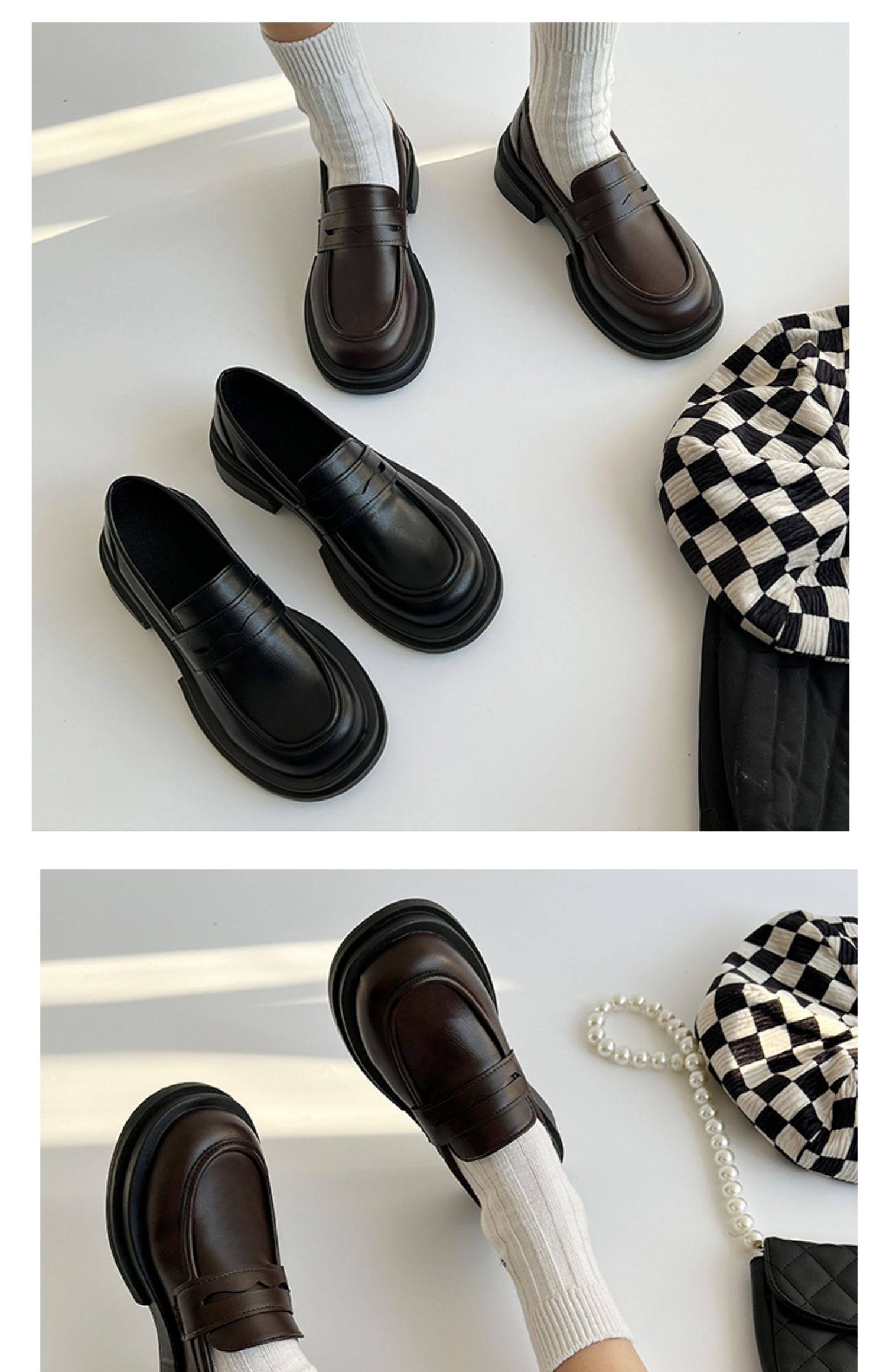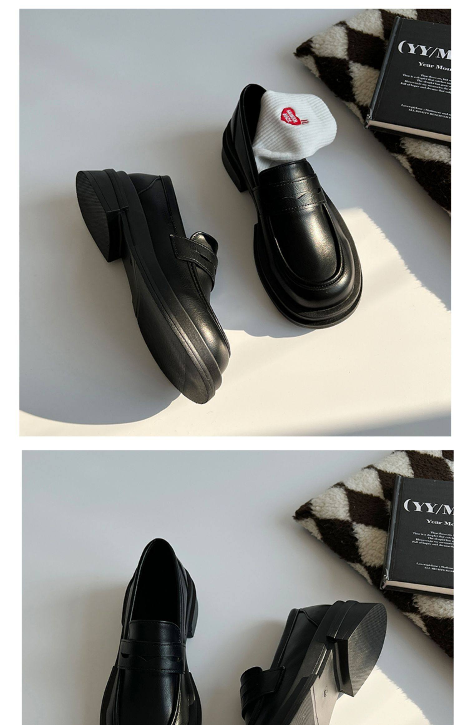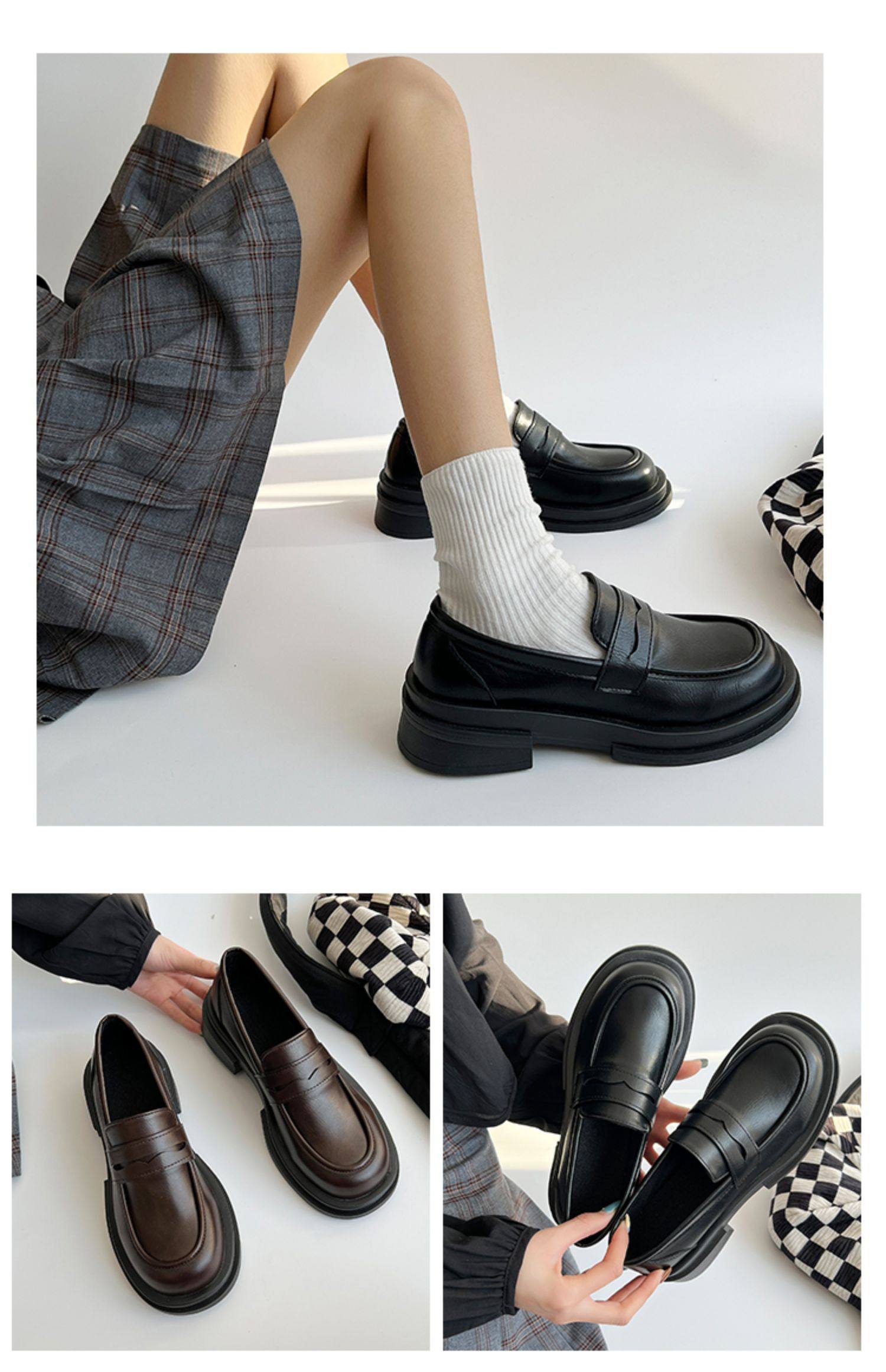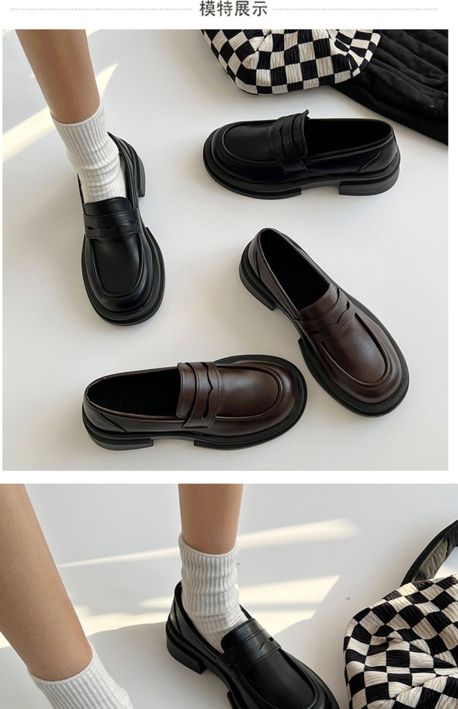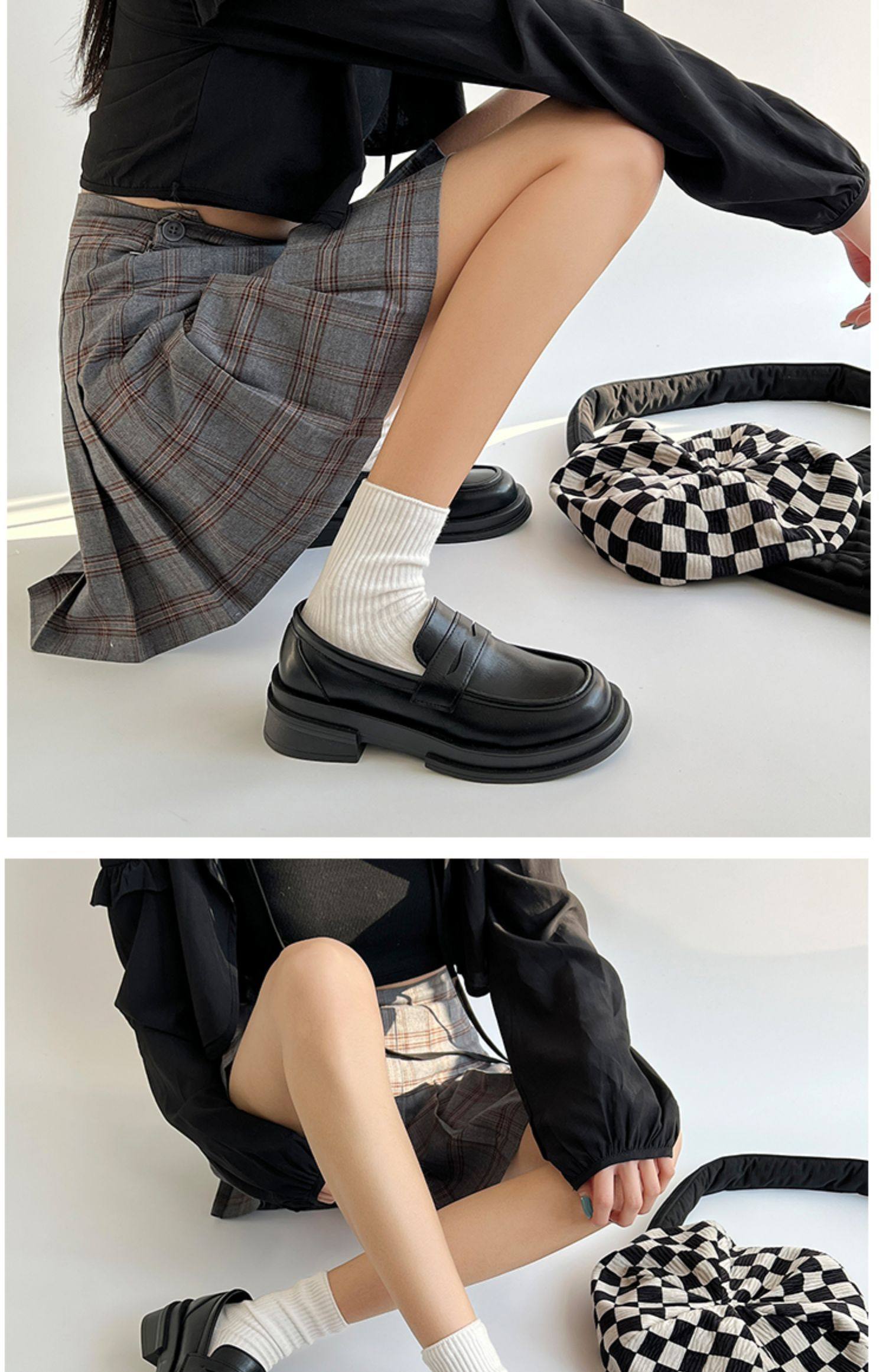 Японская весенняя обувь для кожаной обуви, черные лоферы в английском стиле на платформе, студенческая юбка в складку, тренд сезона, в британском стиле