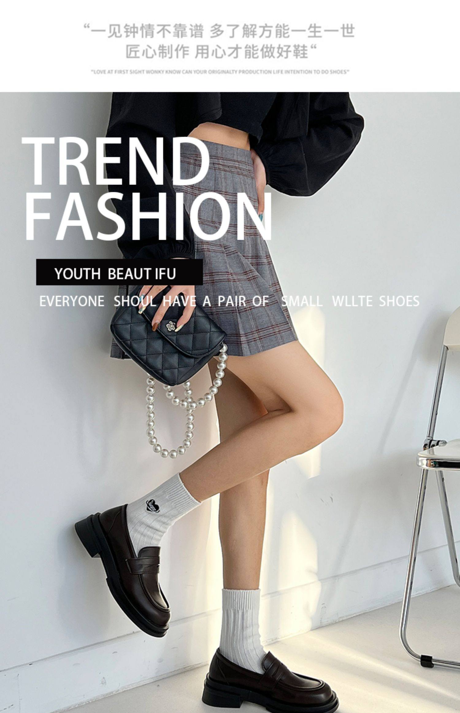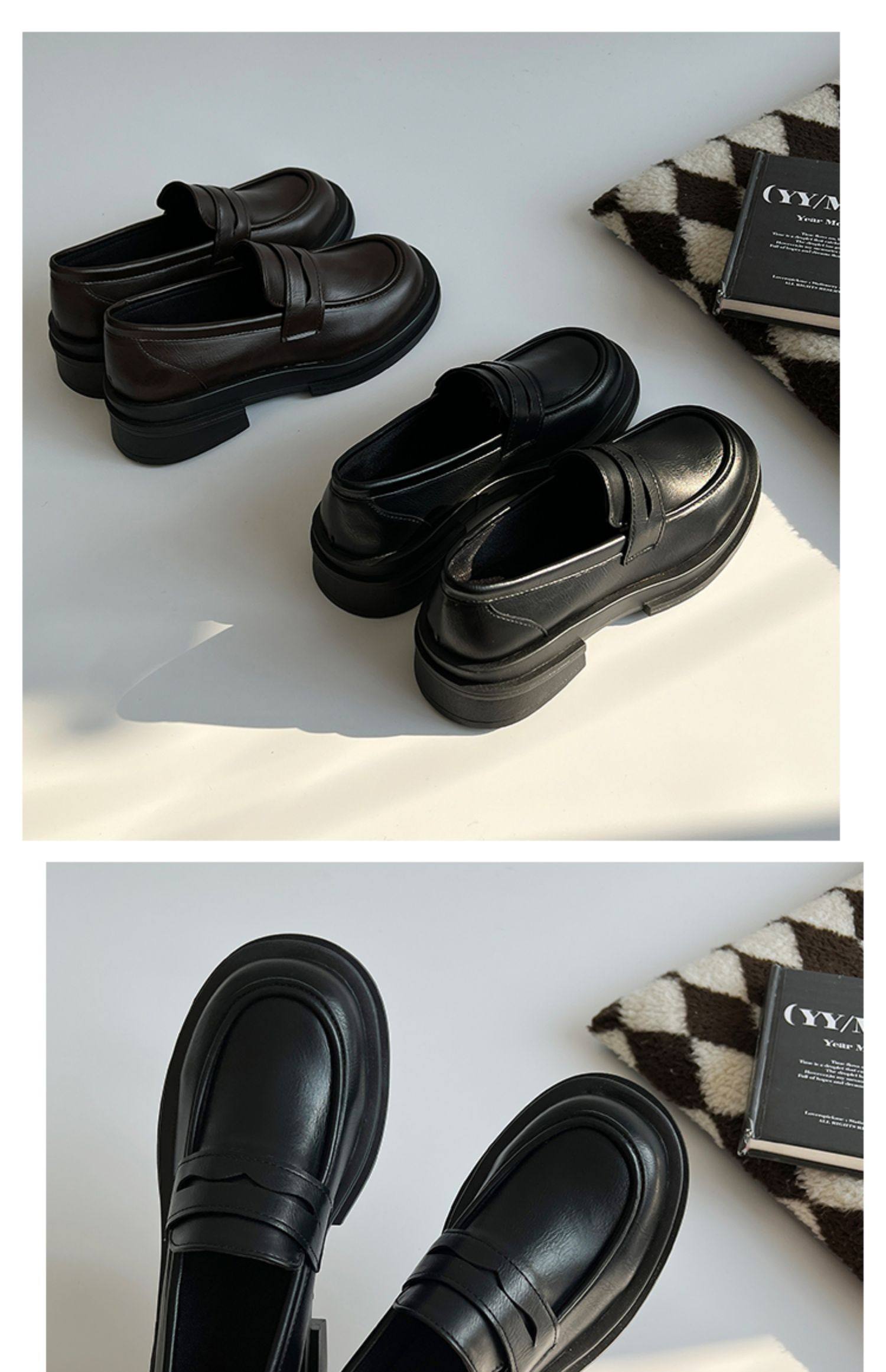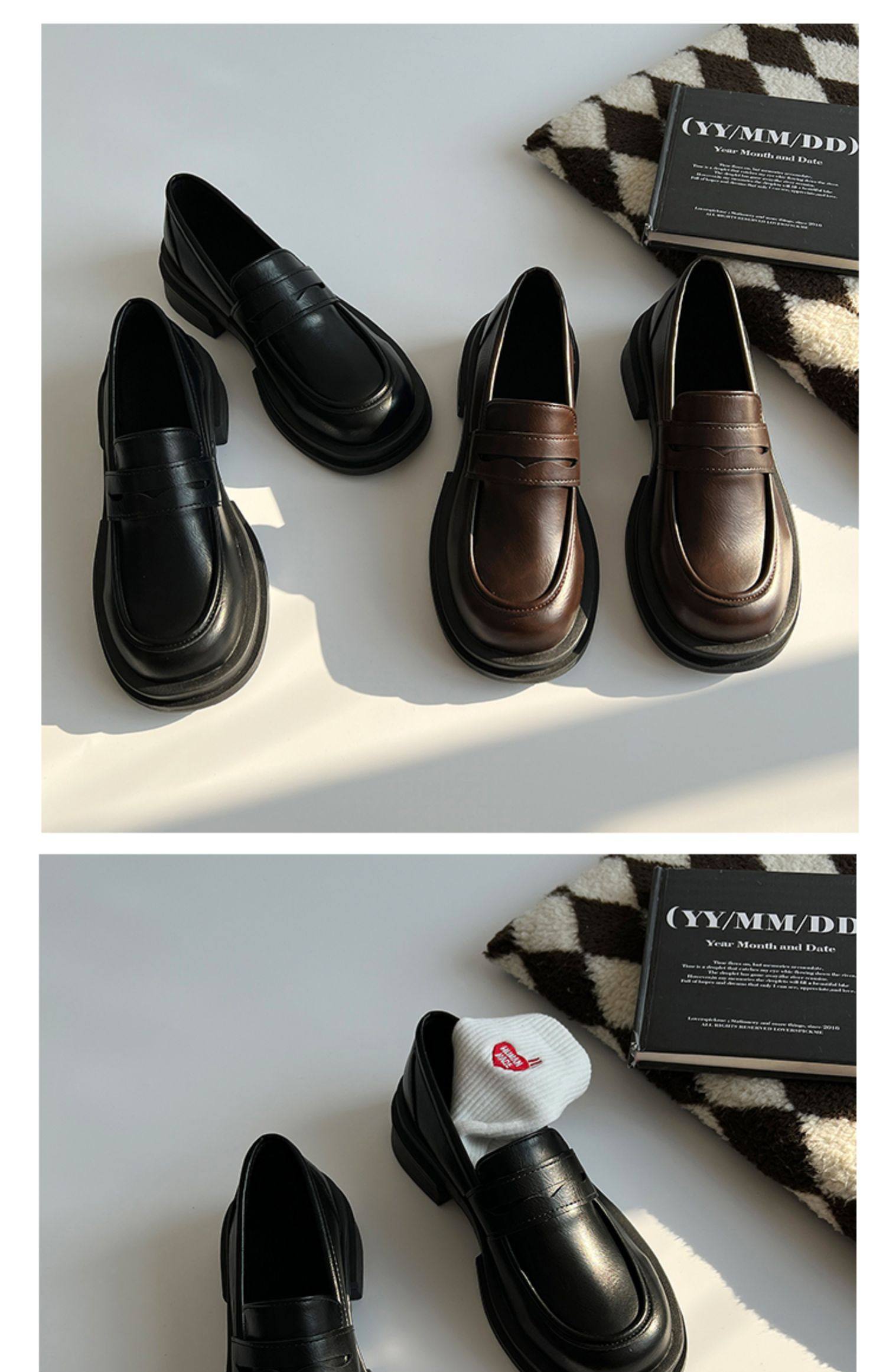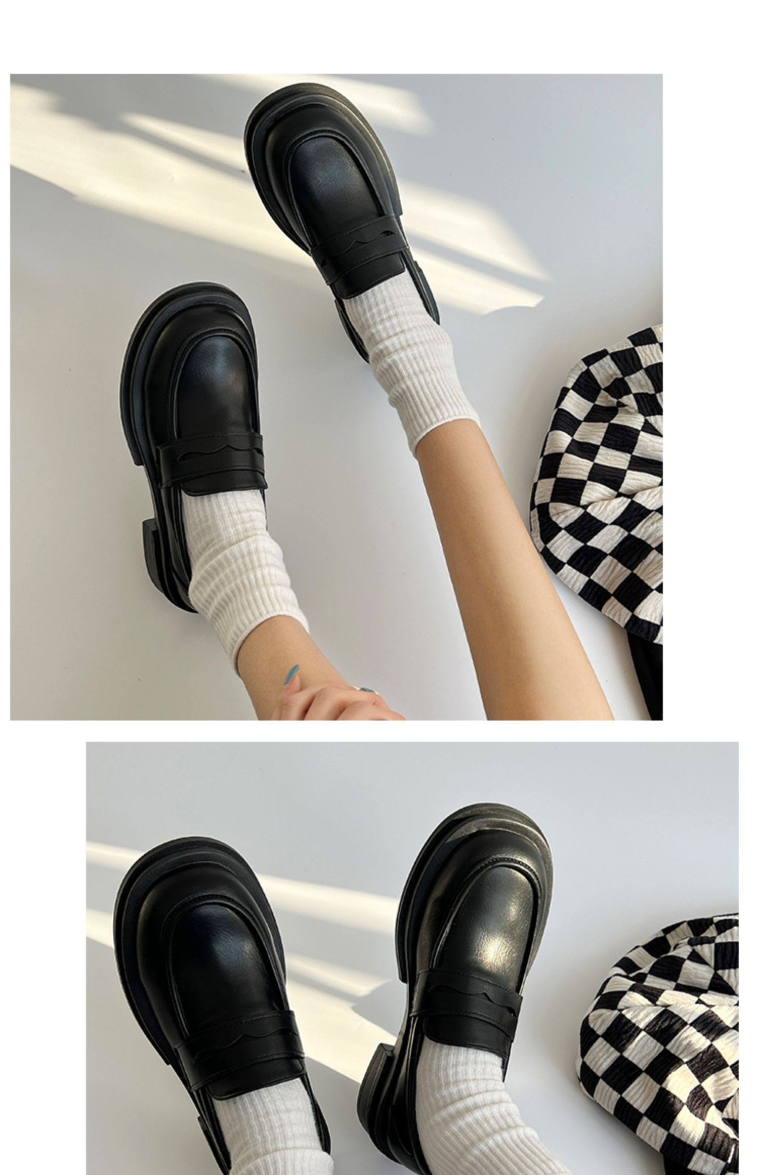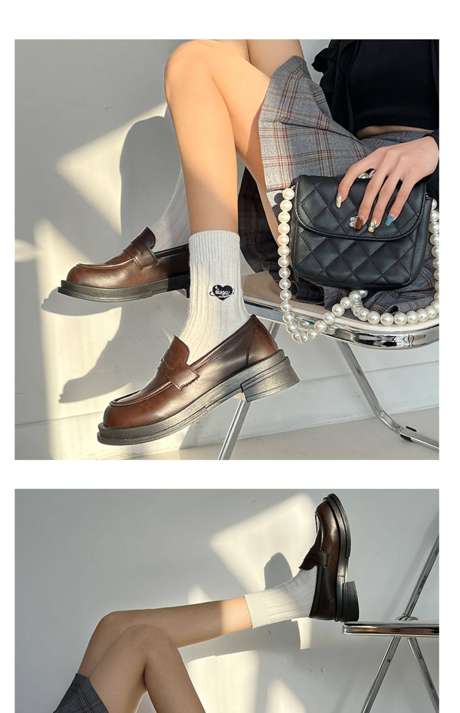 Японская весенняя обувь для кожаной обуви, черные лоферы в английском стиле на платформе, студенческая юбка в складку, тренд сезона, в британском стиле