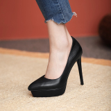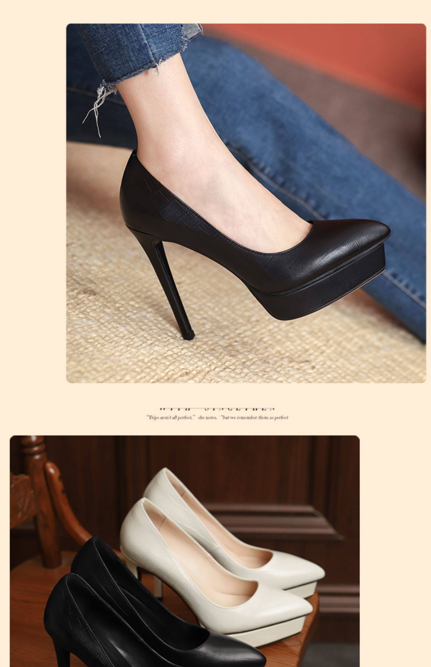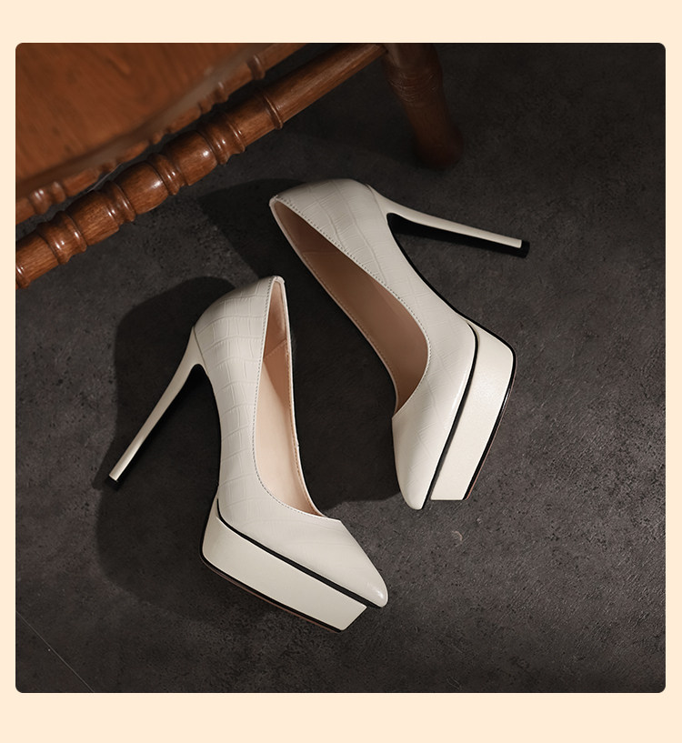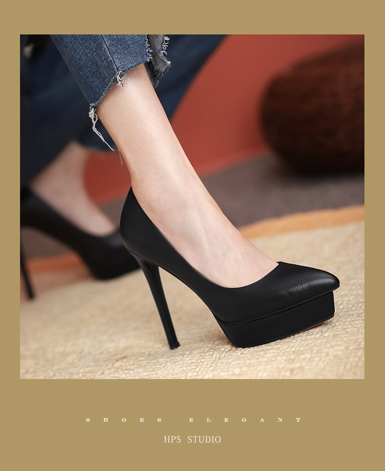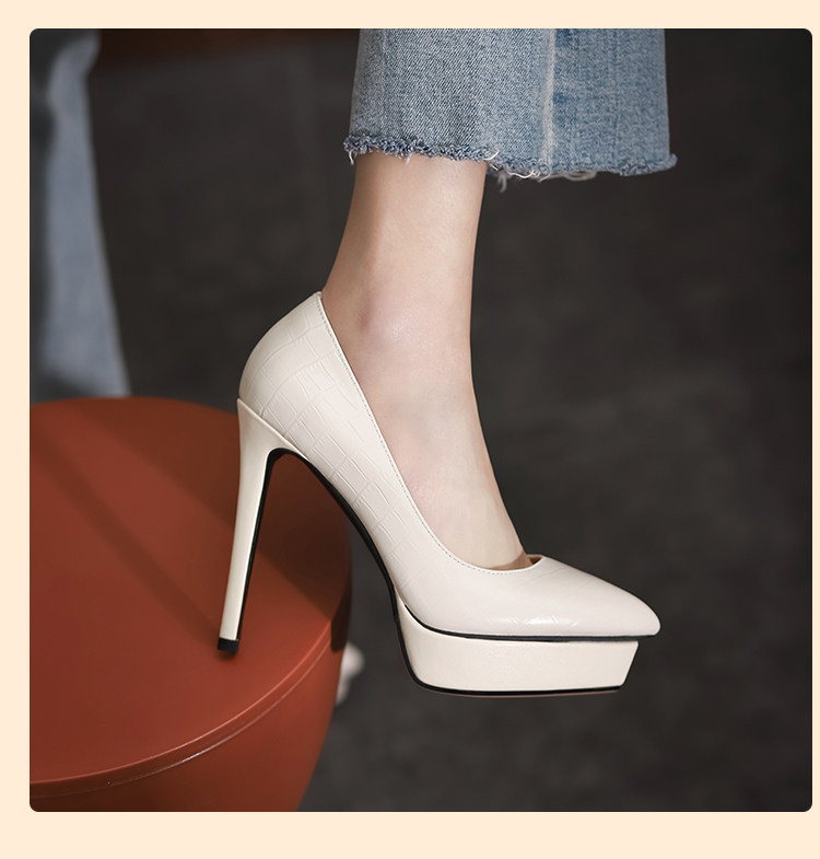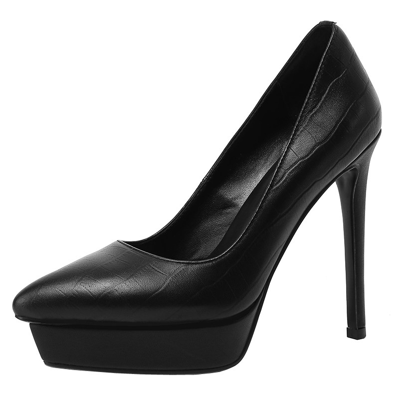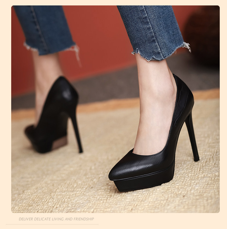 Водонепроницаемая обувь на высоком каблуке с заостренным носом, платье, сексуальные туфли, 12см, из натуральной кожи