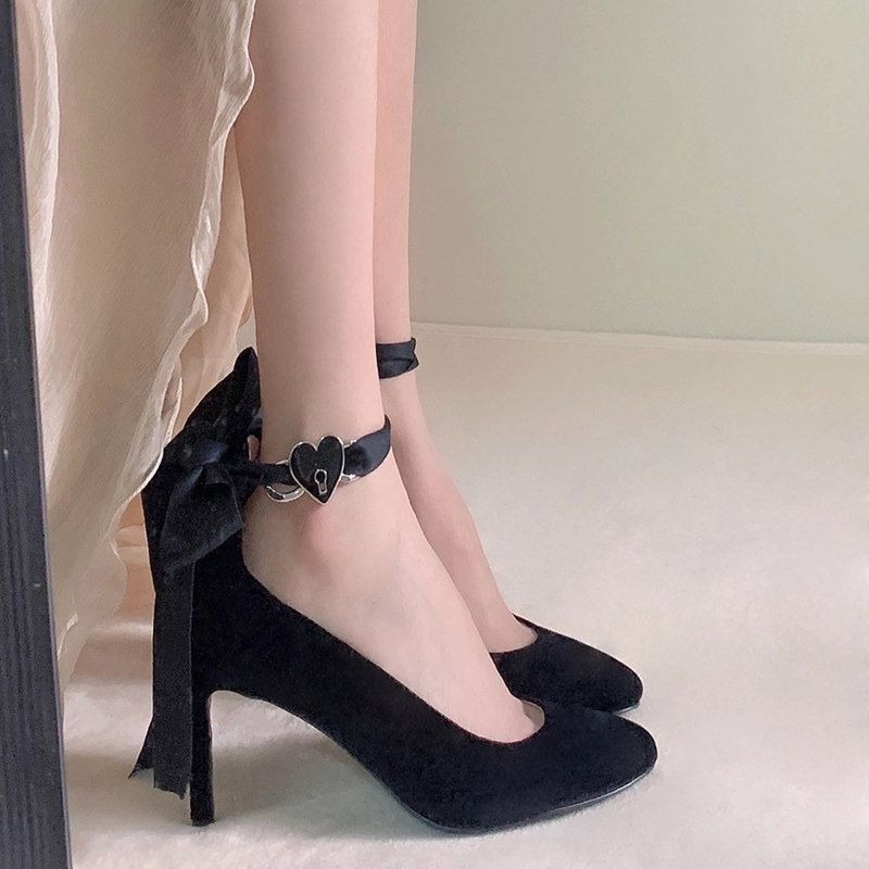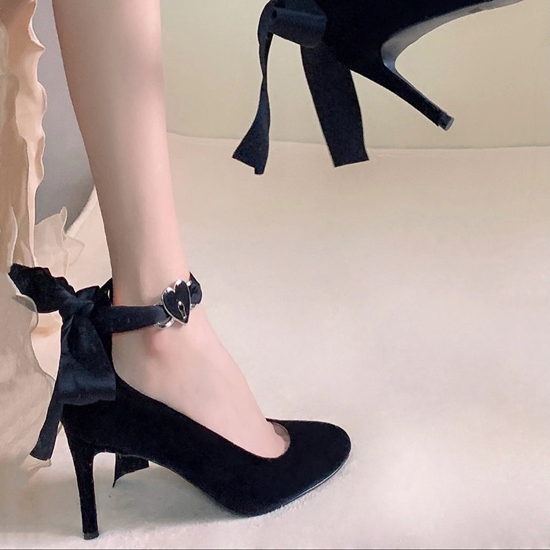Ремень на высоком каблуке, обувь, весенняя лента с заостренным носом с бантиком, 2024 года, тренд сезона