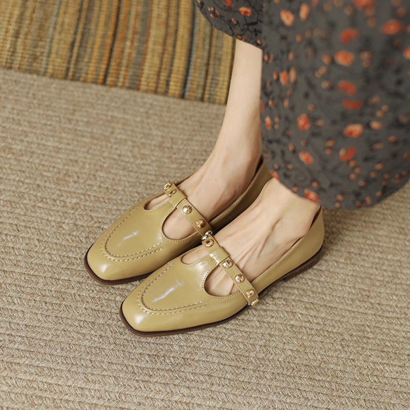 Британский стиль ретро -квадратные туфли женская весна и осенняя канава заклепки Мэри Чжэнь Женская обувь французские густые каблуки, маленькие кожаные туфли