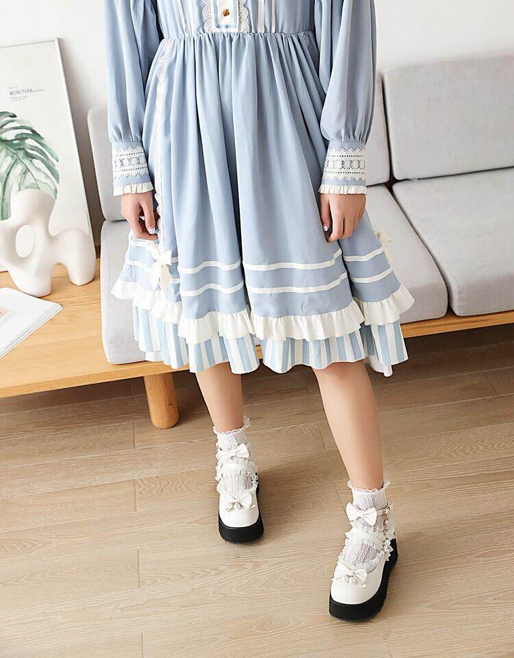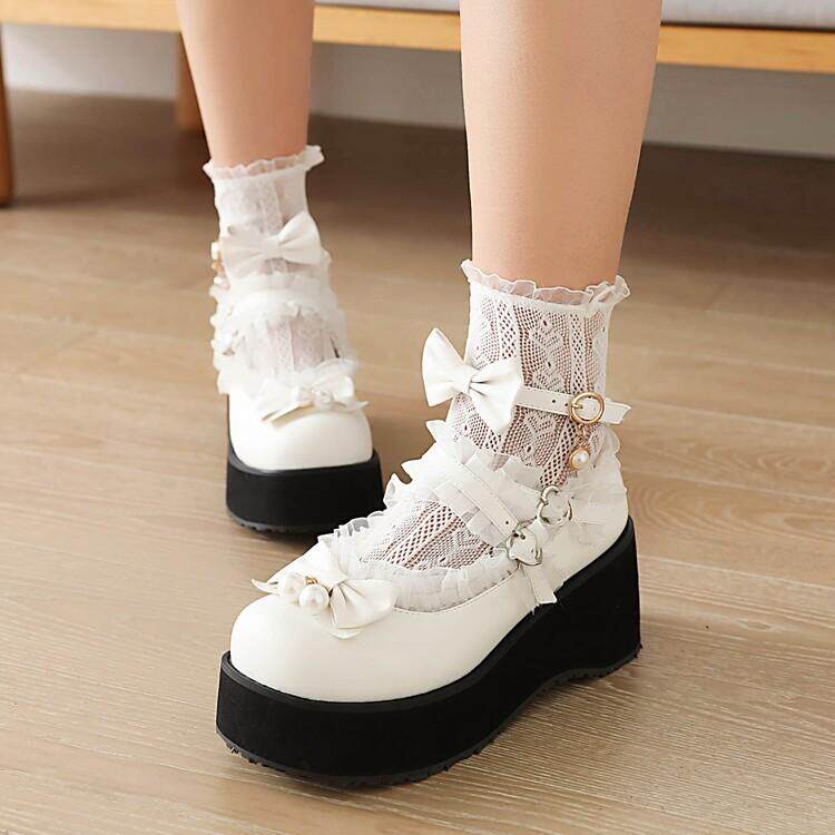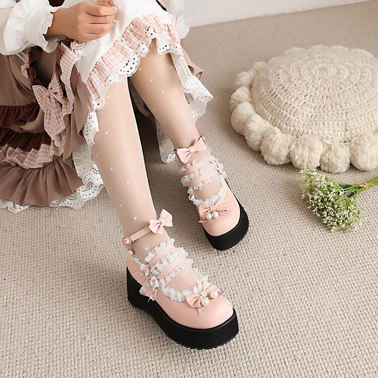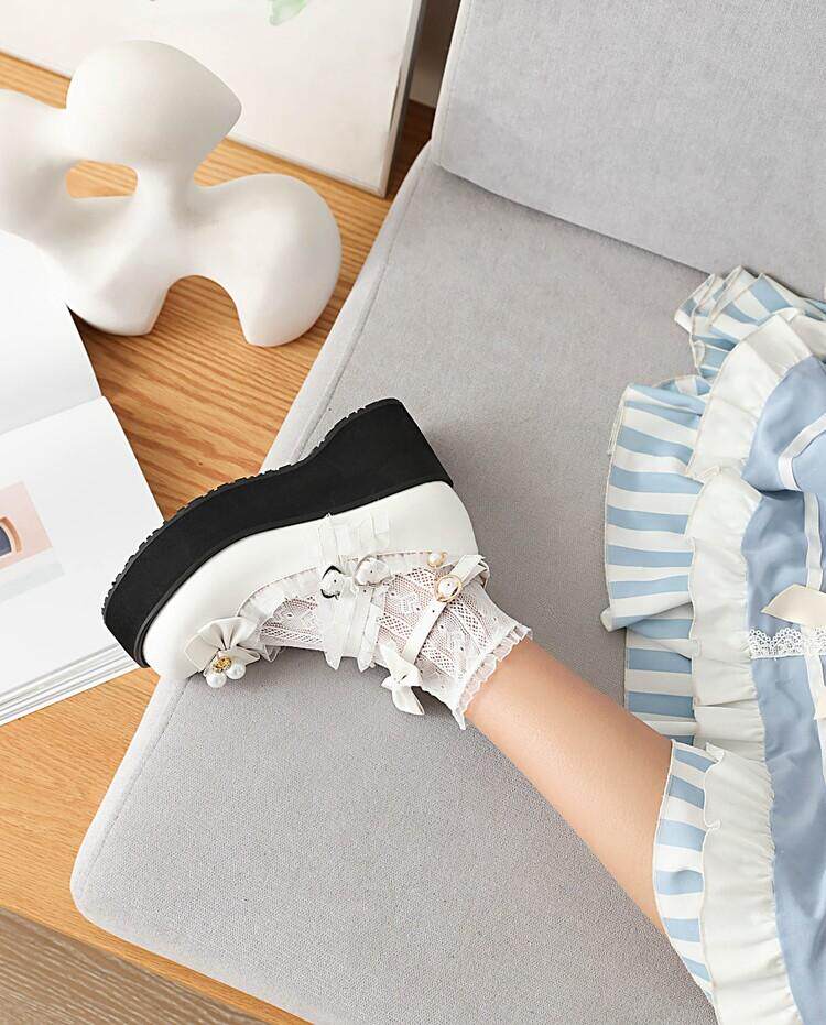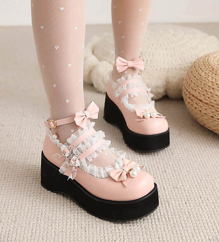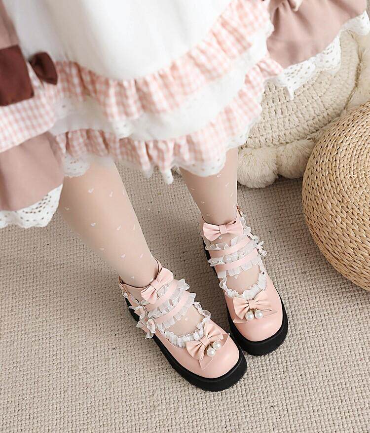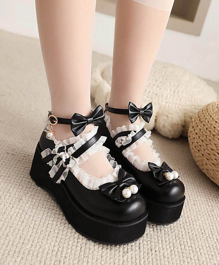 Туфли Лолиты в японском стиле для девочек, подходящая юбка, милые универсальные женские туфли Лолиты с круглым носком и бантом на толстой подошве