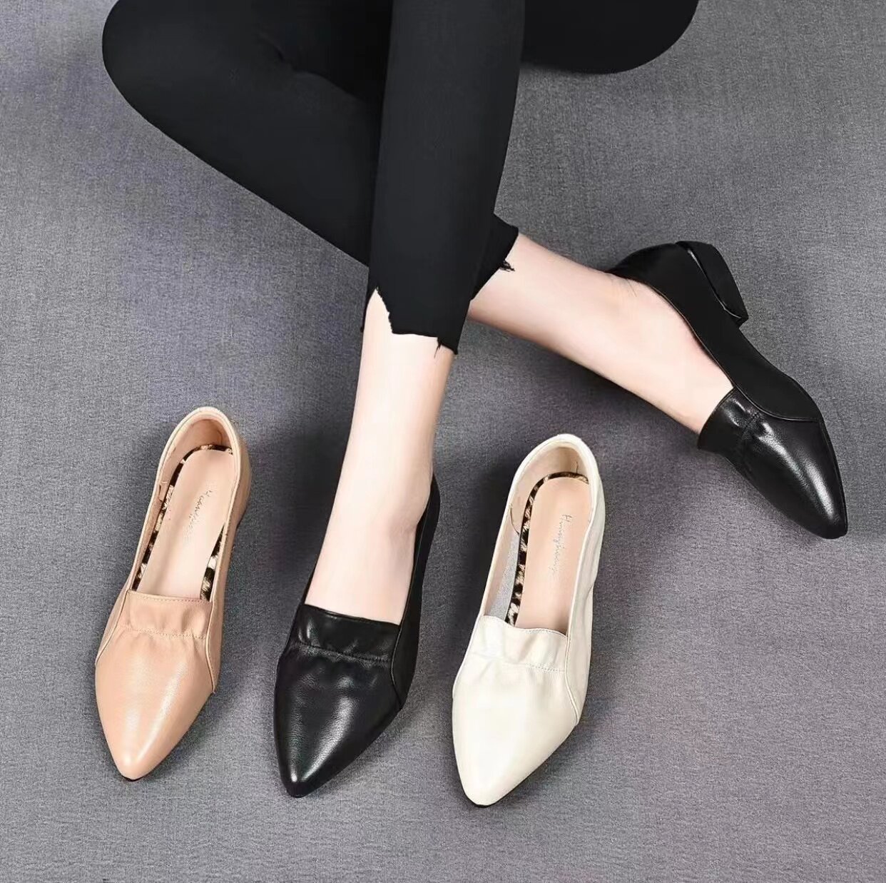 Весенняя универсальная комфортная обувь с заостренным носом с низким вырезом для матери, из натуральной кожи, коллекция 2023