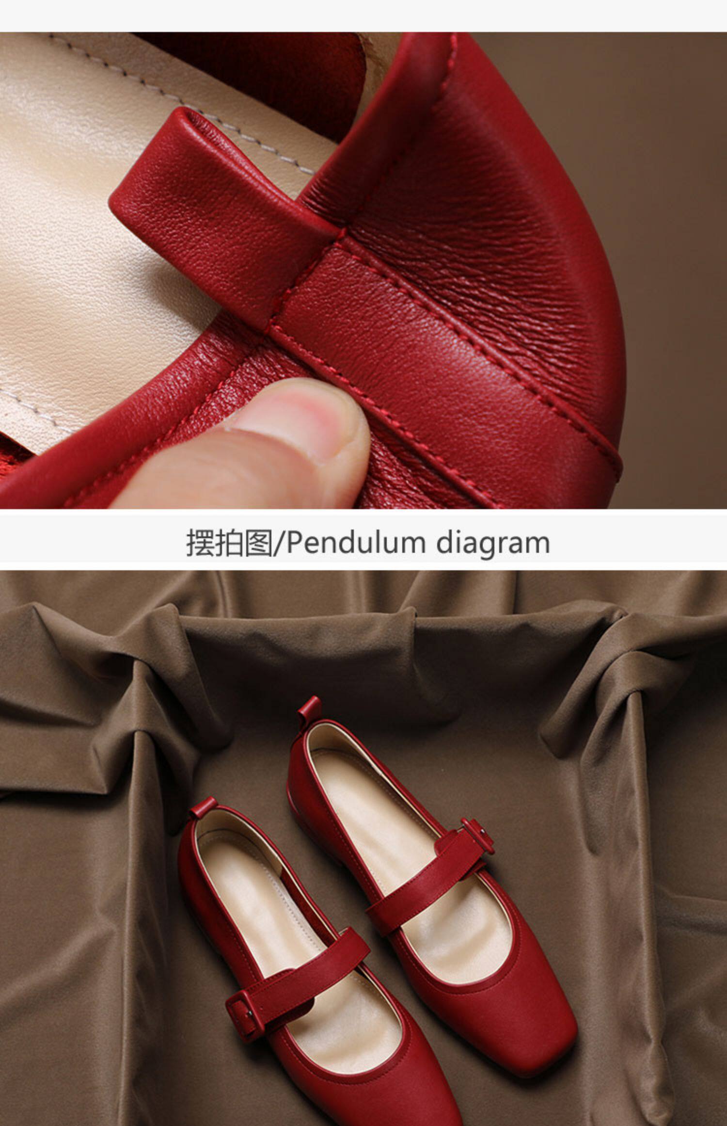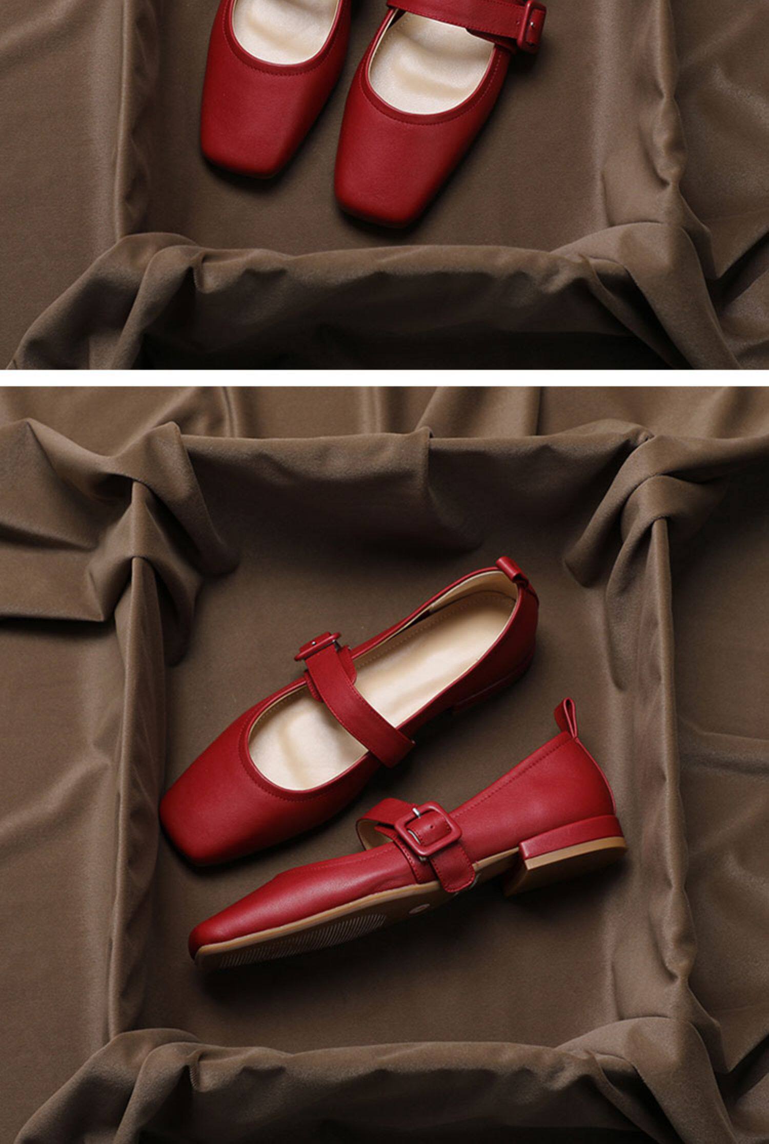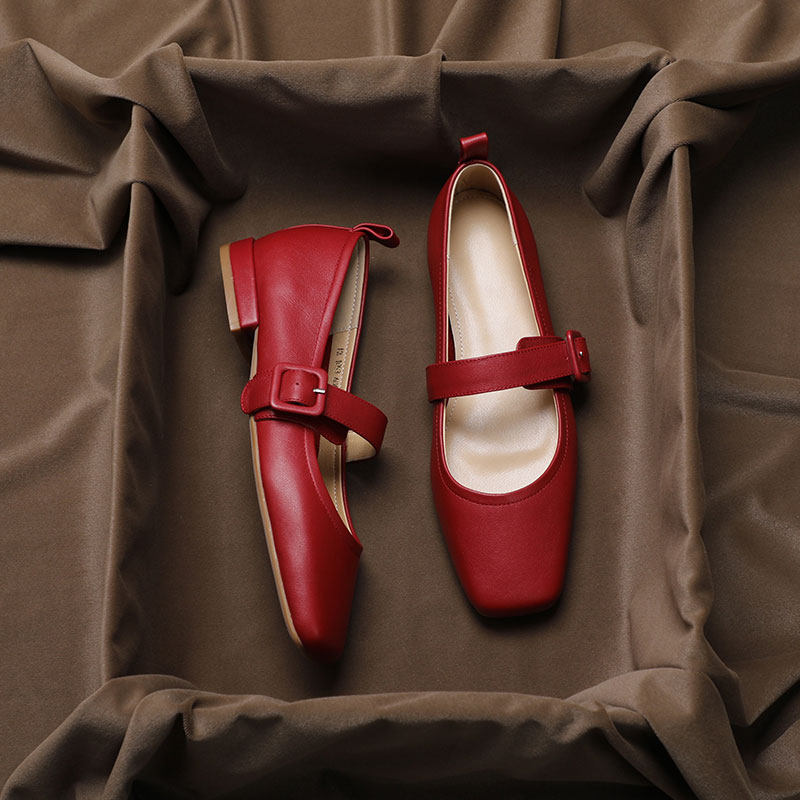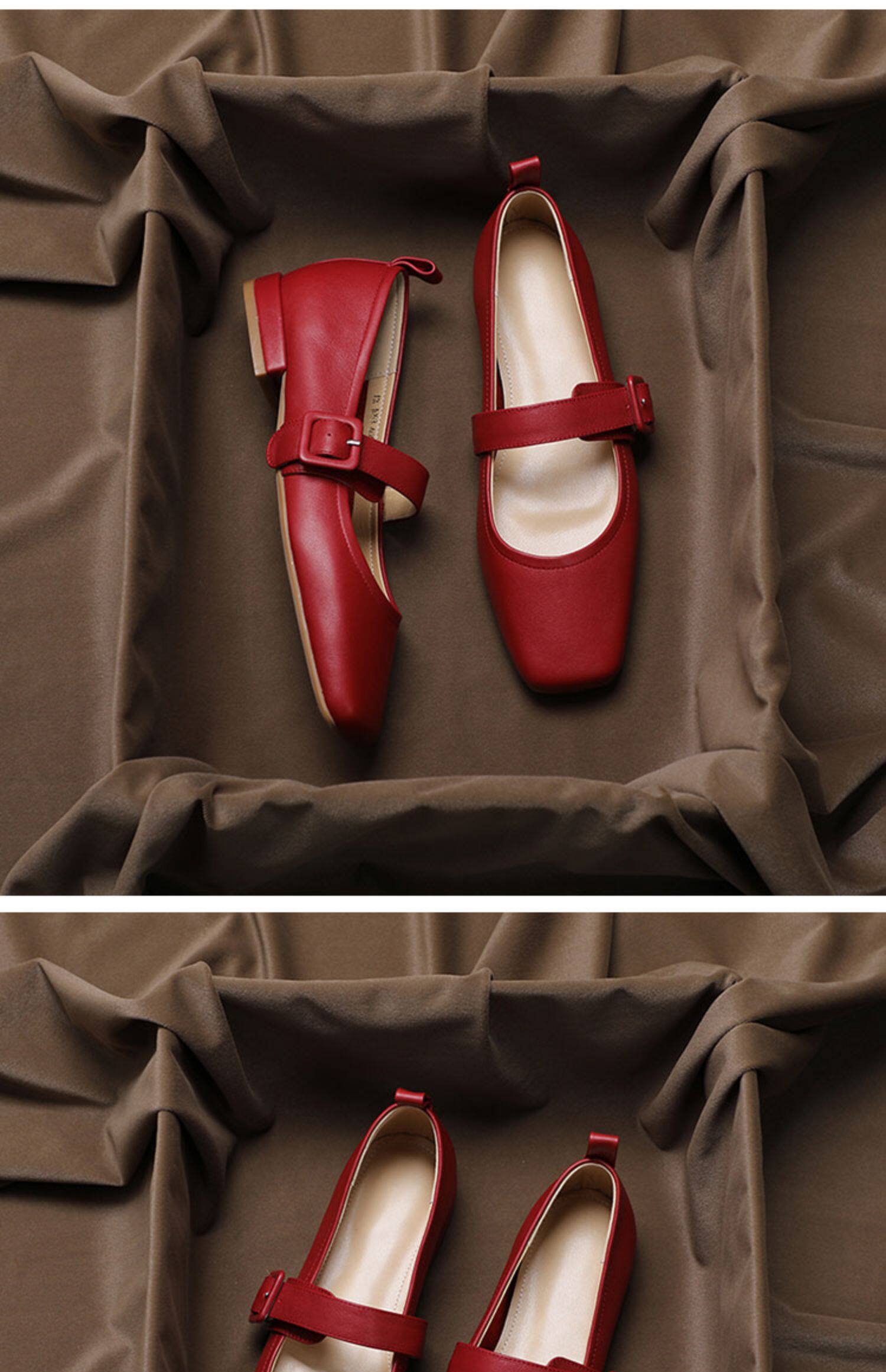 Красная весенняя модная обувь для кожаной обуви, французский ретро стиль, из натуральной кожи, городской стиль