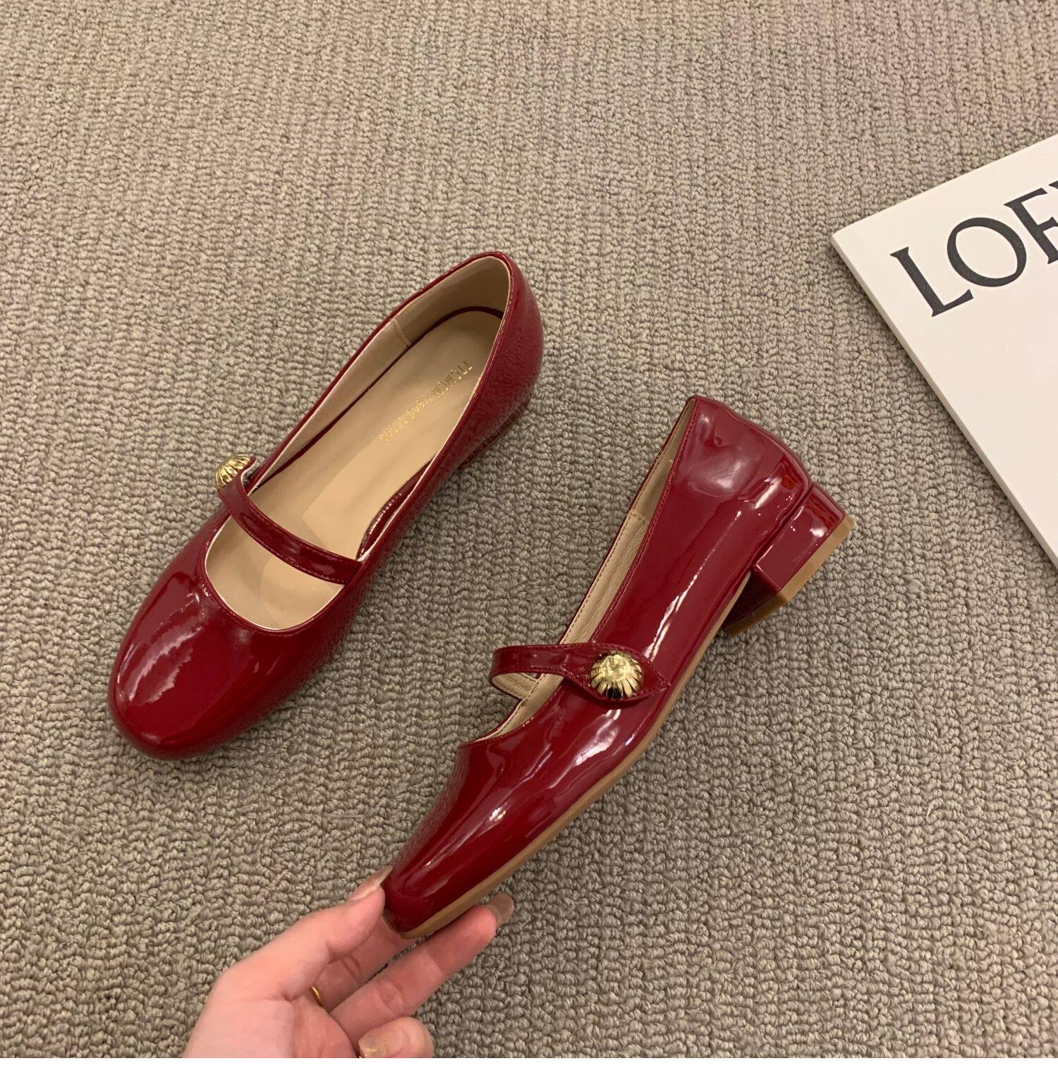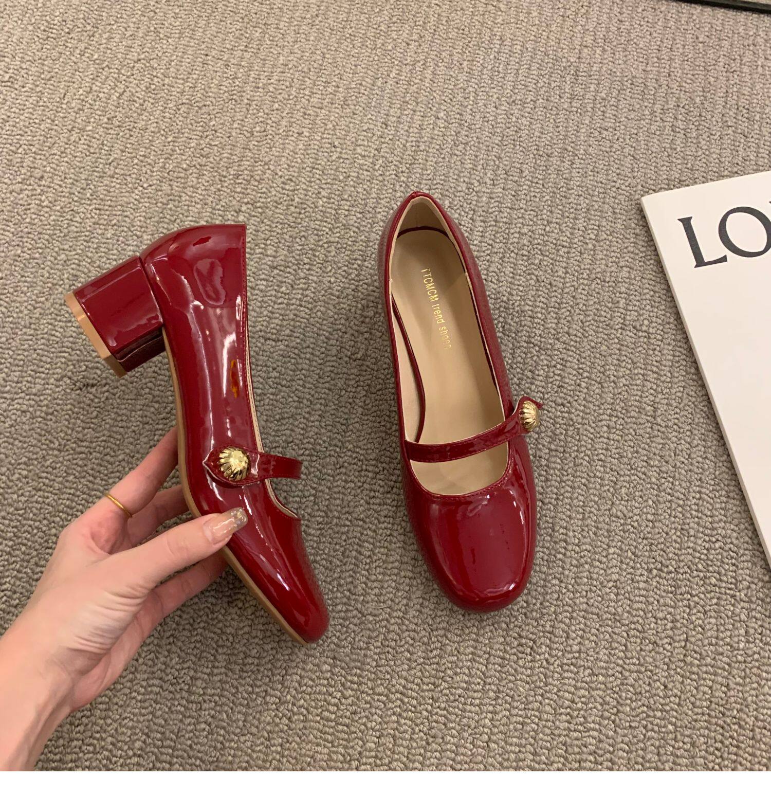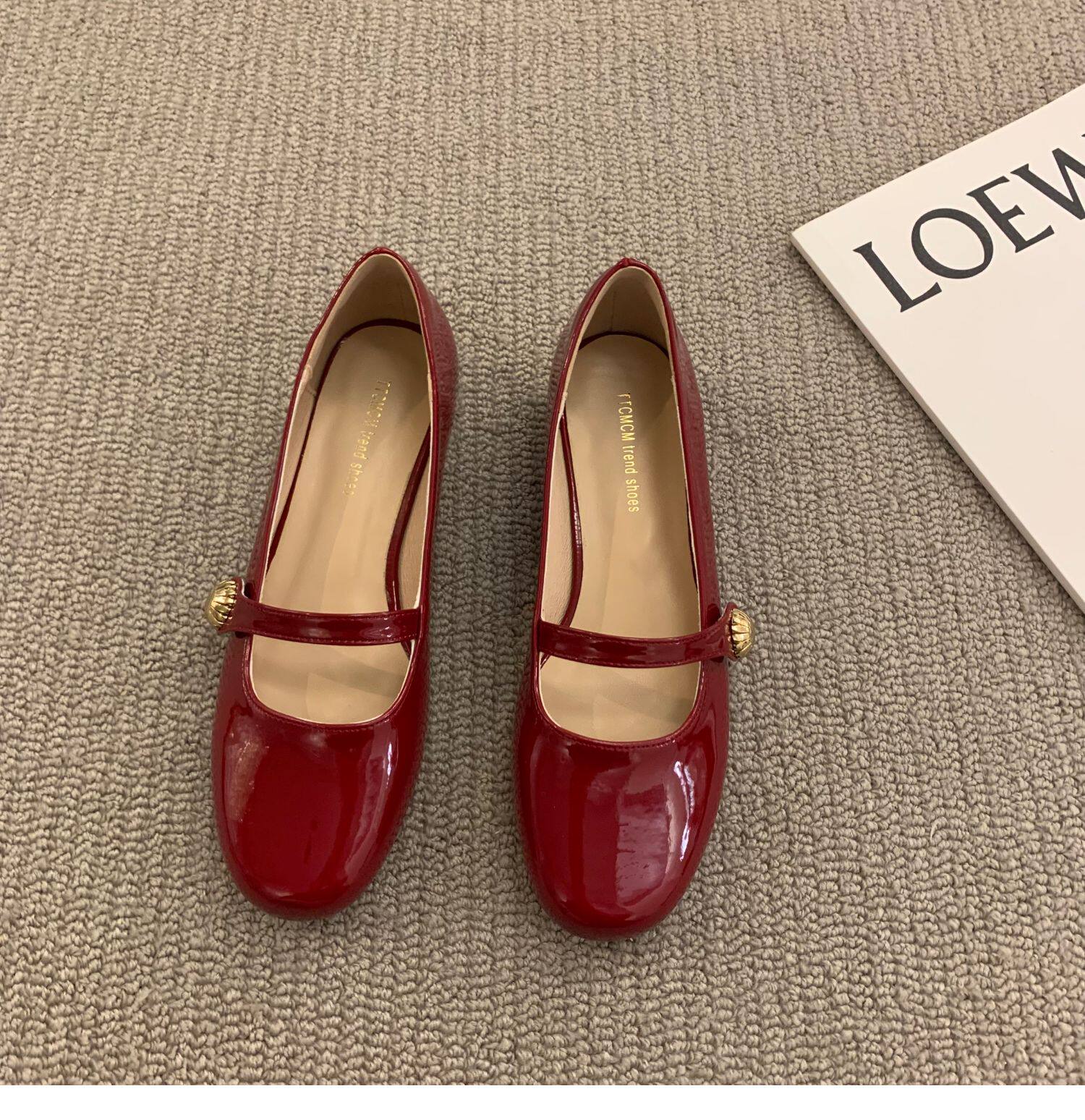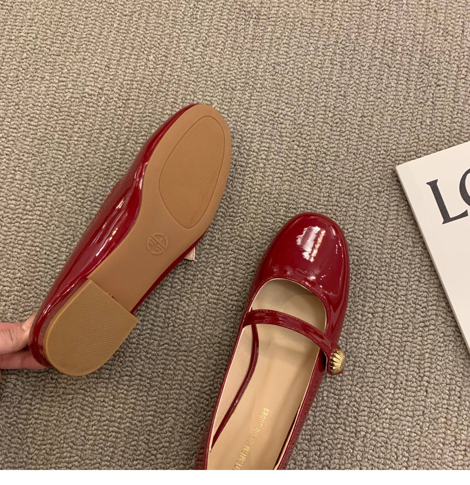 Красная весенняя обувь для кожаной обуви, французский стиль