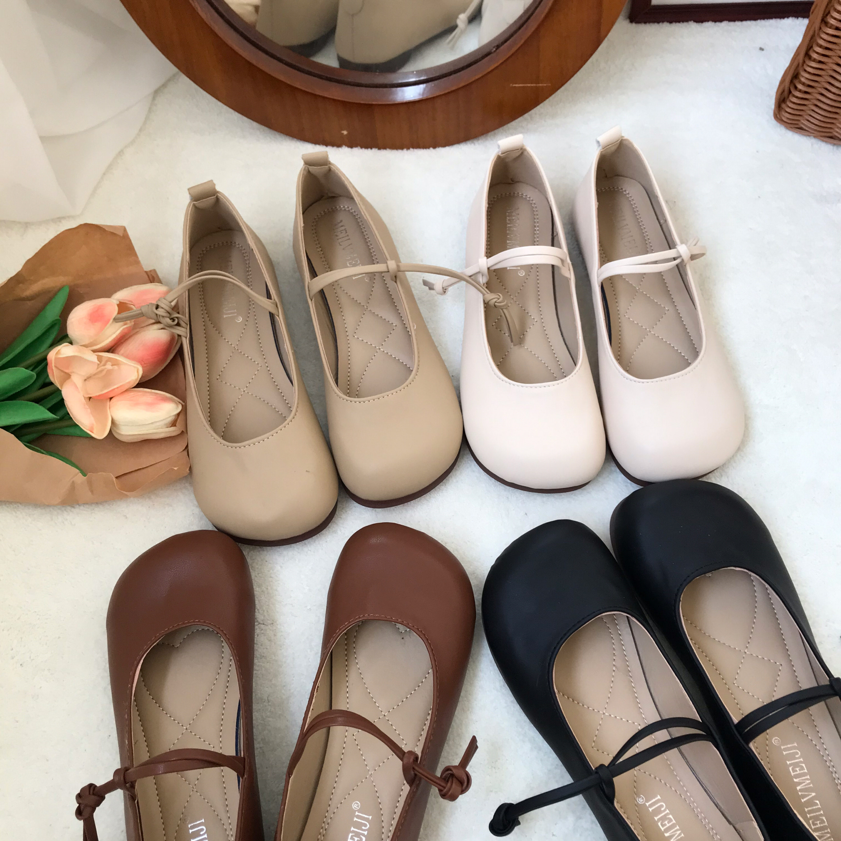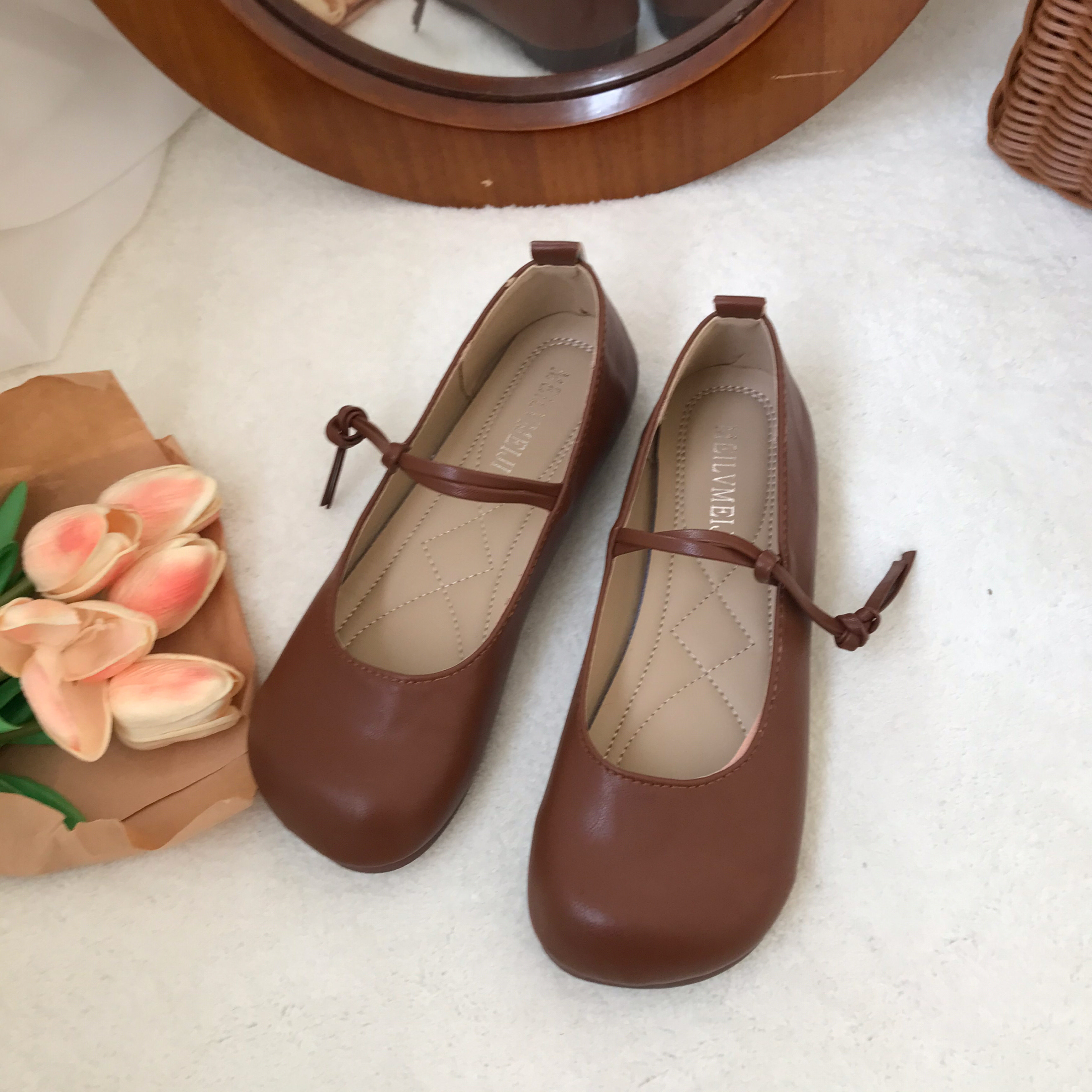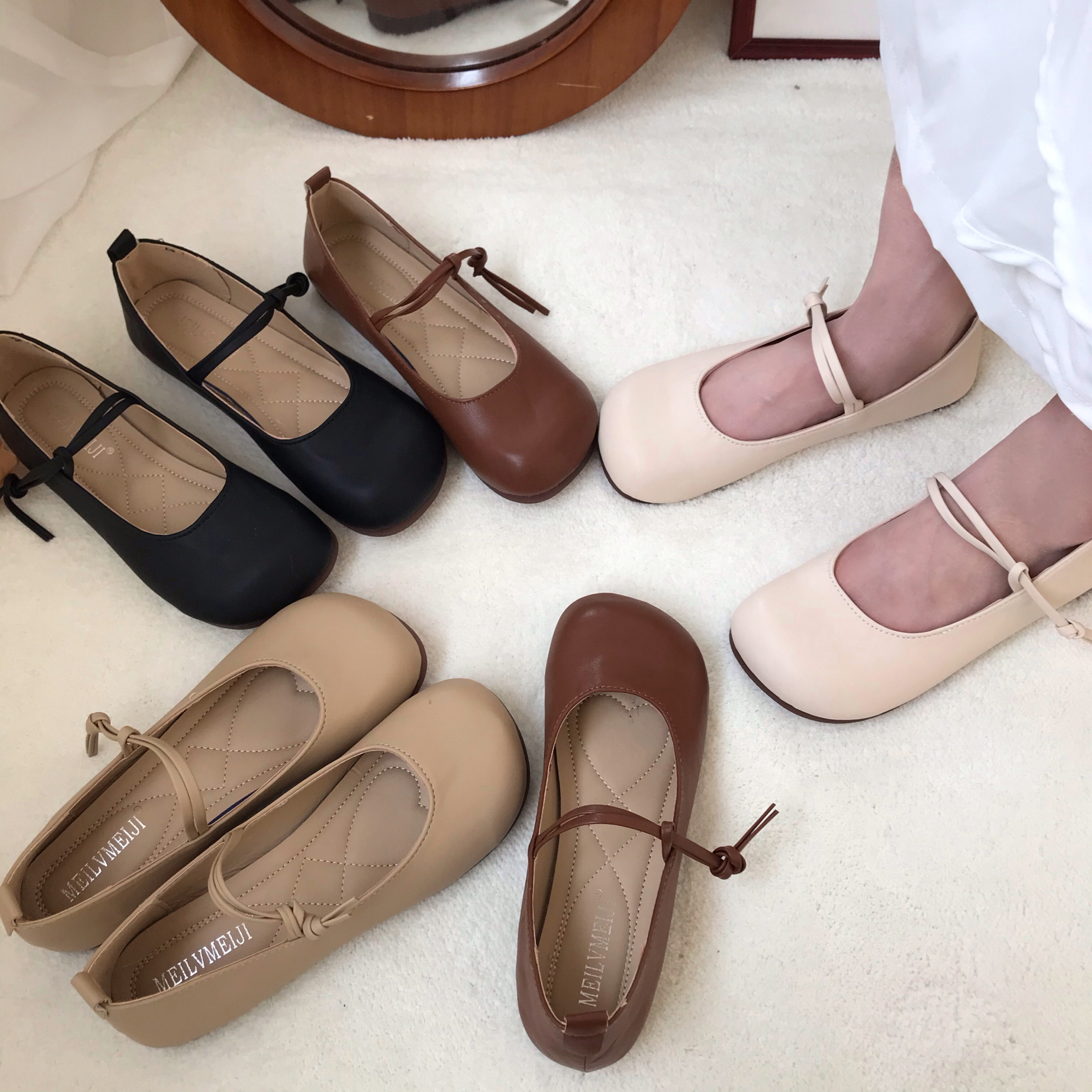 Xiaosunjia Mary Jane Shoes Женские маленькие кожаные туфли Летний вечерний бриз Нежный и универсальный бабушкины туфли на плоской подошве в горошек Одинарные туфли