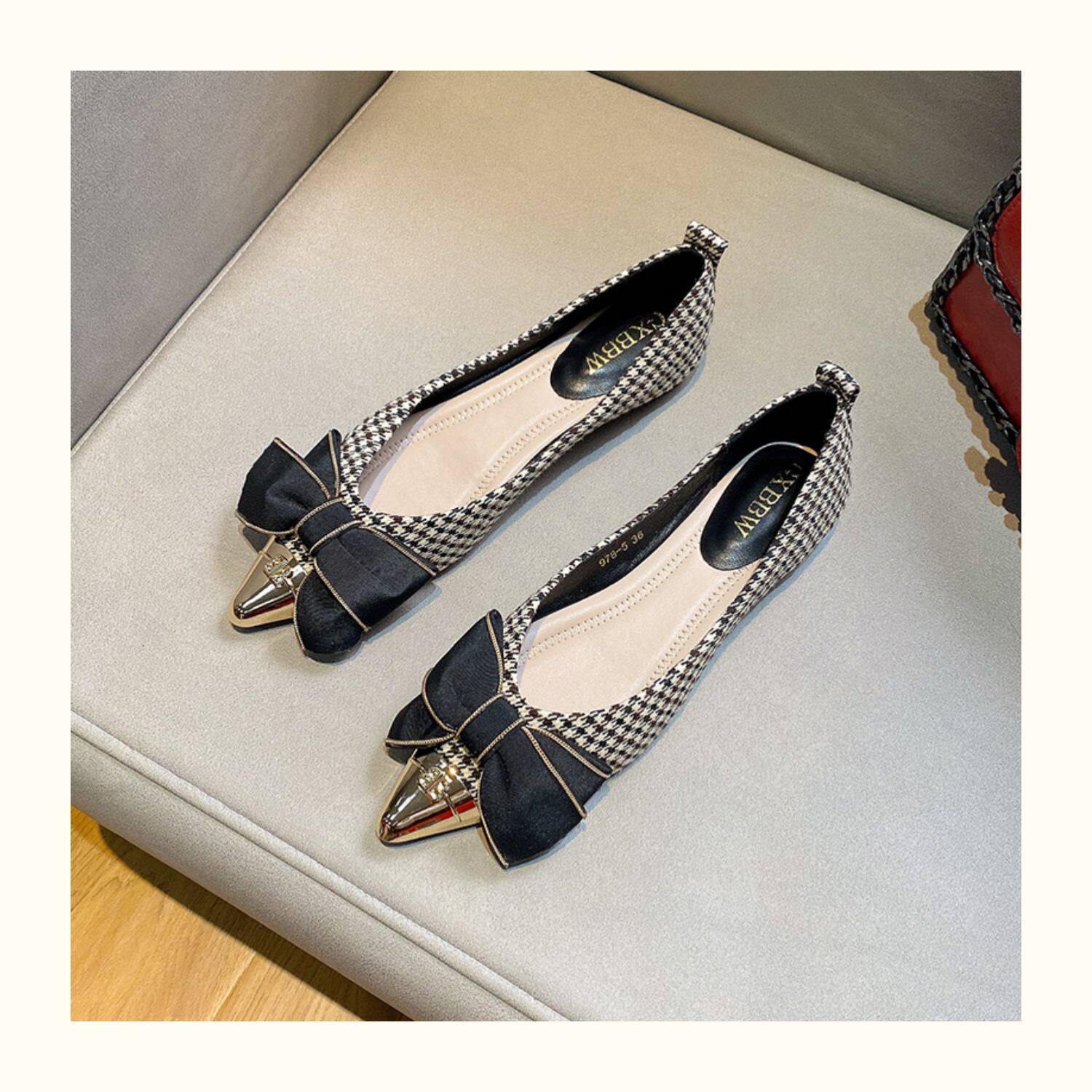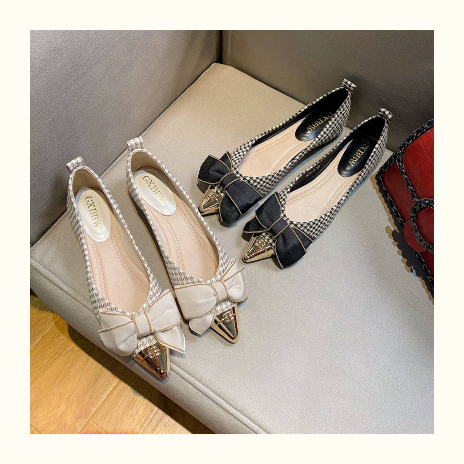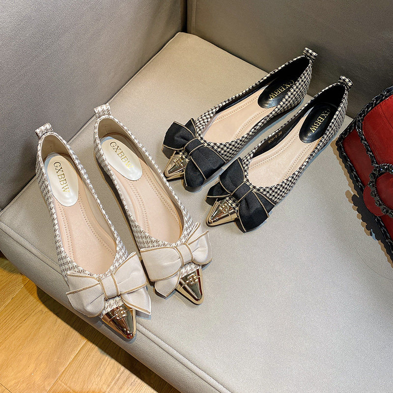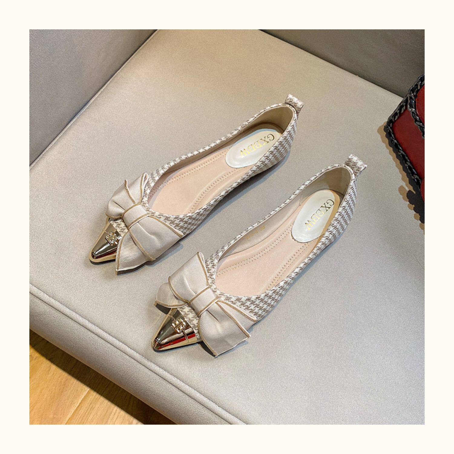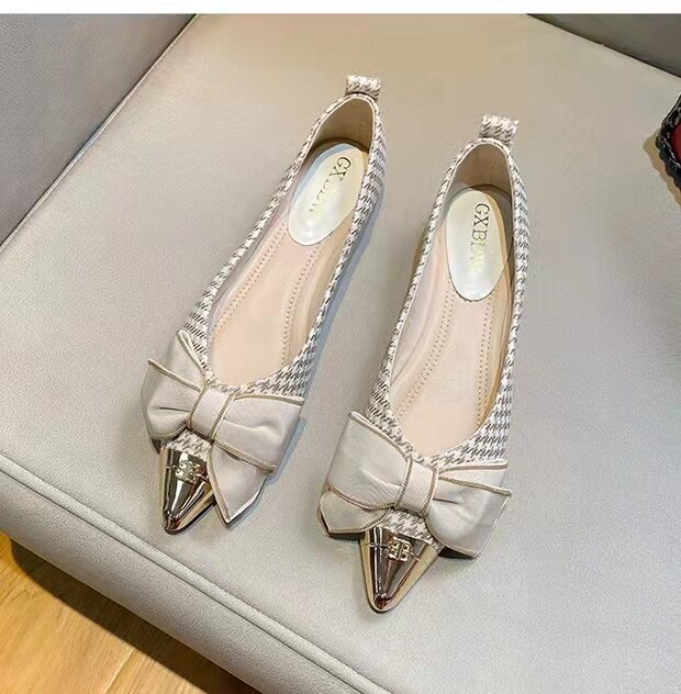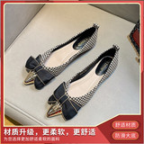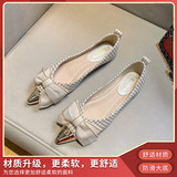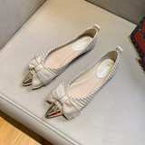 Металлическая универсальная обувь с заостренным носом с бантиком, коллекция 2023, в стиле Шанель