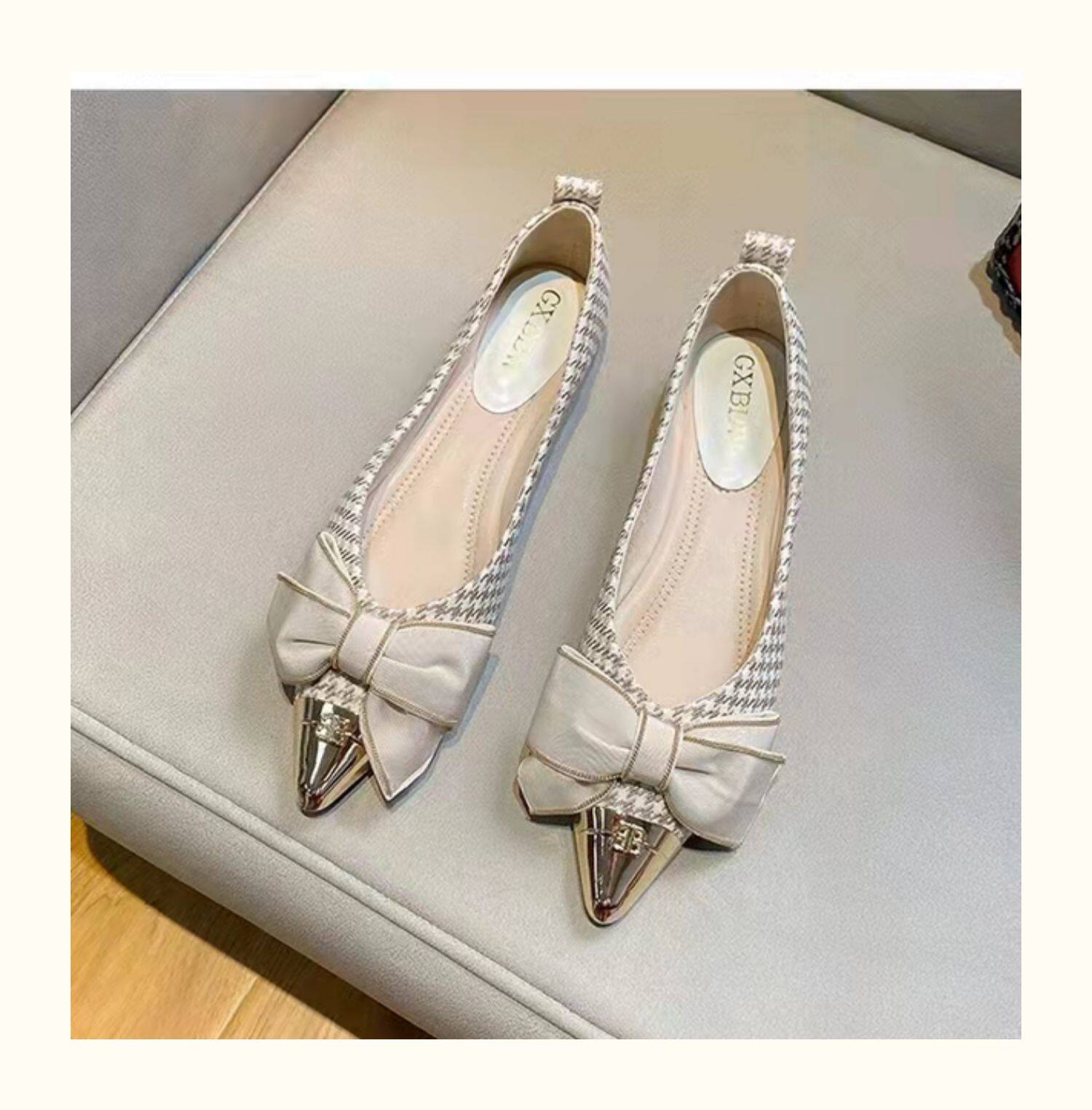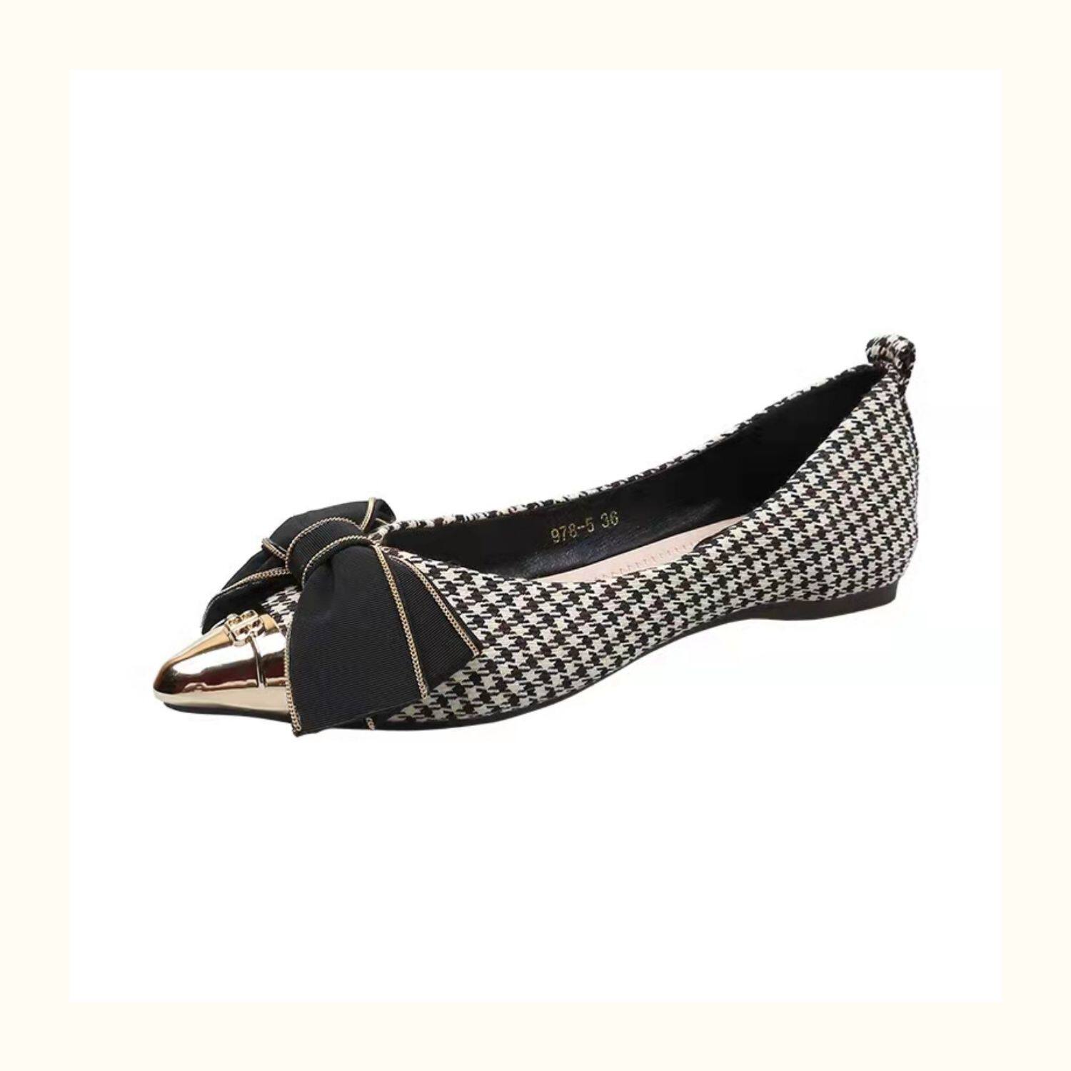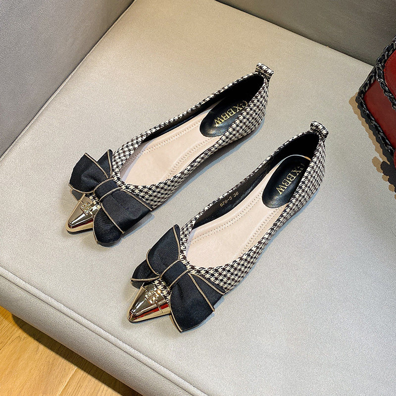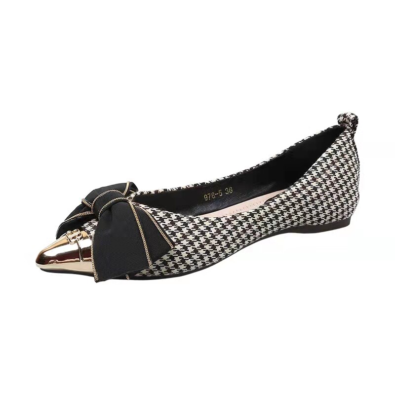 Металлическая универсальная обувь с заостренным носом с бантиком, коллекция 2023, в стиле Шанель