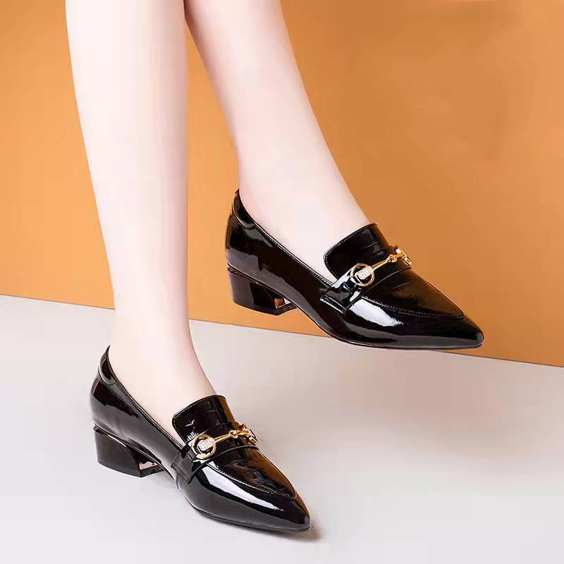 Весенняя модная универсальная обувь с заостренным носом для черной кожи, коллекция 2023, из натуральной кожи