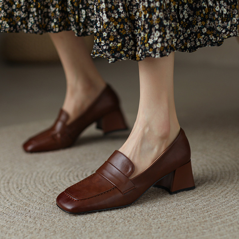 Весенняя обувь на высоком каблуке для кожаной обуви, французский ретро стиль, из натуральной кожи, против усталых ног