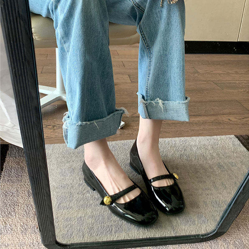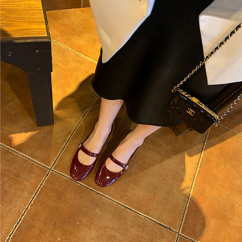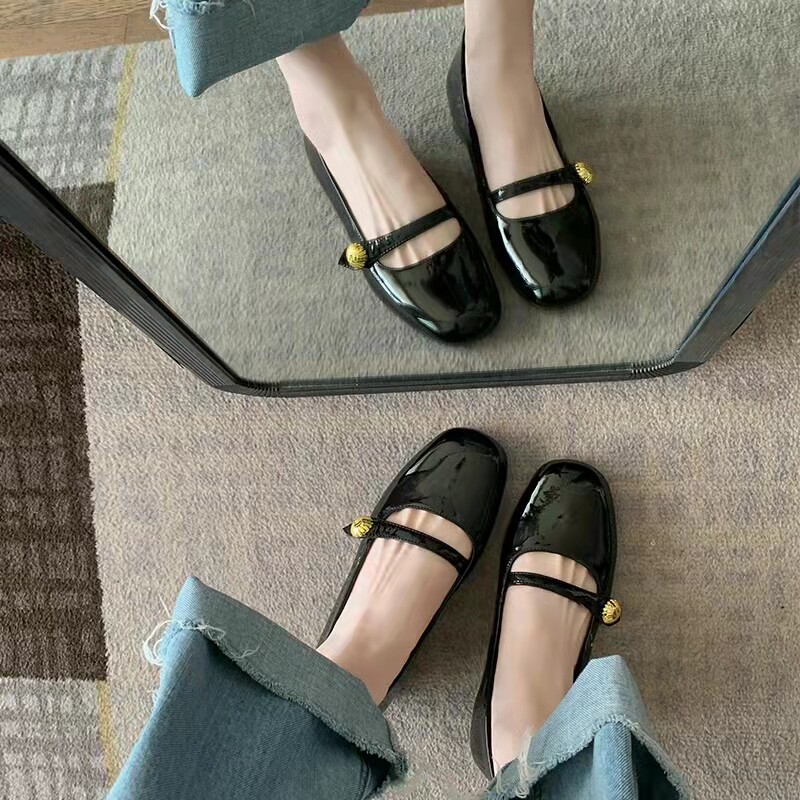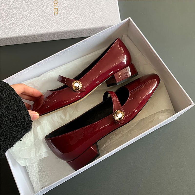 2022 Весна и осень Новый маленький благовонный ветер, маленькая золотая пряжка Мэри Жен обувь женская французская патентная кожаная кожаная каблуки с легкими туфлями в одном