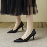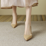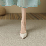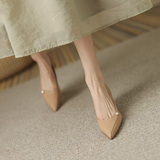 Нюдовая обувь с заостренным носом на высоком каблуке, светлая бежевая подходит с юбкой, яркий броский стиль, изысканный стиль, французский стиль