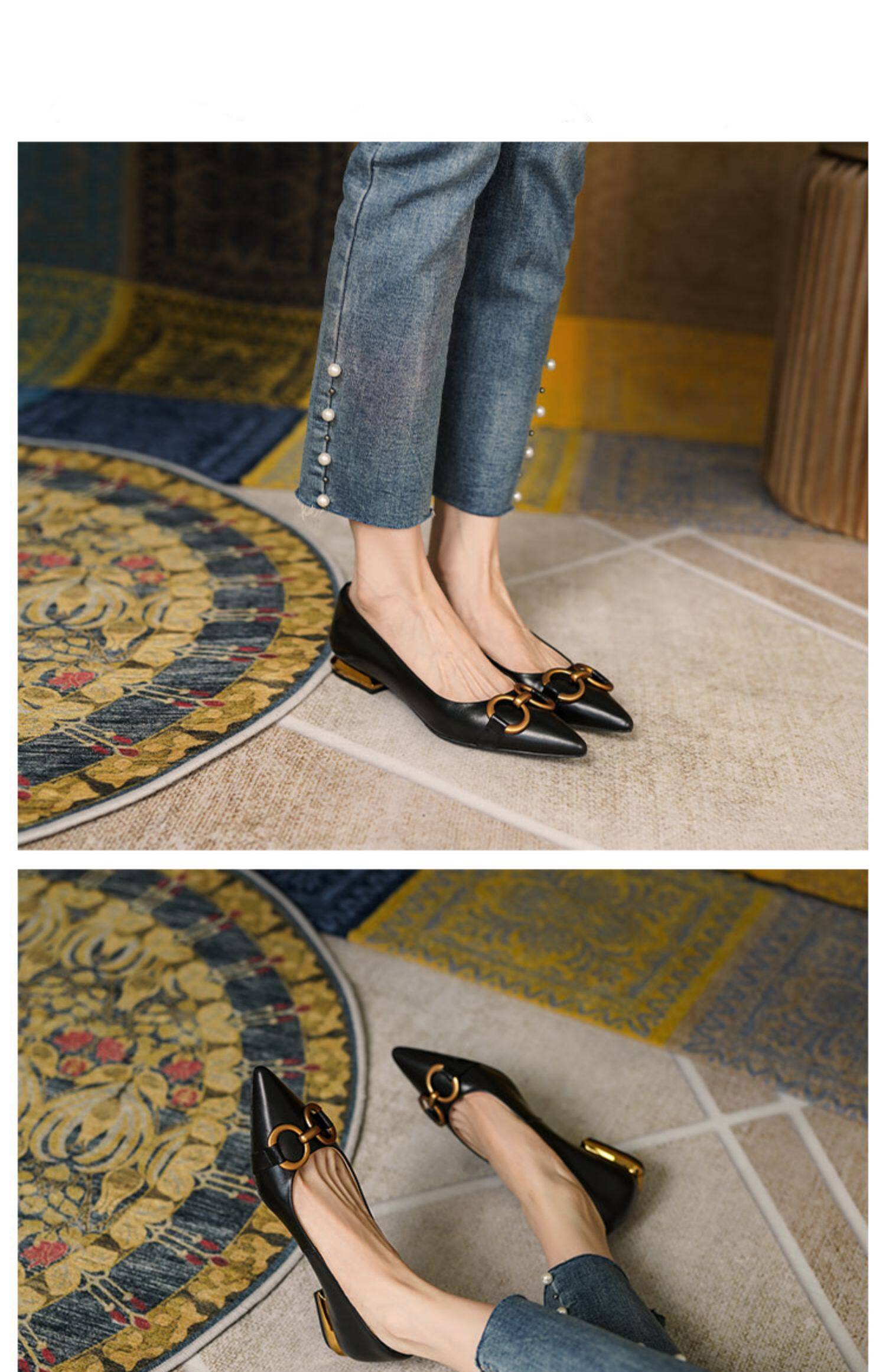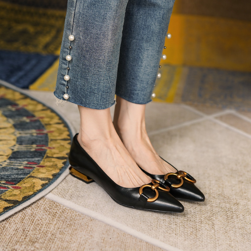 Модная металлическая обувь с заостренным носом, французский стиль, из натуральной кожи, 2024 года, городской стиль, мягкая подошва