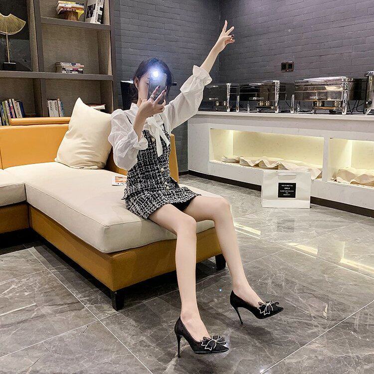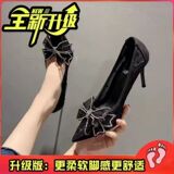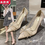 Сетчатая высокая универсальная обувь на высоком каблуке с заостренным носом с бантиком, популярно в интернете, коллекция 2022