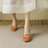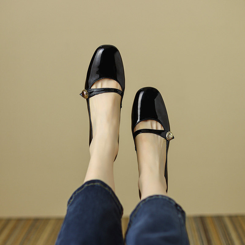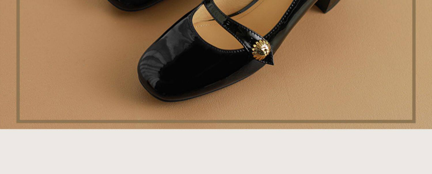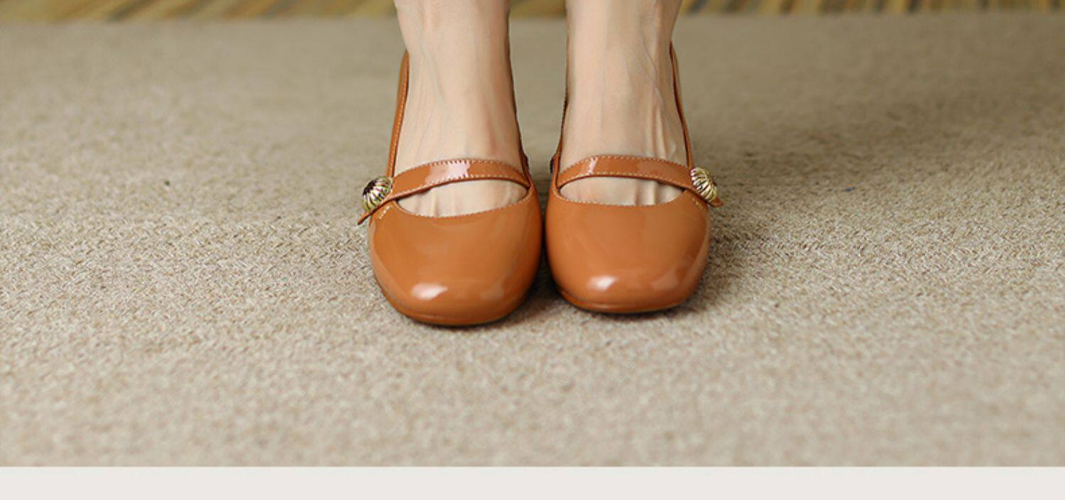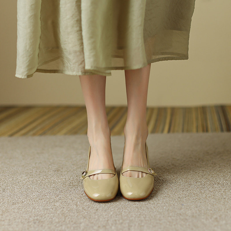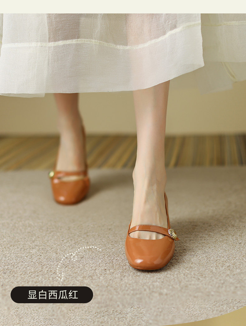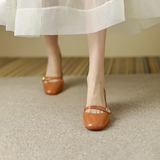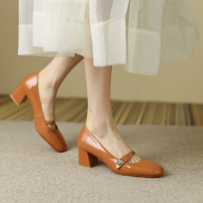 Тыква цвета круглая голова Мэри Чжэнь Женская обувь ниша дизайн ретро маленький кожаный кожа