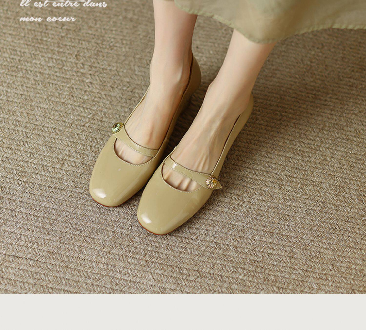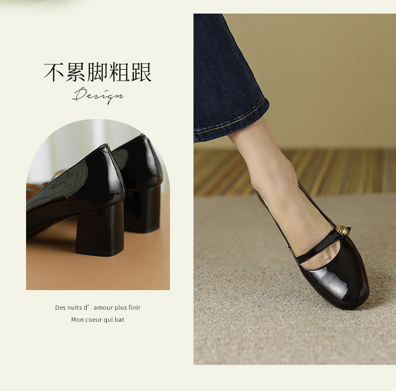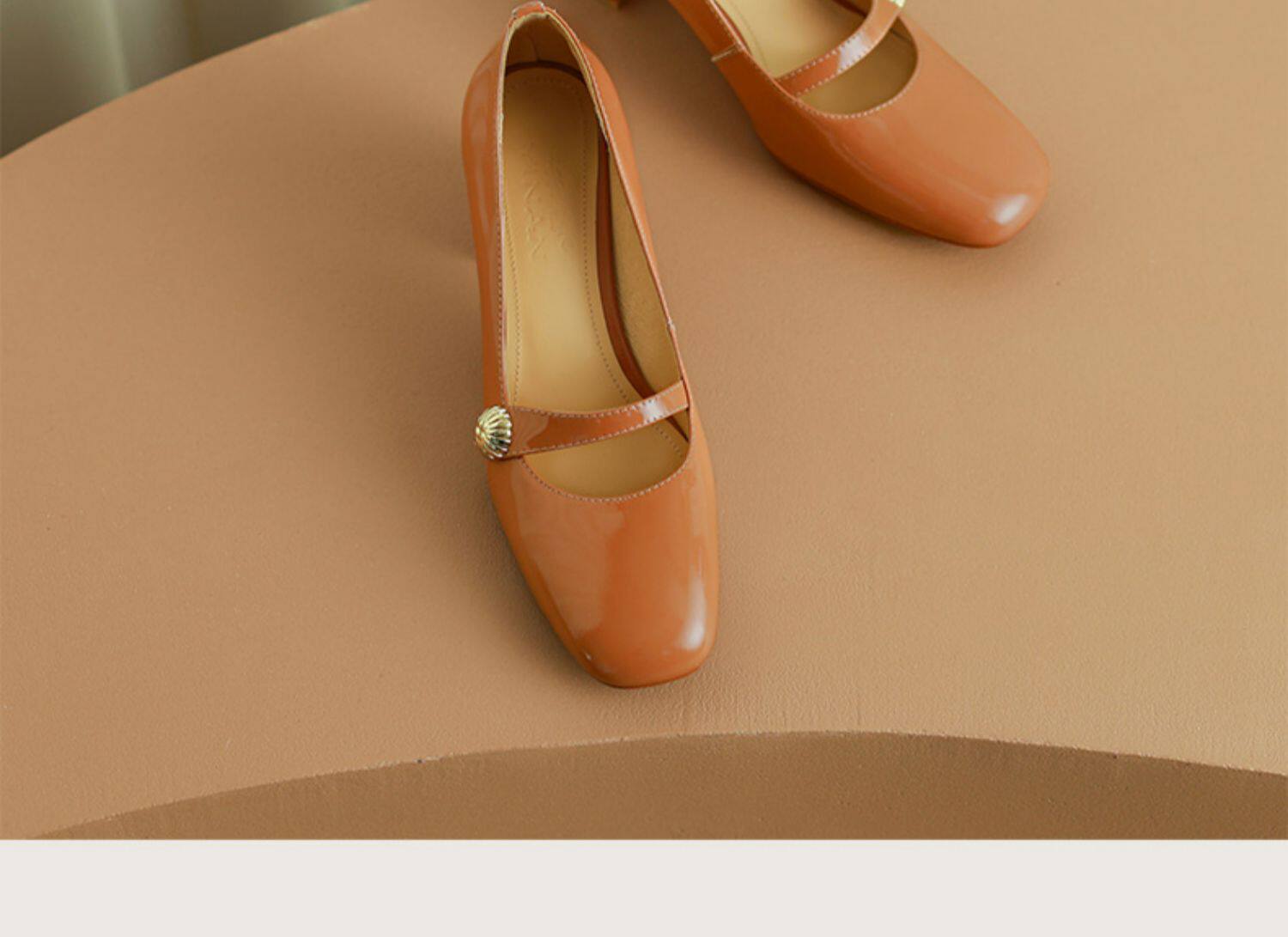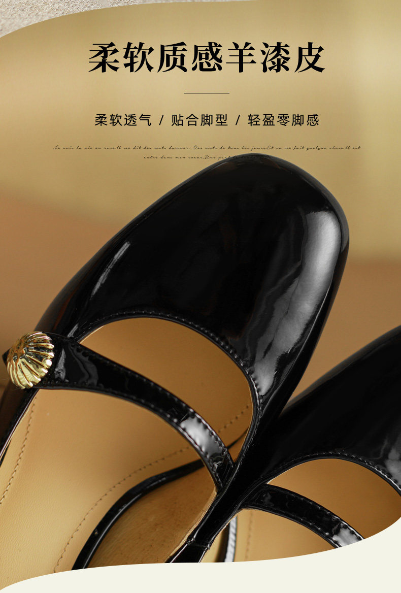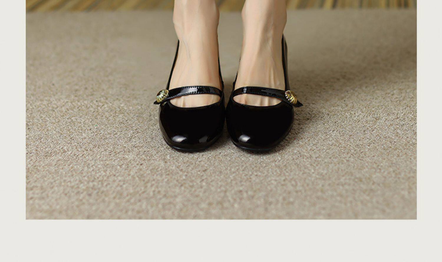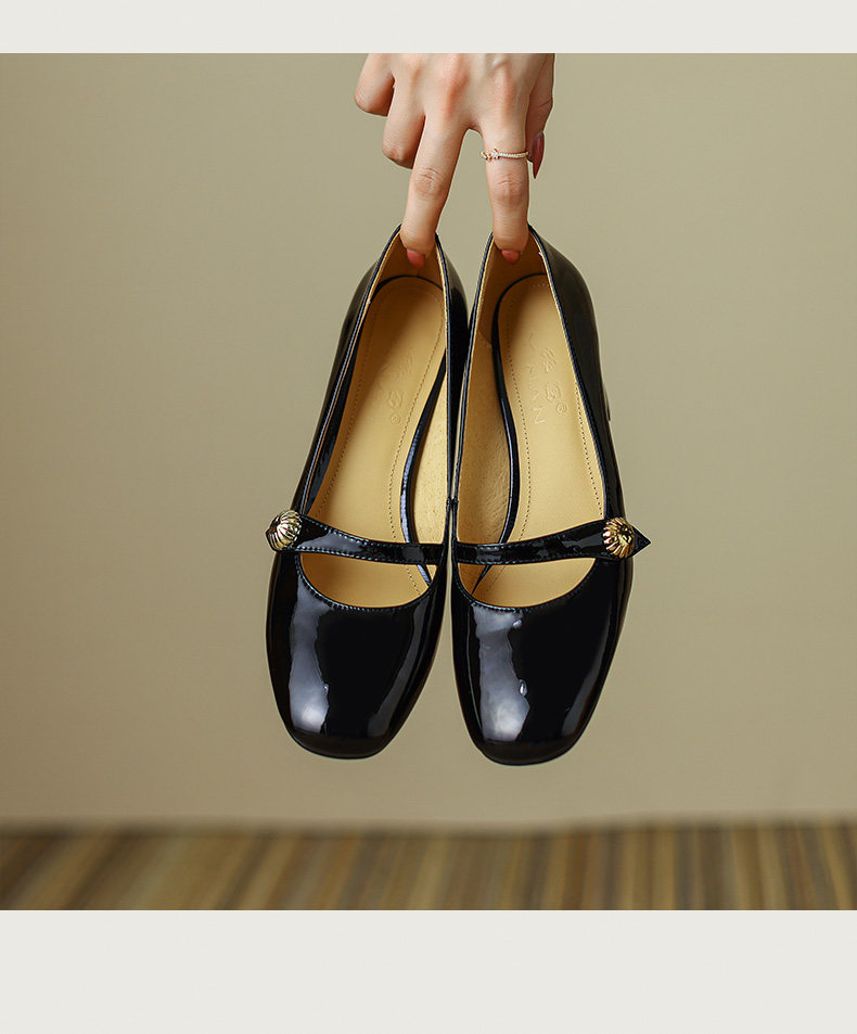 Тыква цвета круглая голова Мэри Чжэнь Женская обувь ниша дизайн ретро маленький кожаный кожа
