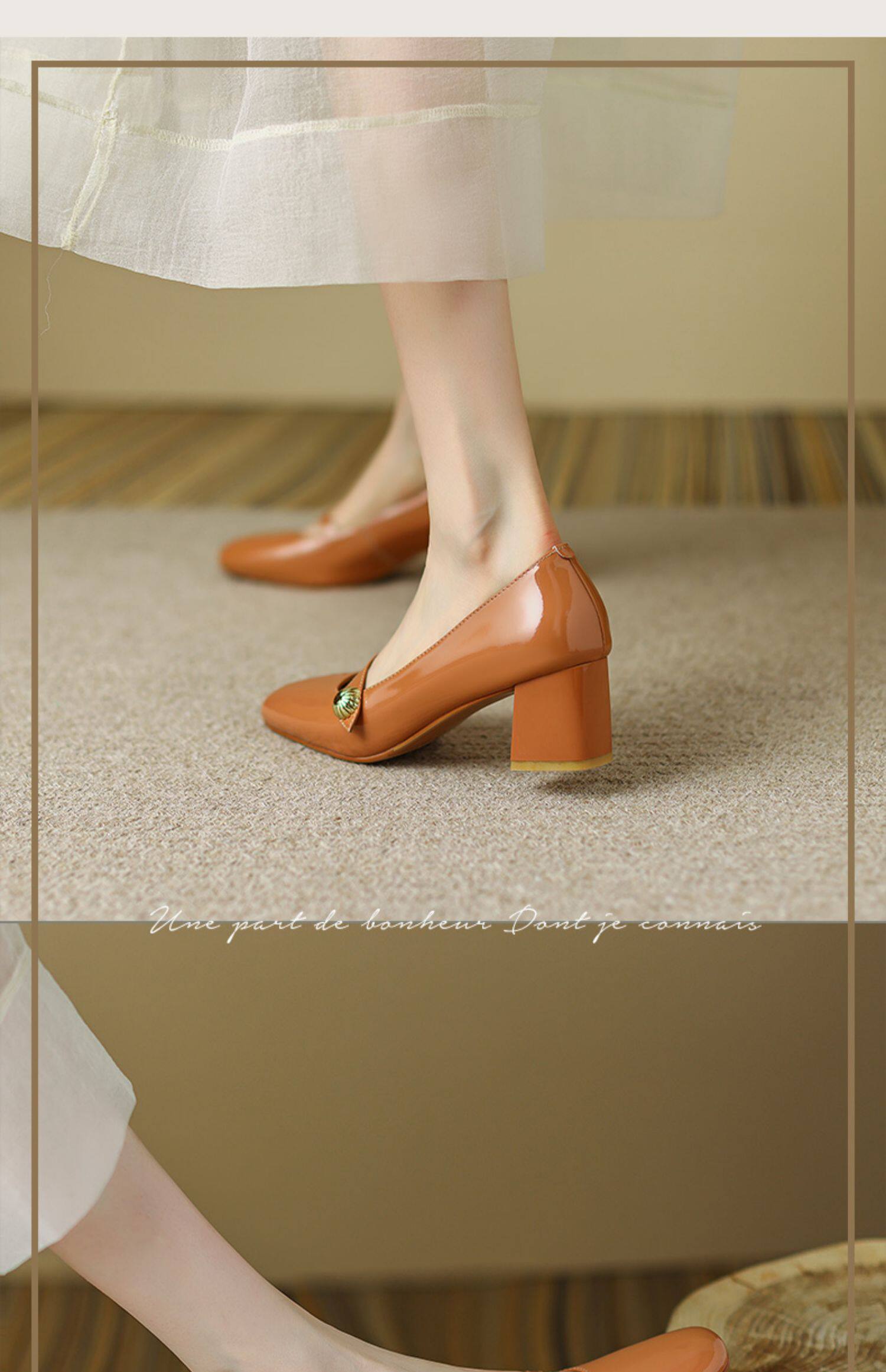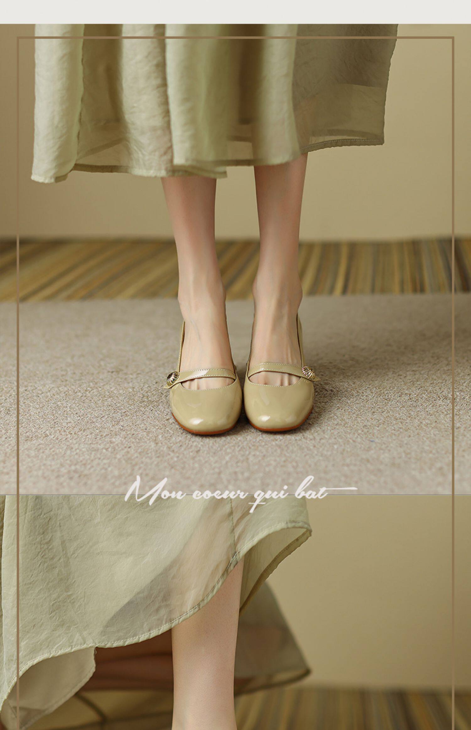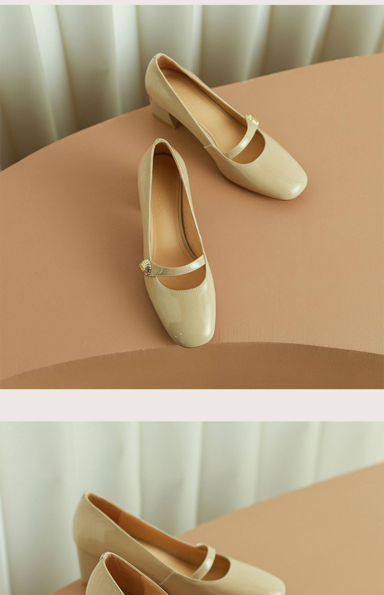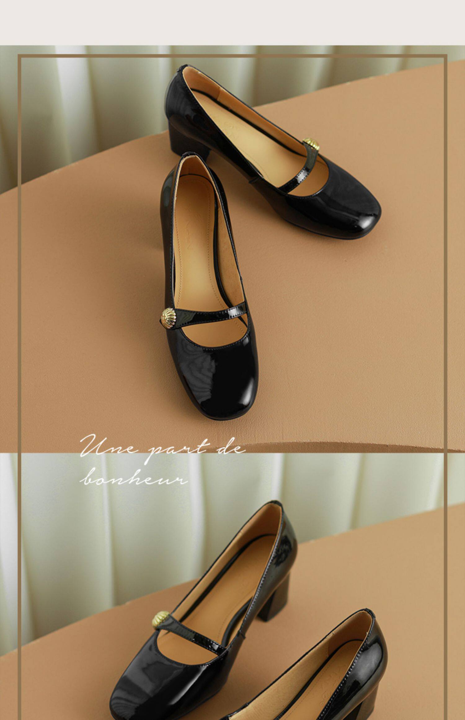 Тыква цвета круглая голова Мэри Чжэнь Женская обувь ниша дизайн ретро маленький кожаный кожа