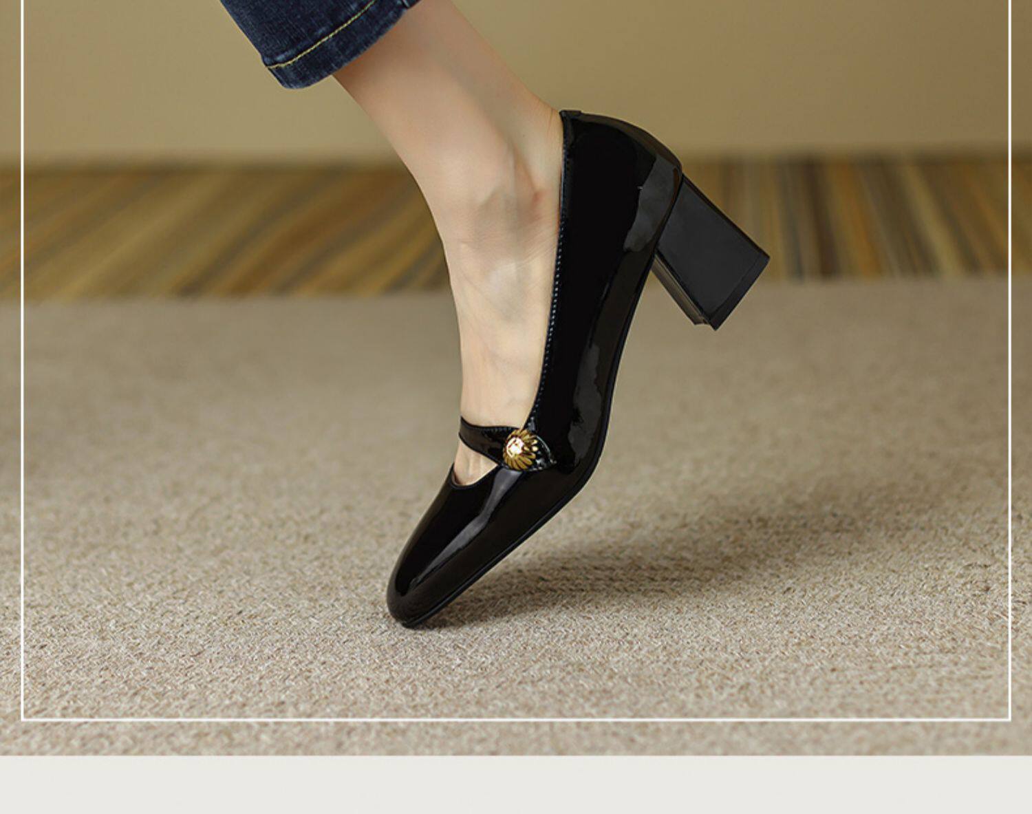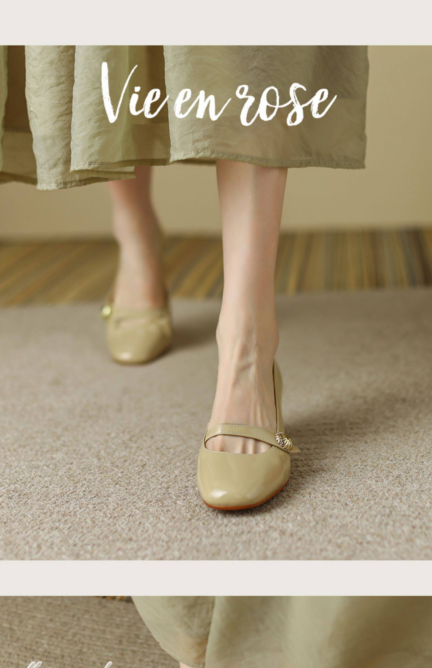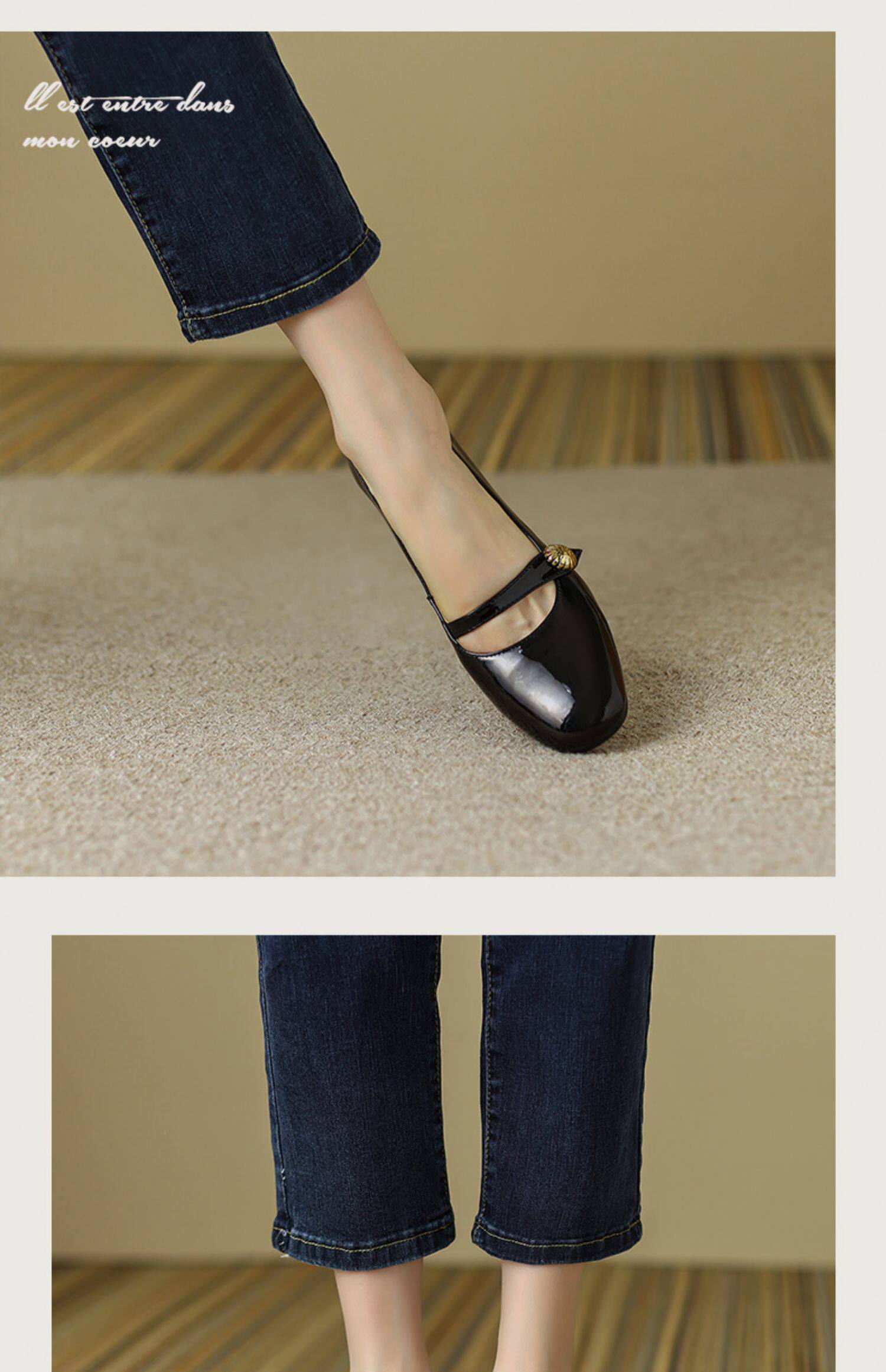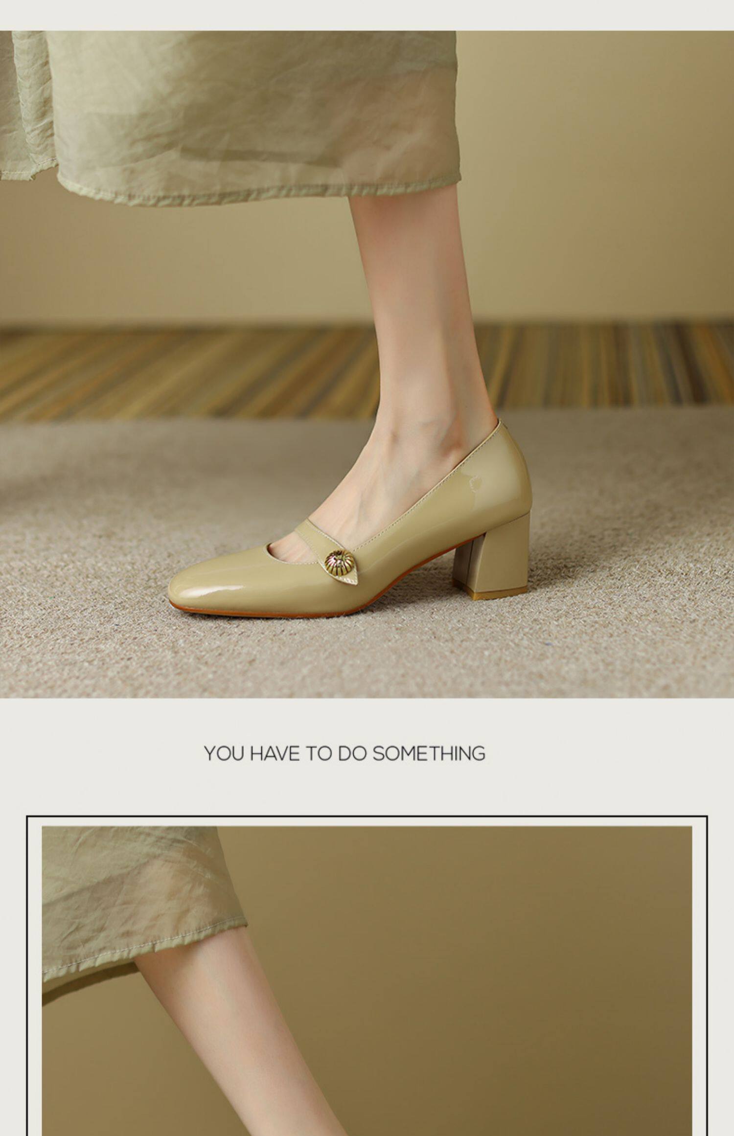 Тыква цвета круглая голова Мэри Чжэнь Женская обувь ниша дизайн ретро маленький кожаный кожа