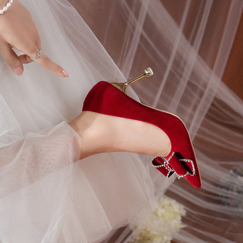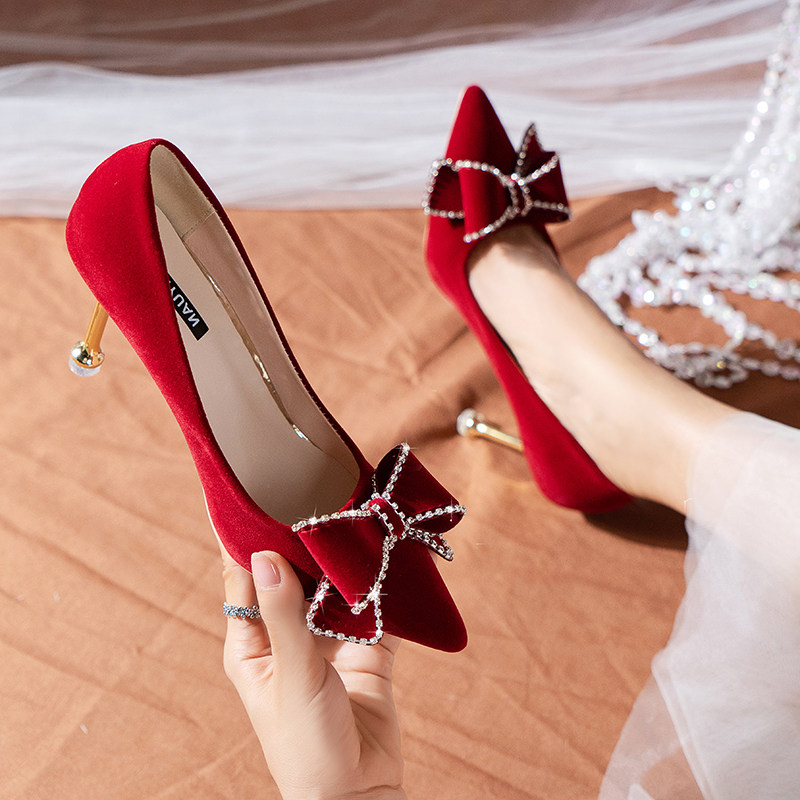 Свадебные туфли, бордовая обувь на высоком каблуке для невесты, 2025 года, против усталых ног