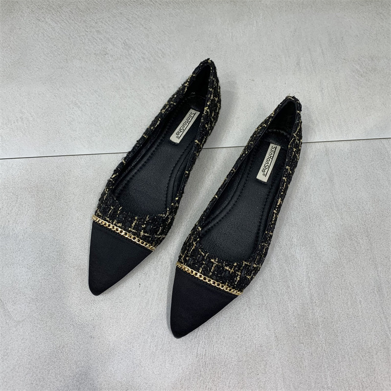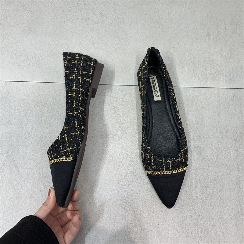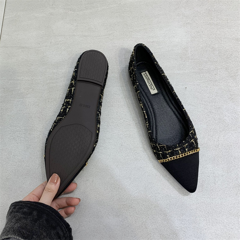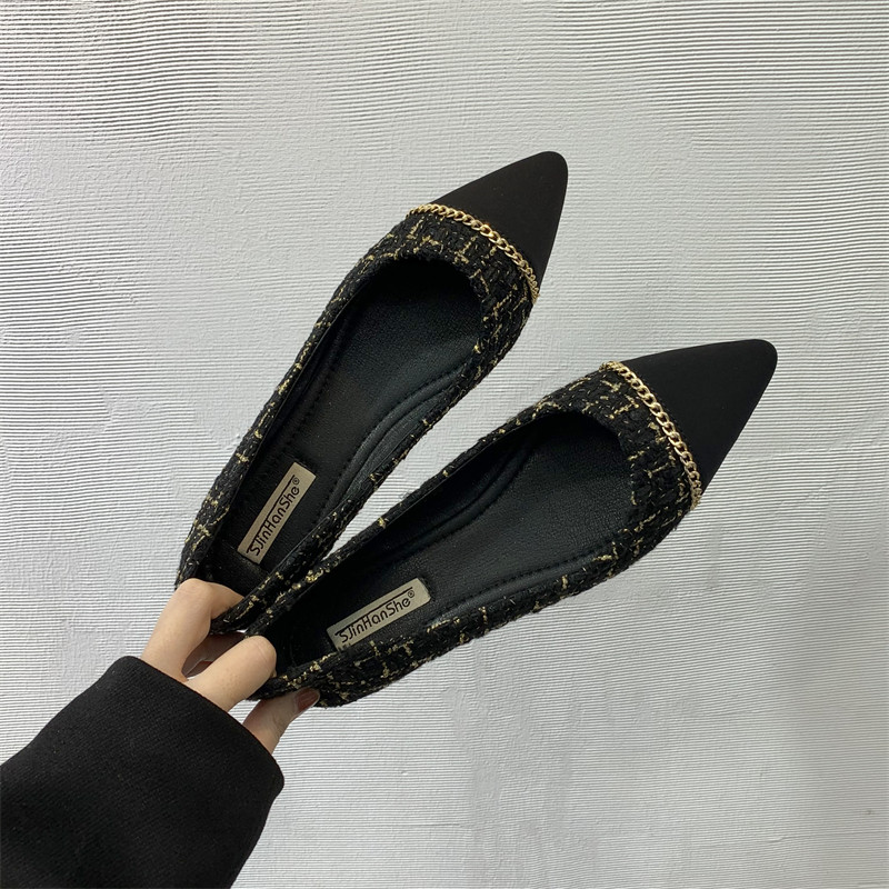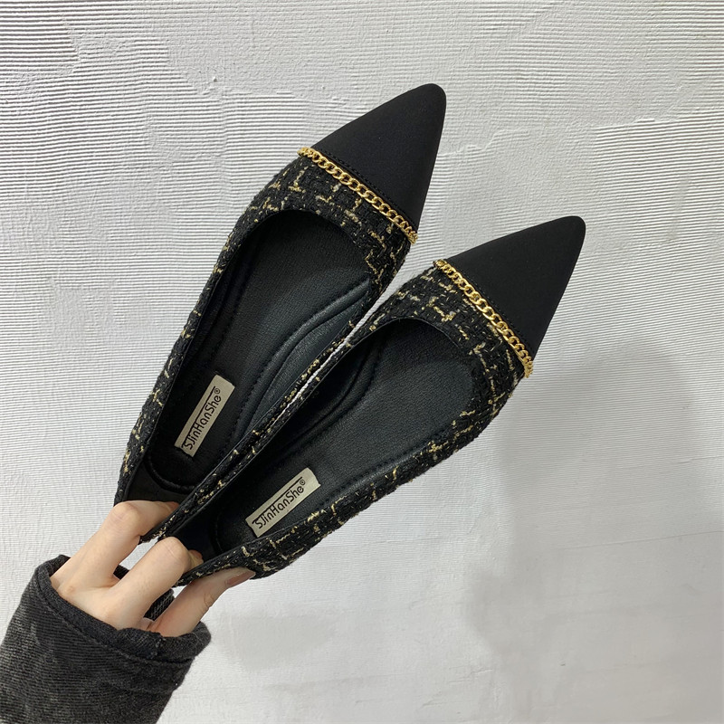 Цепь, универсальная обувь с заостренным носом, туфли, тренд сезона, в стиле Шанель, в корейском стиле, мягкая подошва