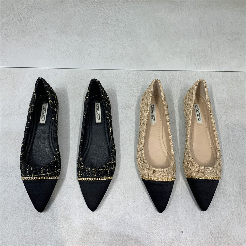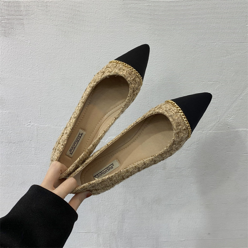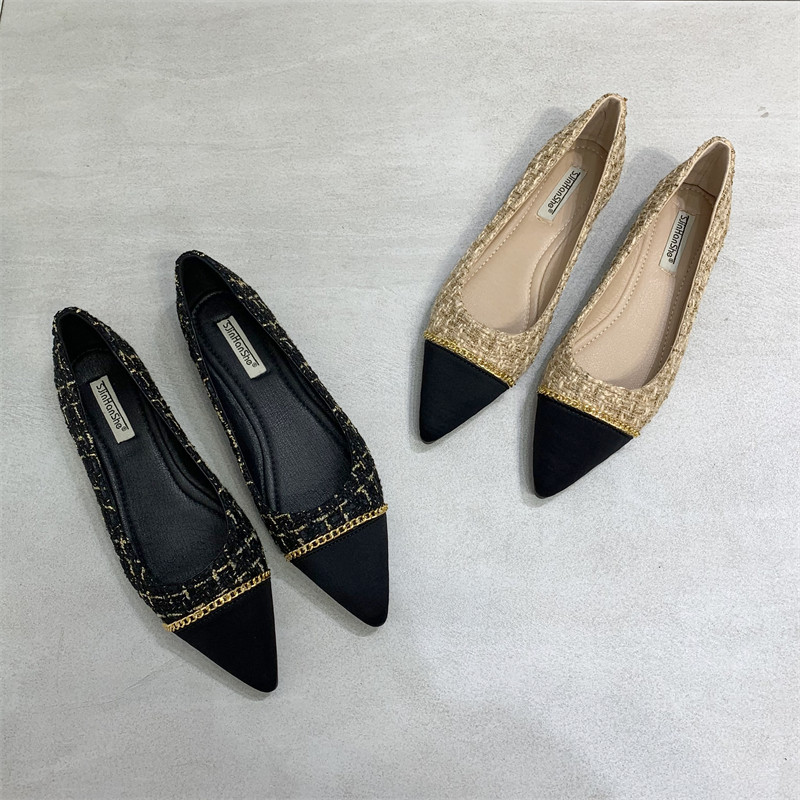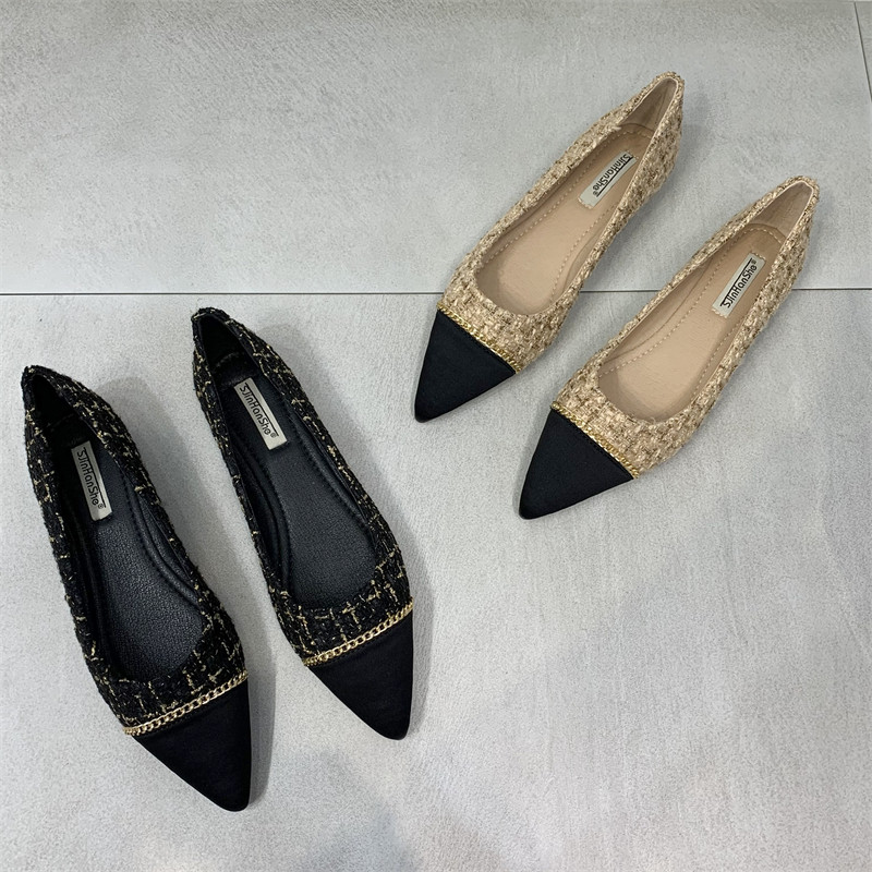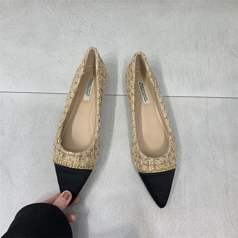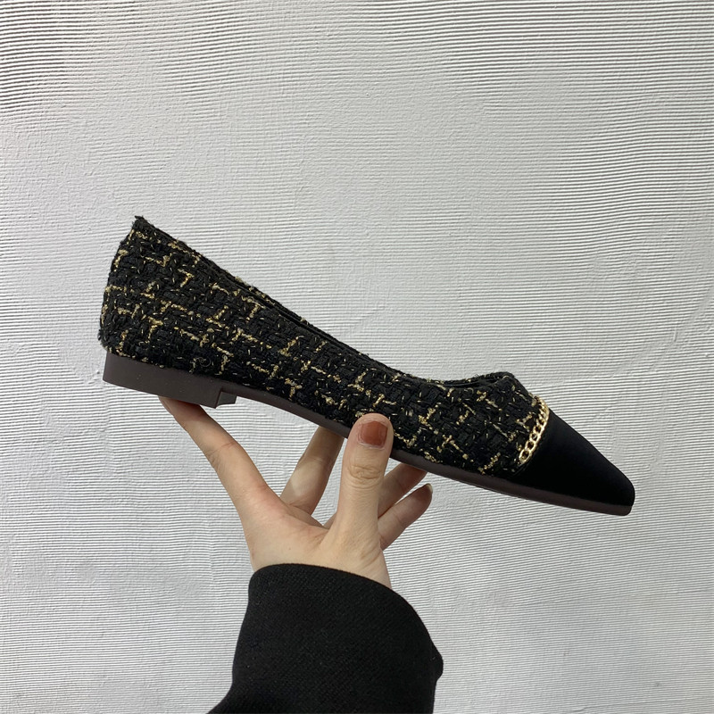 Цепь, универсальная обувь с заостренным носом, туфли, тренд сезона, в стиле Шанель, в корейском стиле, мягкая подошва