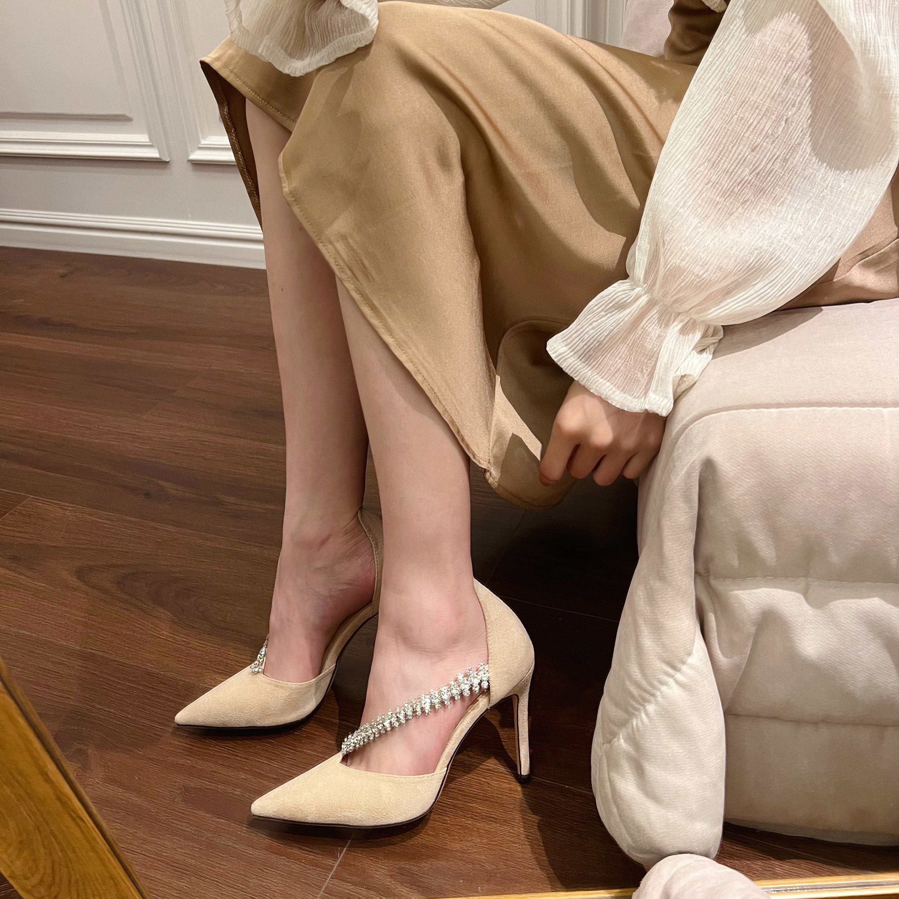 Нюдовая небольшая дизайнерская подходит с юбкой на высоком каблуке, платье с заостренным носом, тренд сезона, из натуральной кожи, французский стиль, изысканный стиль