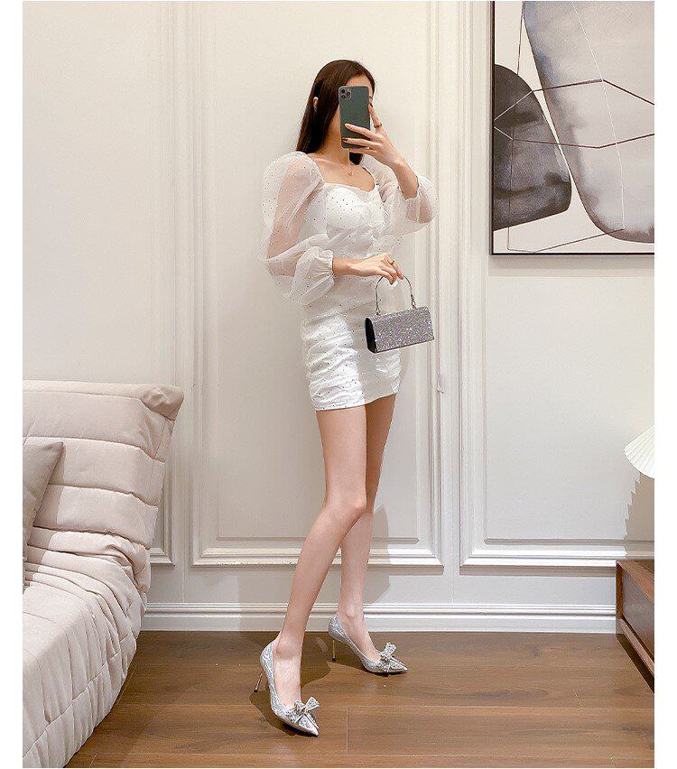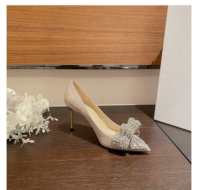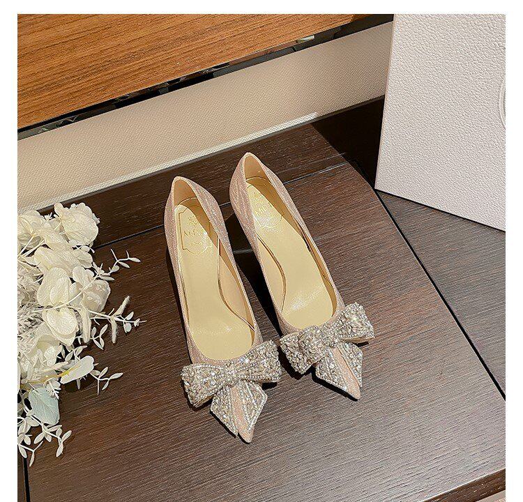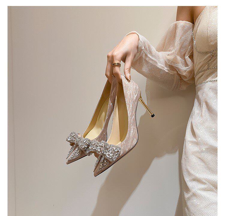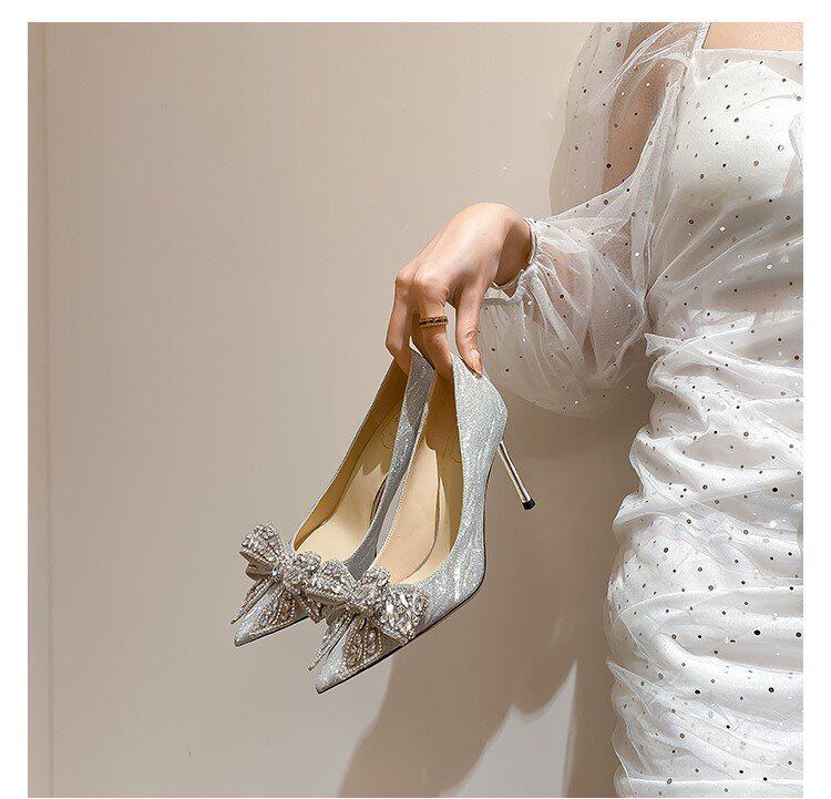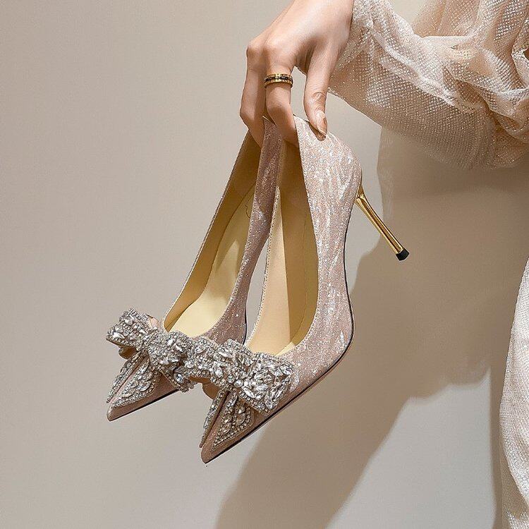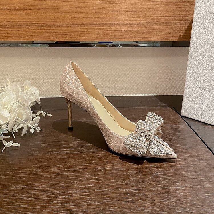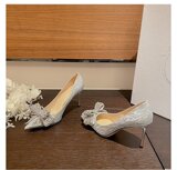 Летние сексуальные универсальные свадебные туфли с заостренным носом на высоком каблуке с бантиком, 2023 года, французский стиль
