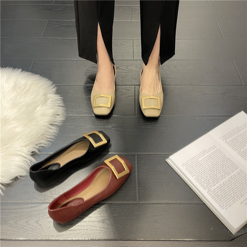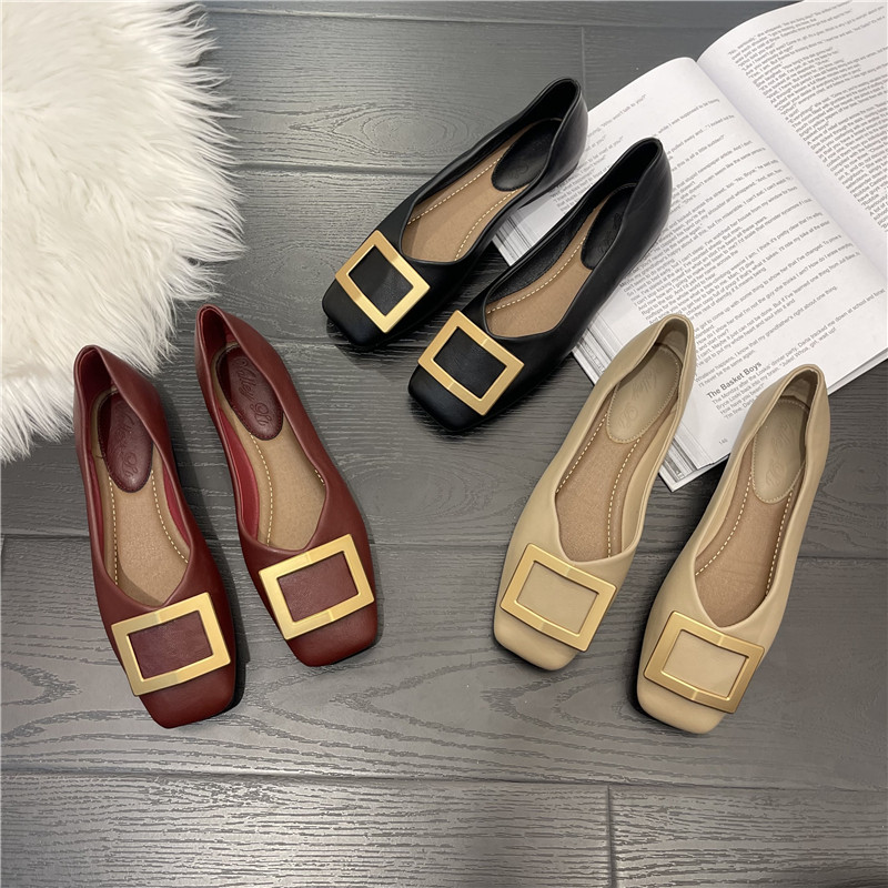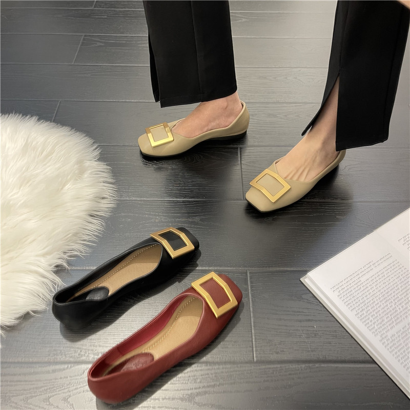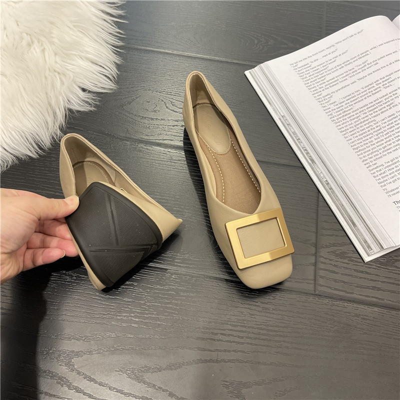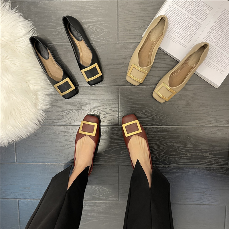 Женские туфли на плоской подошве с квадратным носком, весна-лето 2022, новая корейская версия, универсальные туфли из мягкой кожи с неглубоким носком, нежные вечерние туфли на мягкой подошве