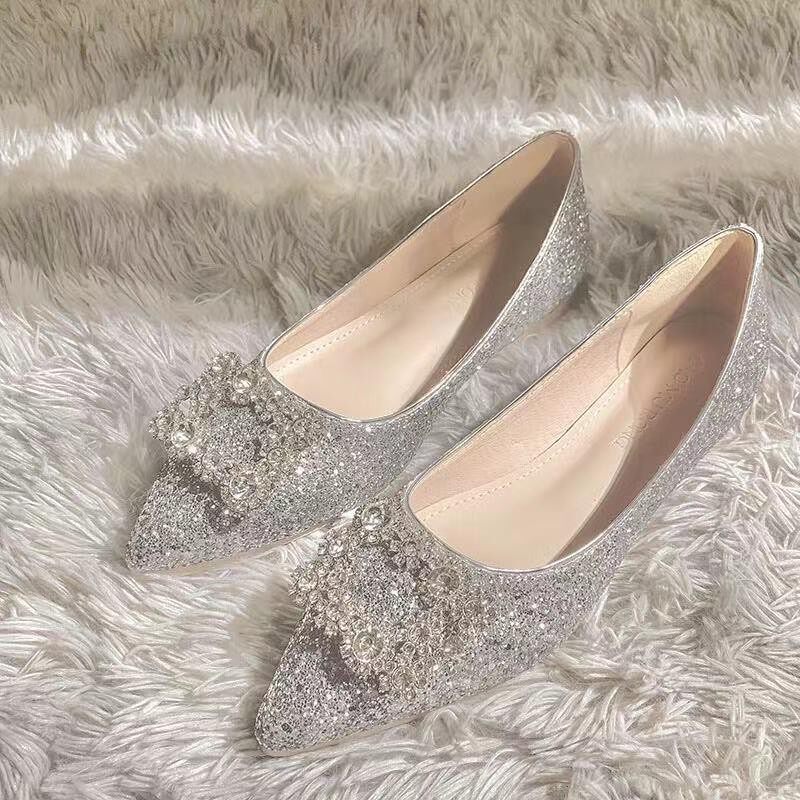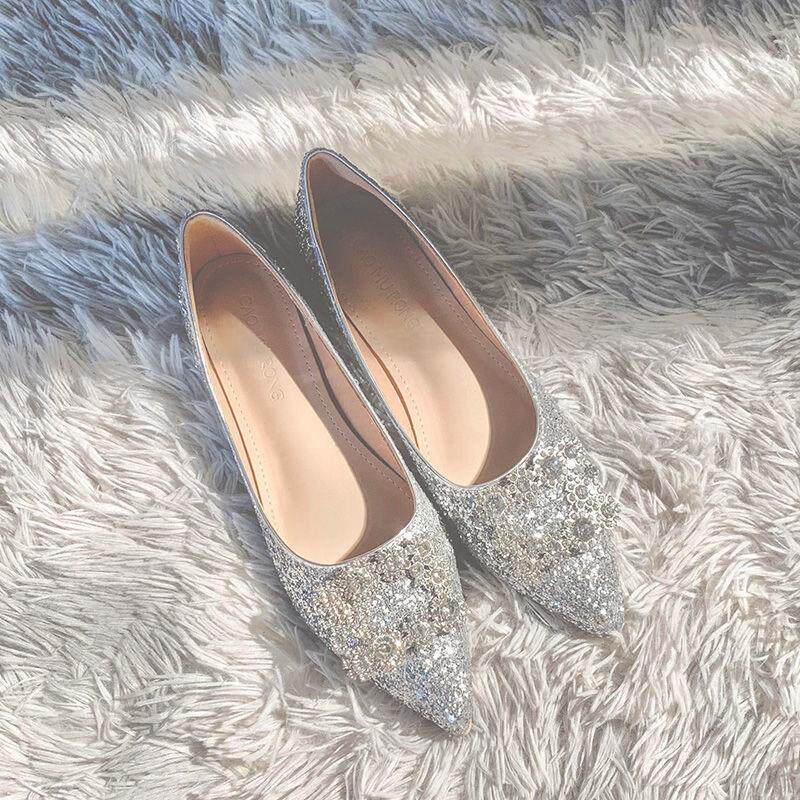 Свадебные туфли с заостренным носом, плоская подошва нескользящая обувь для беременных для невесты, большой размер, цвета шампанского, для подружки невесты