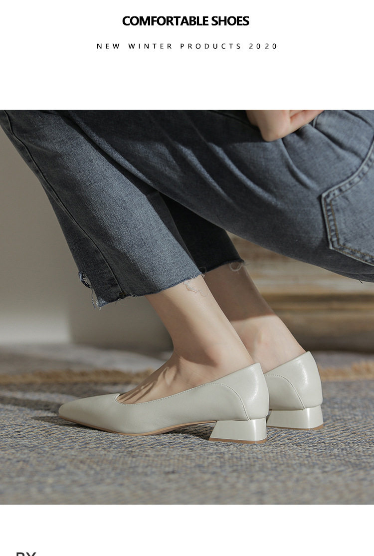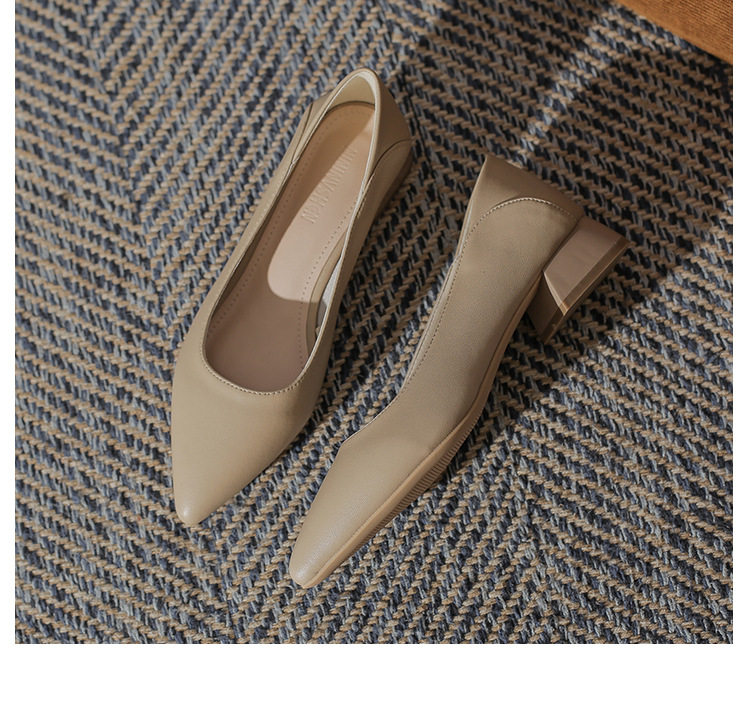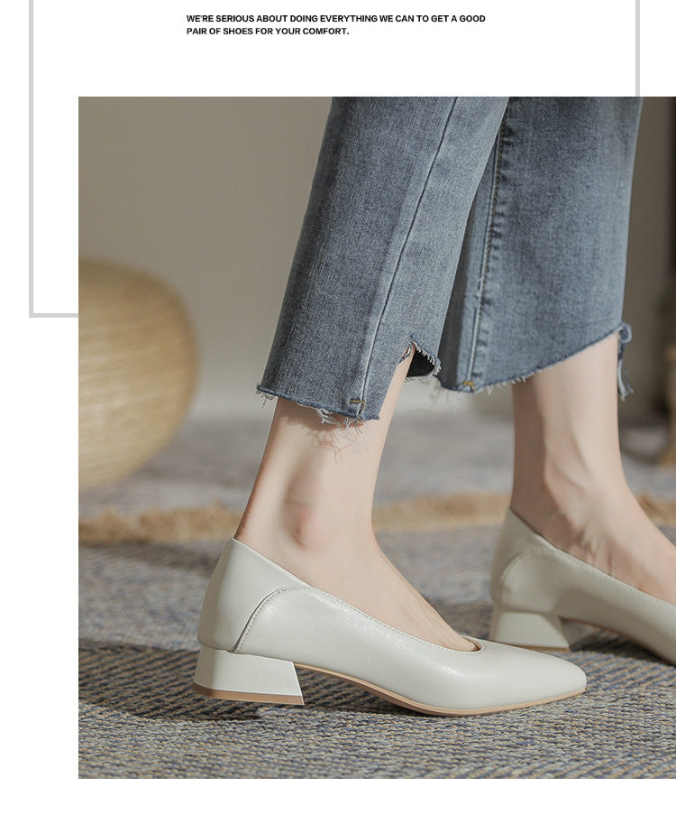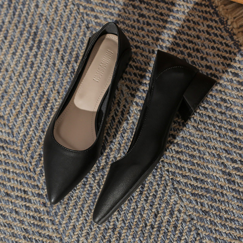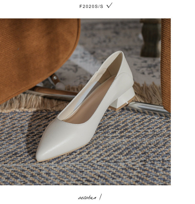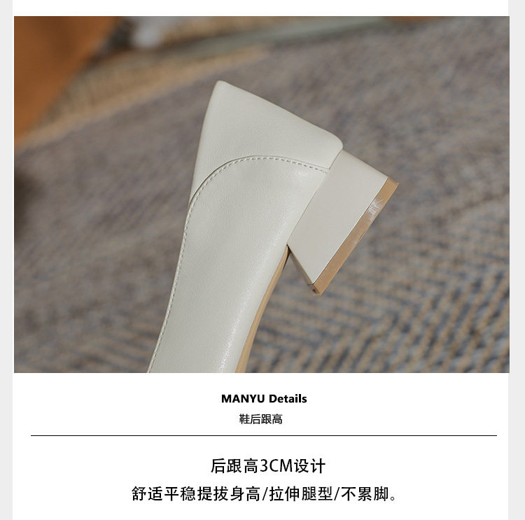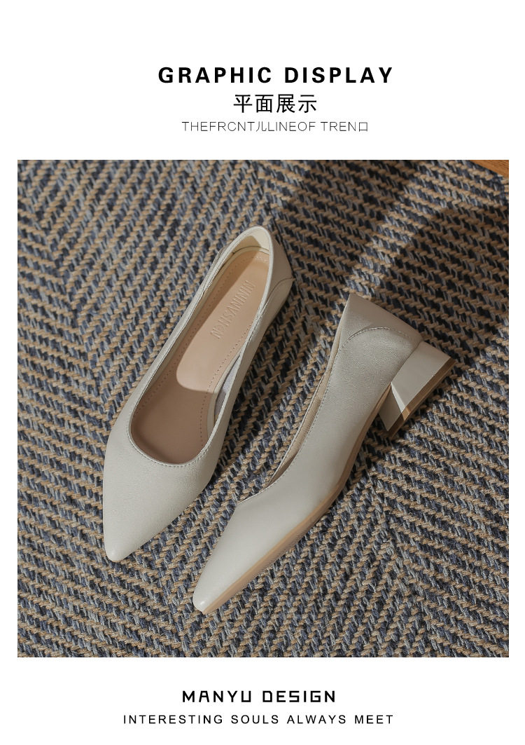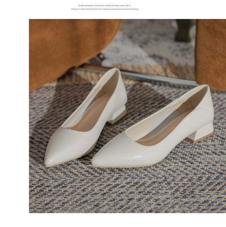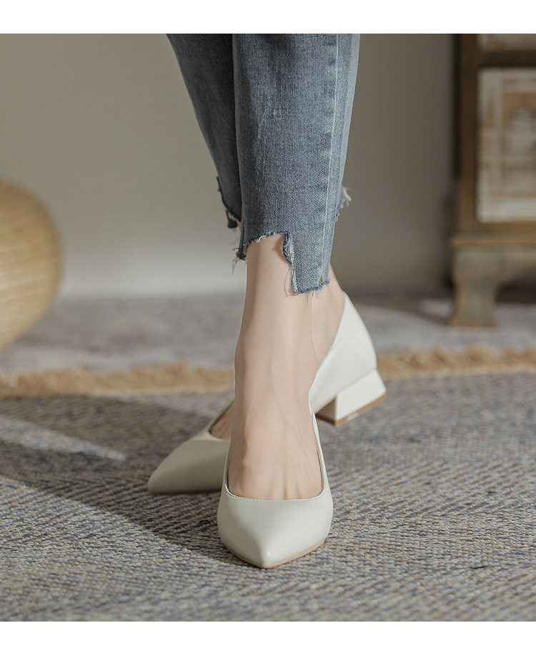 Женская рабочая обувь из натуральной кожи. Новинка 2024 года. Новинка 2024 года. Белые профессиональные рабочие кожаные туфли на высоком каблуке с острым носком и толстом каблуке. Туфли на среднем каблуке.