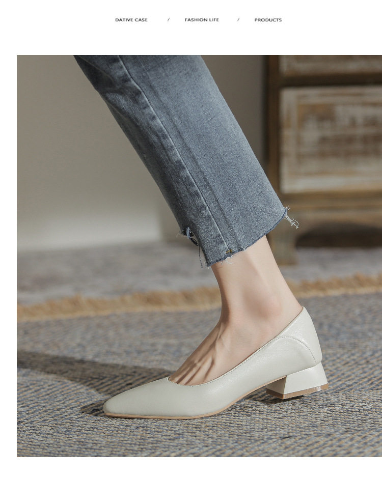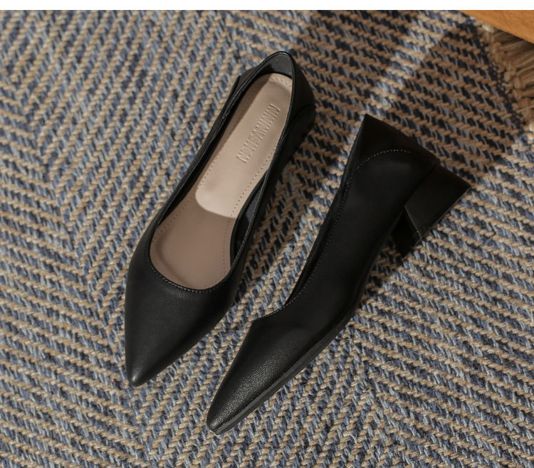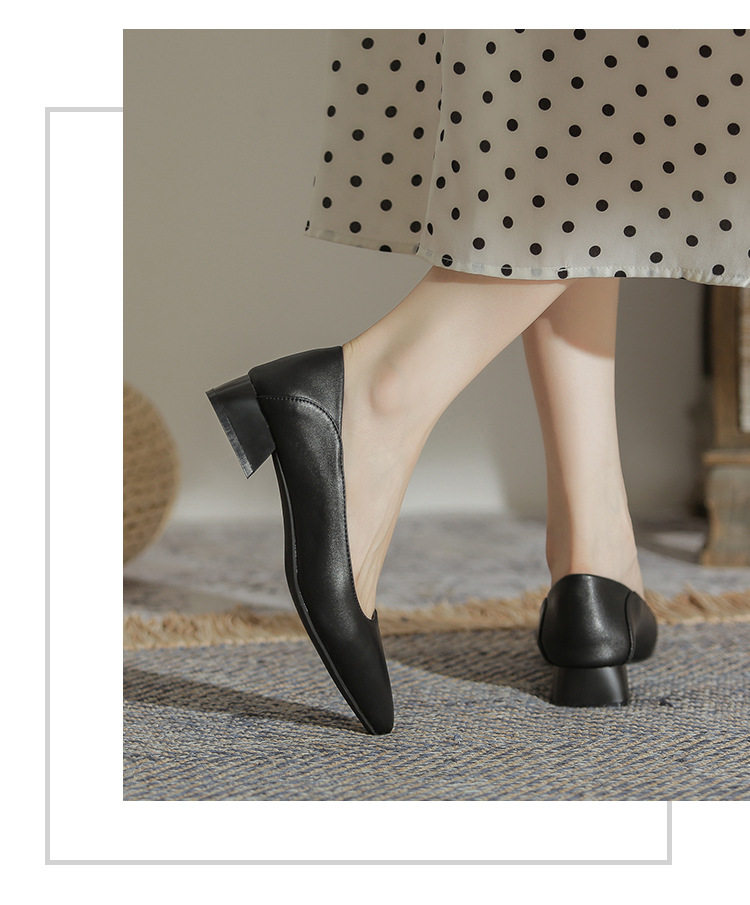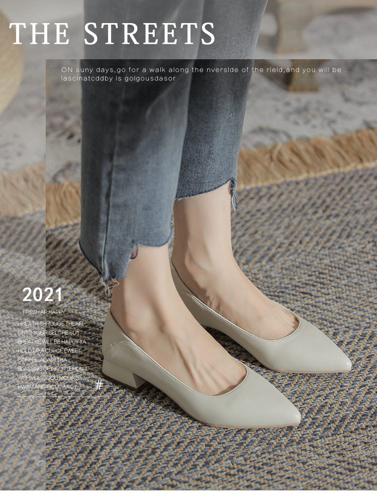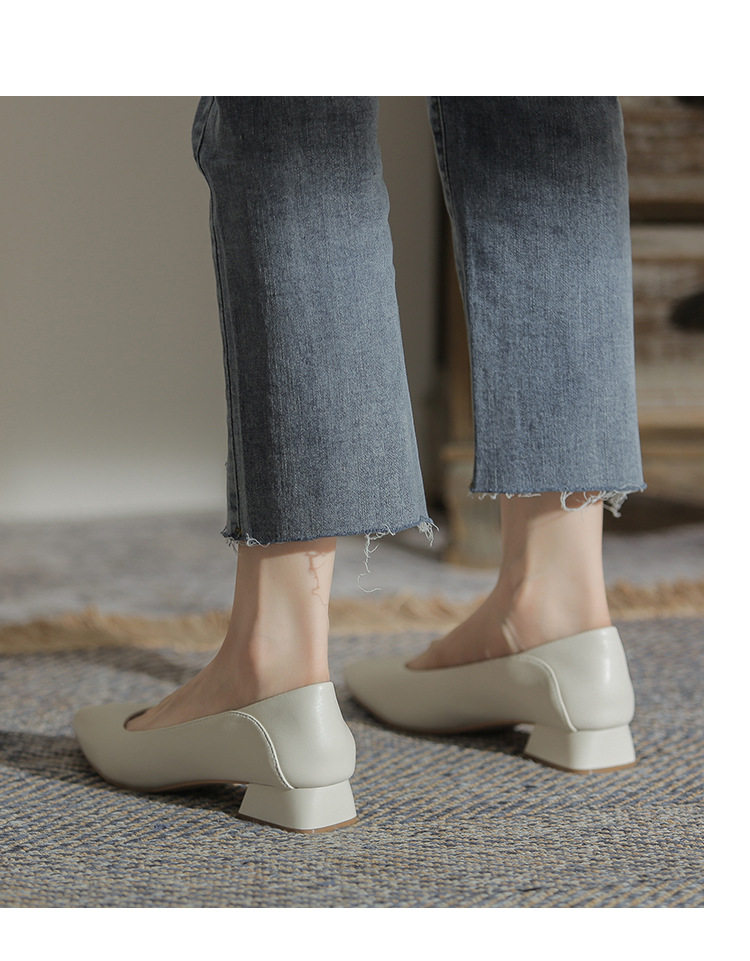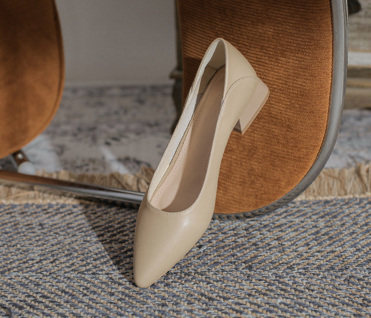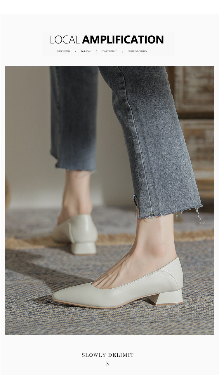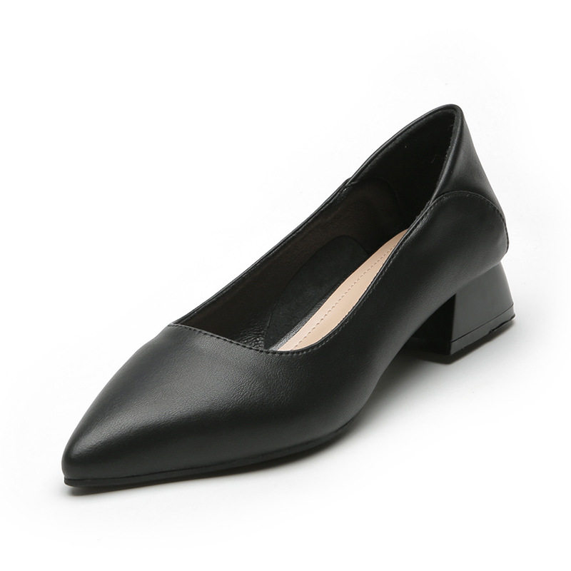 Женская рабочая обувь из натуральной кожи. Новинка 2024 года. Новинка 2024 года. Белые профессиональные рабочие кожаные туфли на высоком каблуке с острым носком и толстом каблуке. Туфли на среднем каблуке.