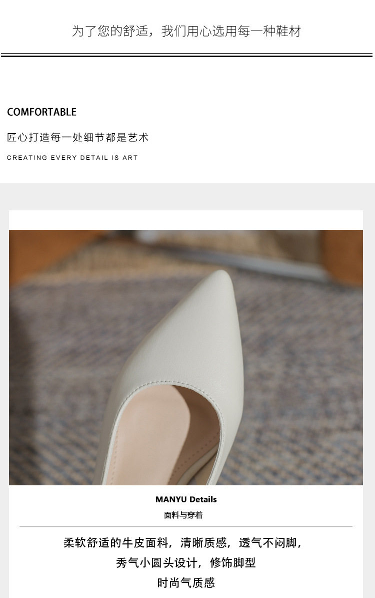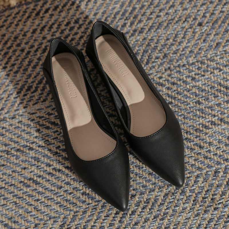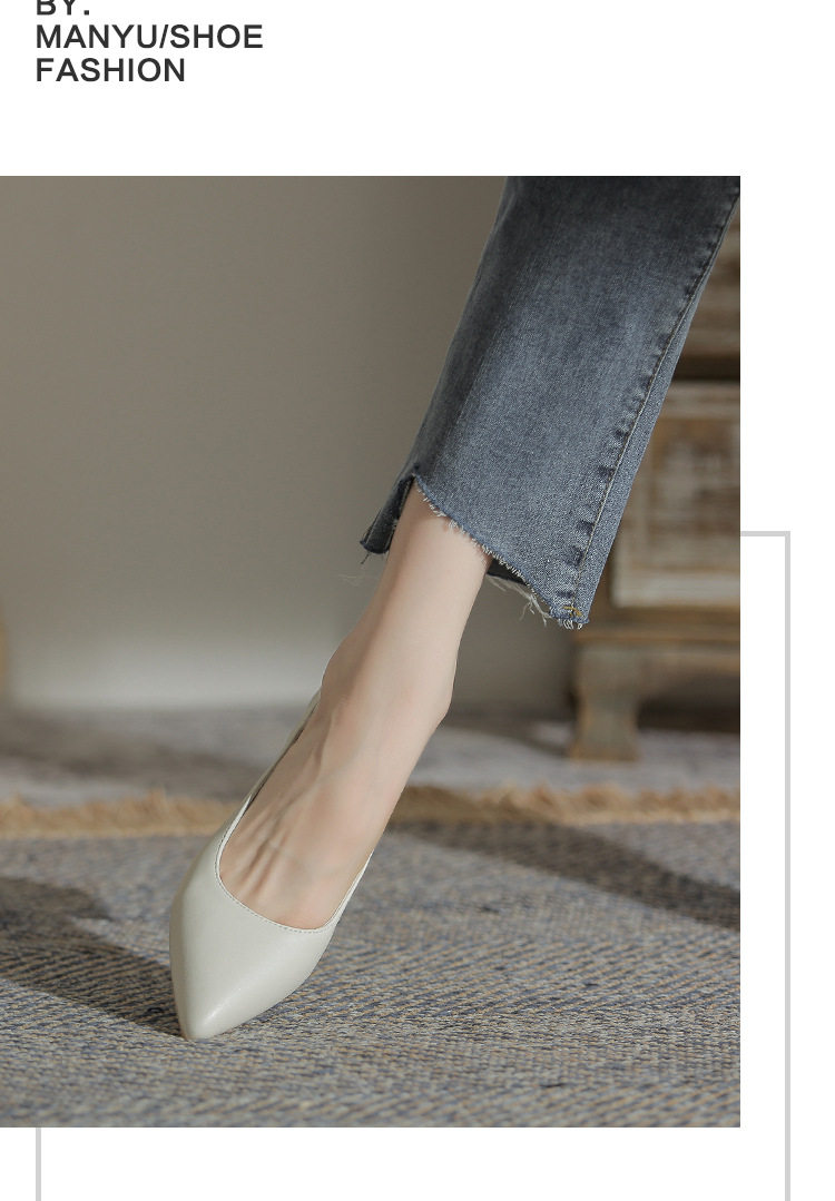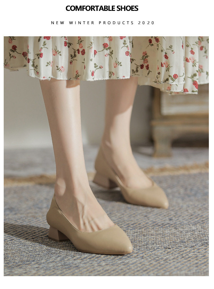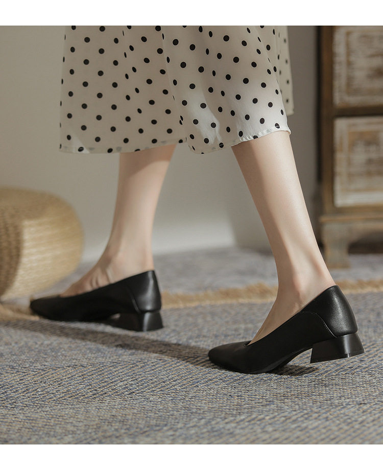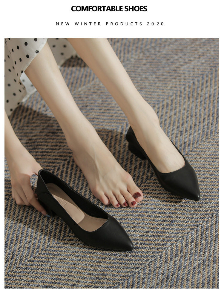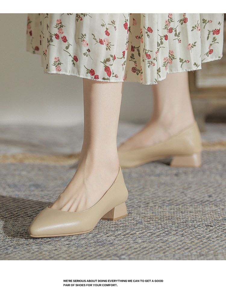 Женская рабочая обувь из натуральной кожи. Новинка 2024 года. Новинка 2024 года. Белые профессиональные рабочие кожаные туфли на высоком каблуке с острым носком и толстом каблуке. Туфли на среднем каблуке.