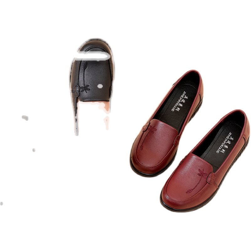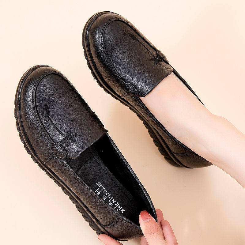 Комфортная нескользящая обувь для матери для кожаной обуви, из натуральной кожи, мягкая подошва, для среднего возраста