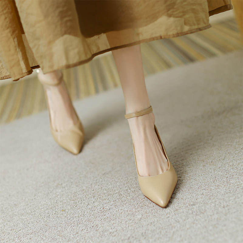Нюдовая обувь, небольшая дизайнерская подходит с юбкой с заостренным носом на высоком каблуке, французский стиль, тренд сезона