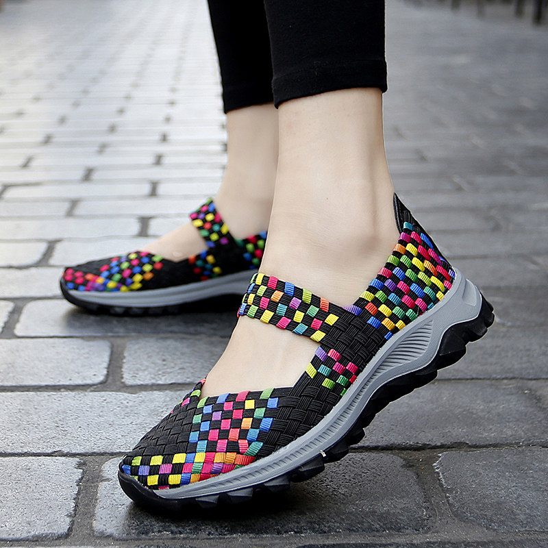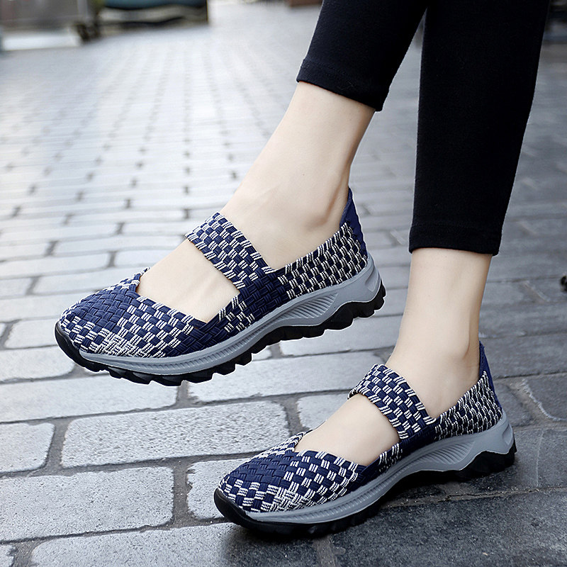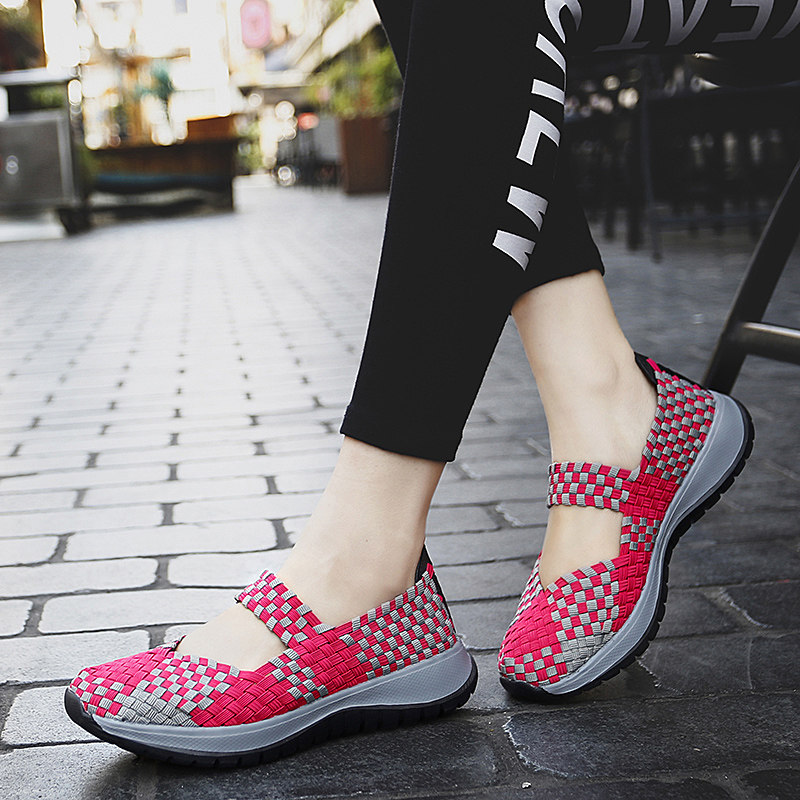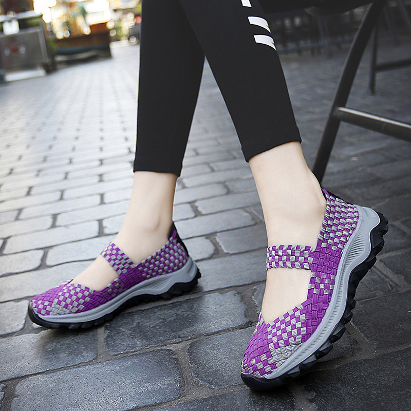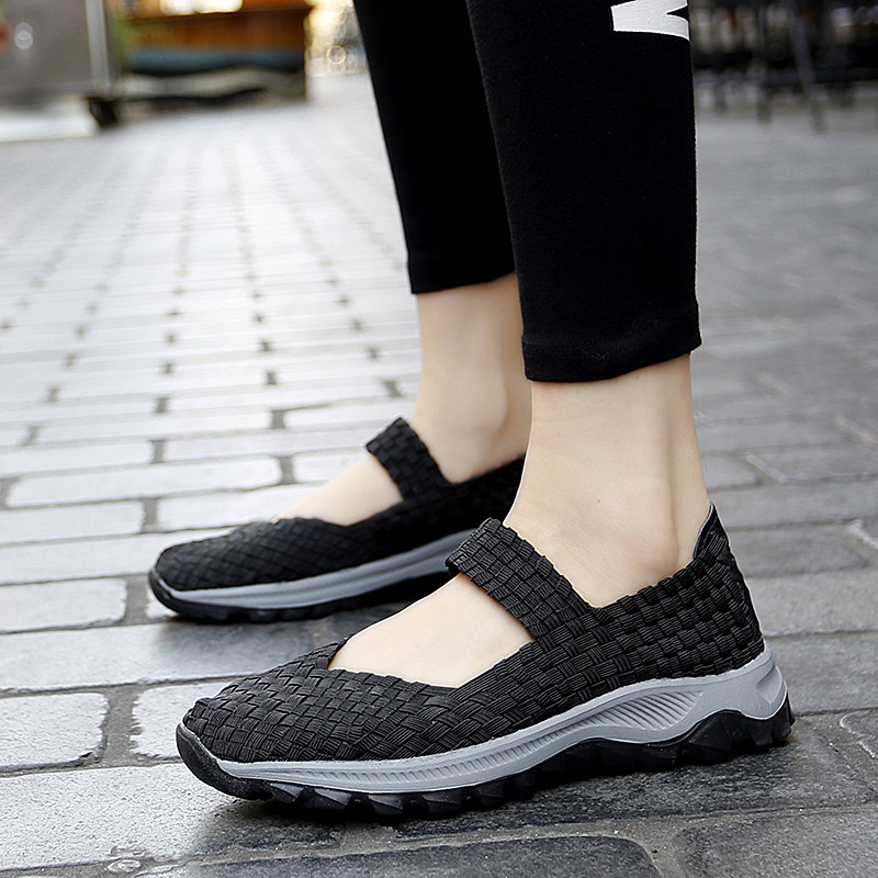 Летние слипоны, модная спортивная обувь для отдыха, универсальные плетеные туфли для матери, большой размер, для среднего возраста