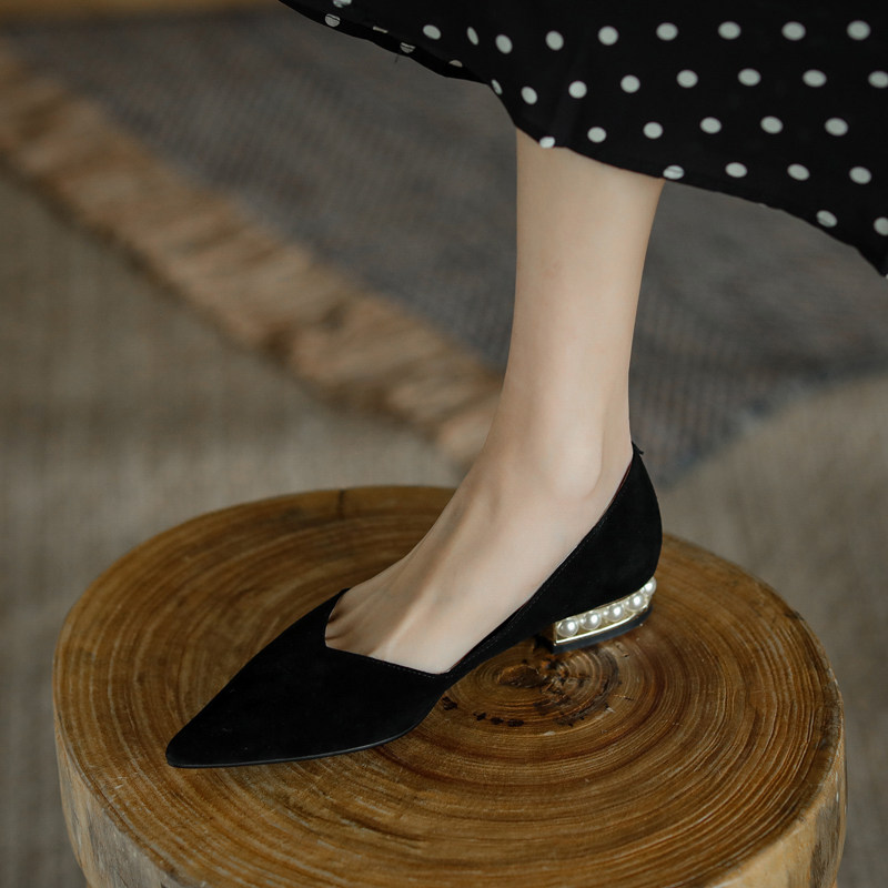 Весенняя матовая черная обувь с заостренным носом, из натуральной кожи