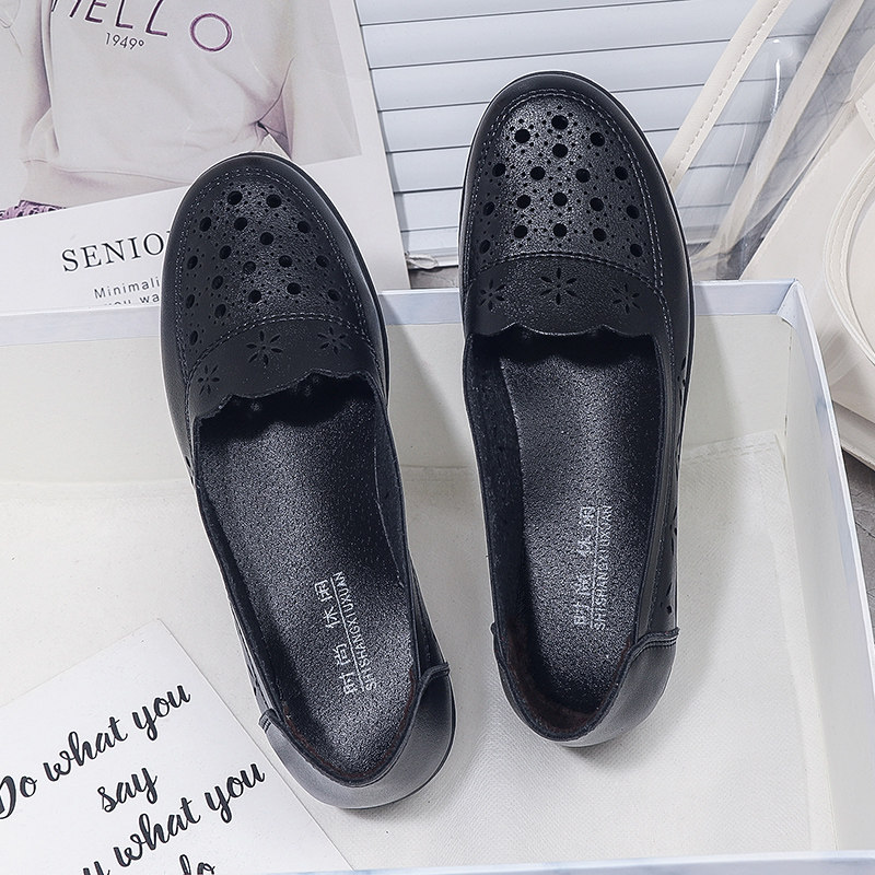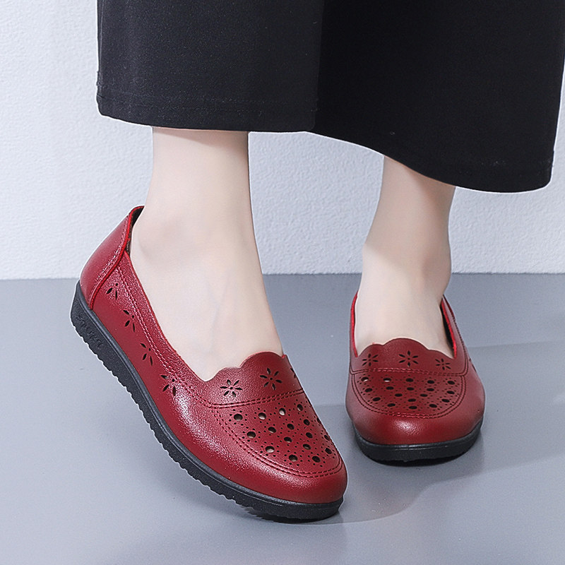Летние комфортные нескользящие сандалии для кожаной обуви, дышащая обувь для матери, для среднего возраста, мягкая подошва