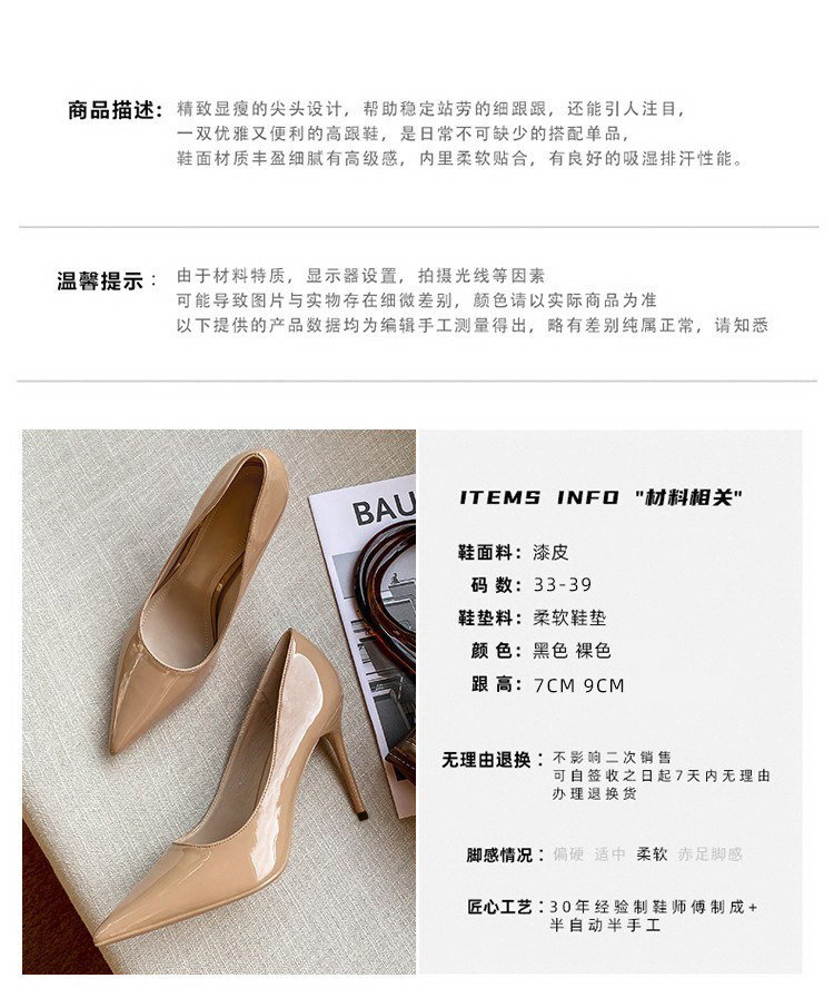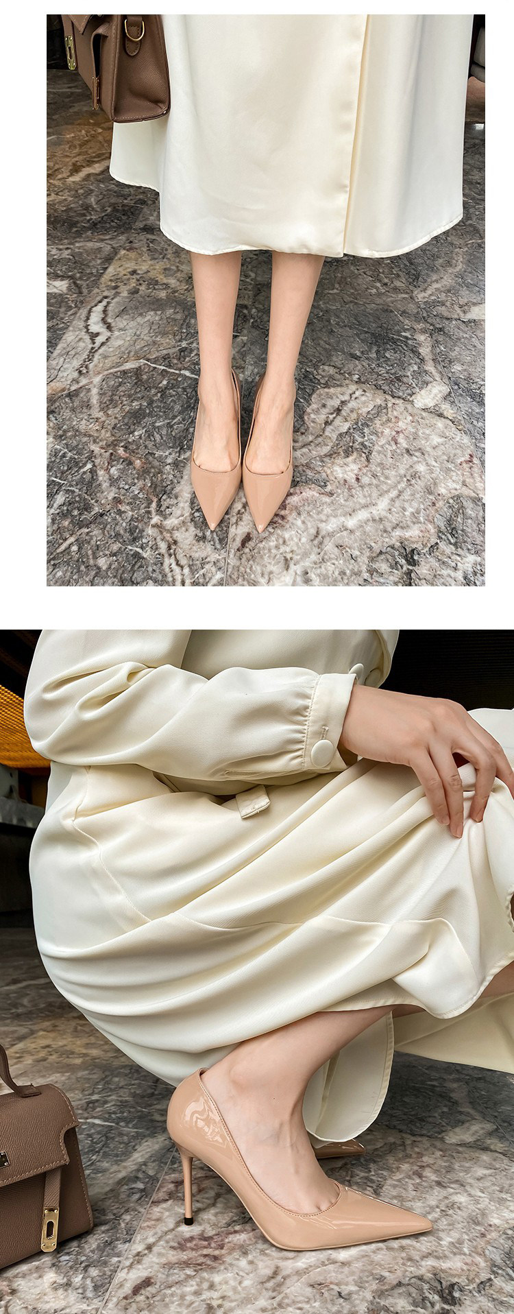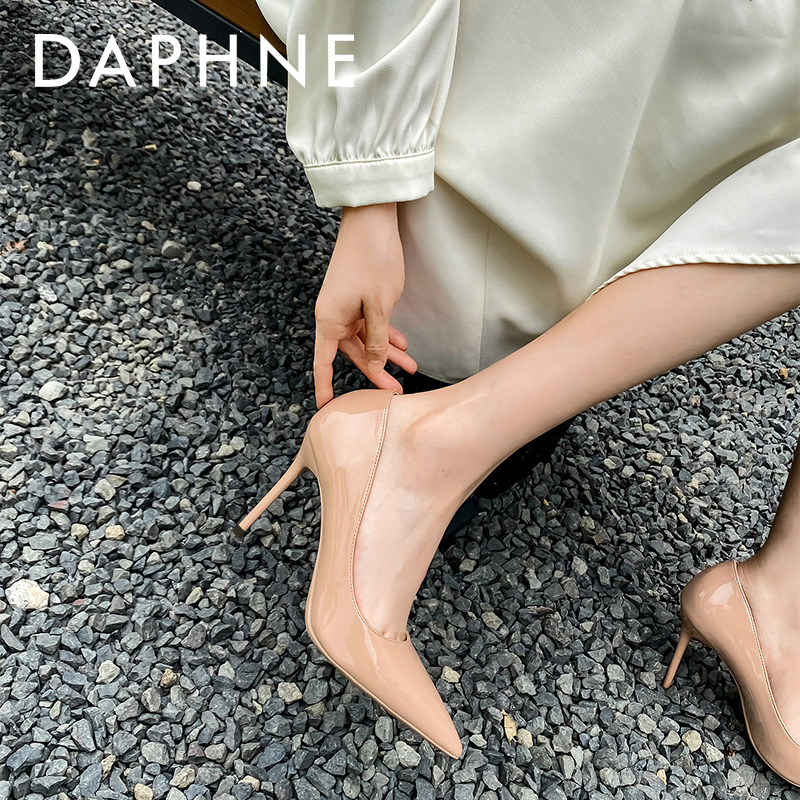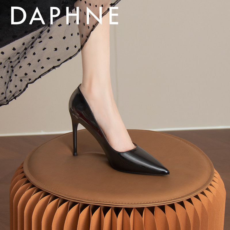 Daphne Sheep Leather Pad Black High Heels Women's Heel 2024 Новый OL Professional Patent Кожаная кожаная обнаженная.
