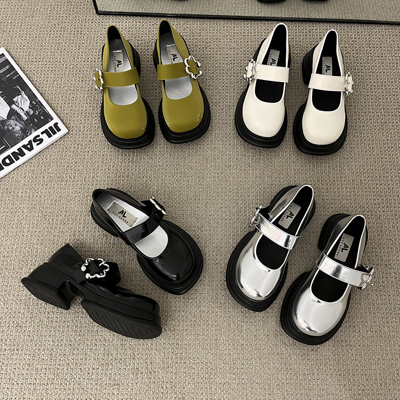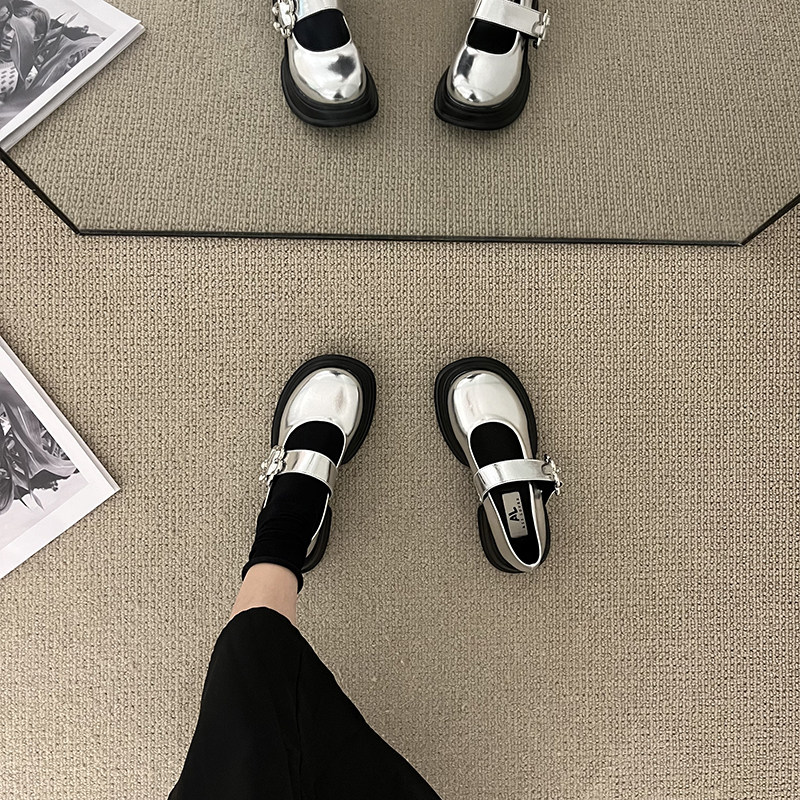 Обувь на высоком каблуке на платформе, туфли, серебряные лоферы для кожаной обуви, французский стиль, 2022, осенняя