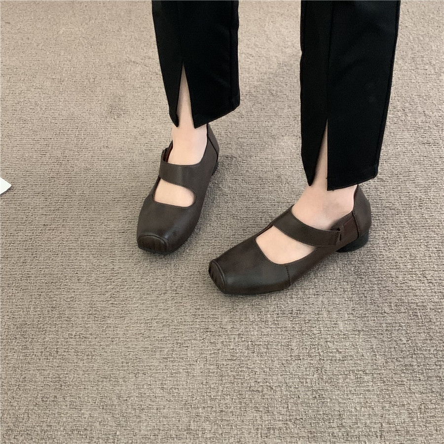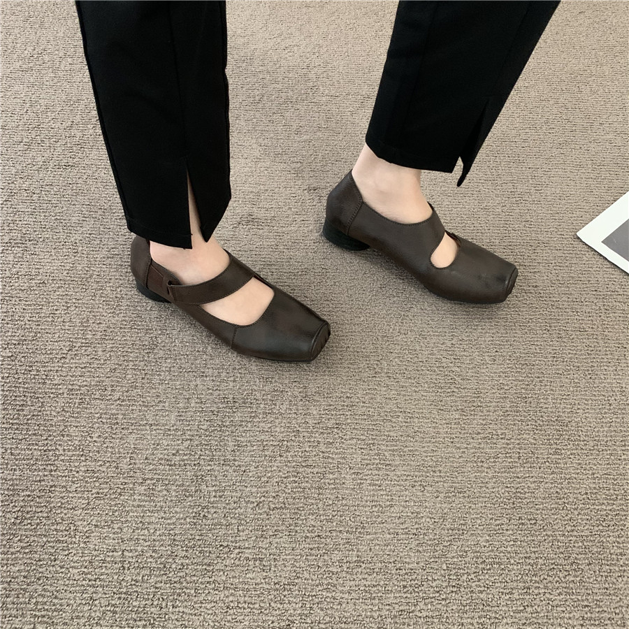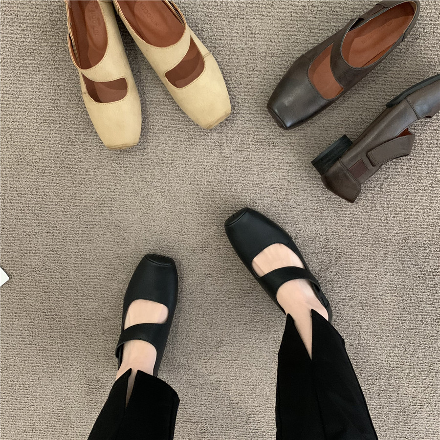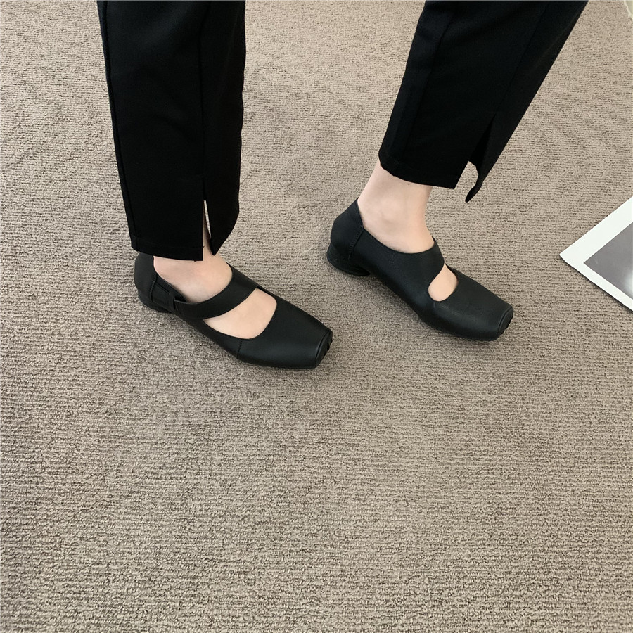 Балетки во французском ретро-литературном стиле со свиным носом, новые летние нишевые женские туфли Мэри Джейн на среднем толстом каблуке с неглубоким горлышком