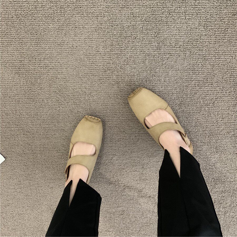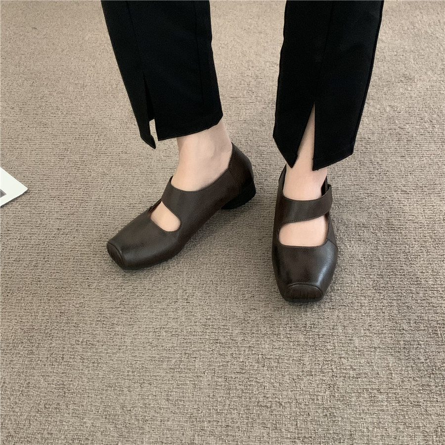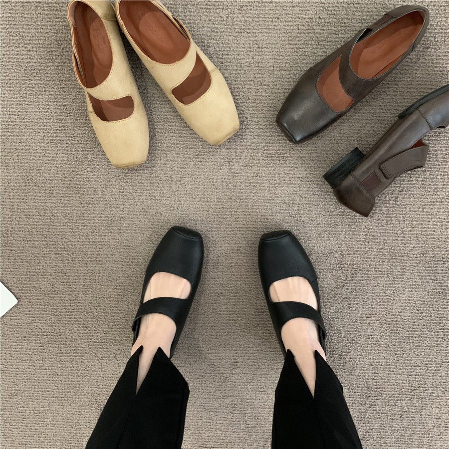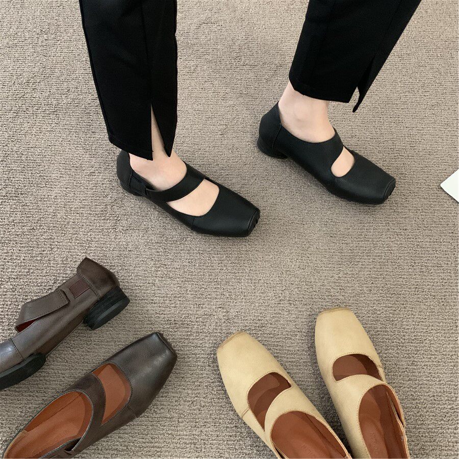 Балетки во французском ретро-литературном стиле со свиным носом, новые летние нишевые женские туфли Мэри Джейн на среднем толстом каблуке с неглубоким горлышком