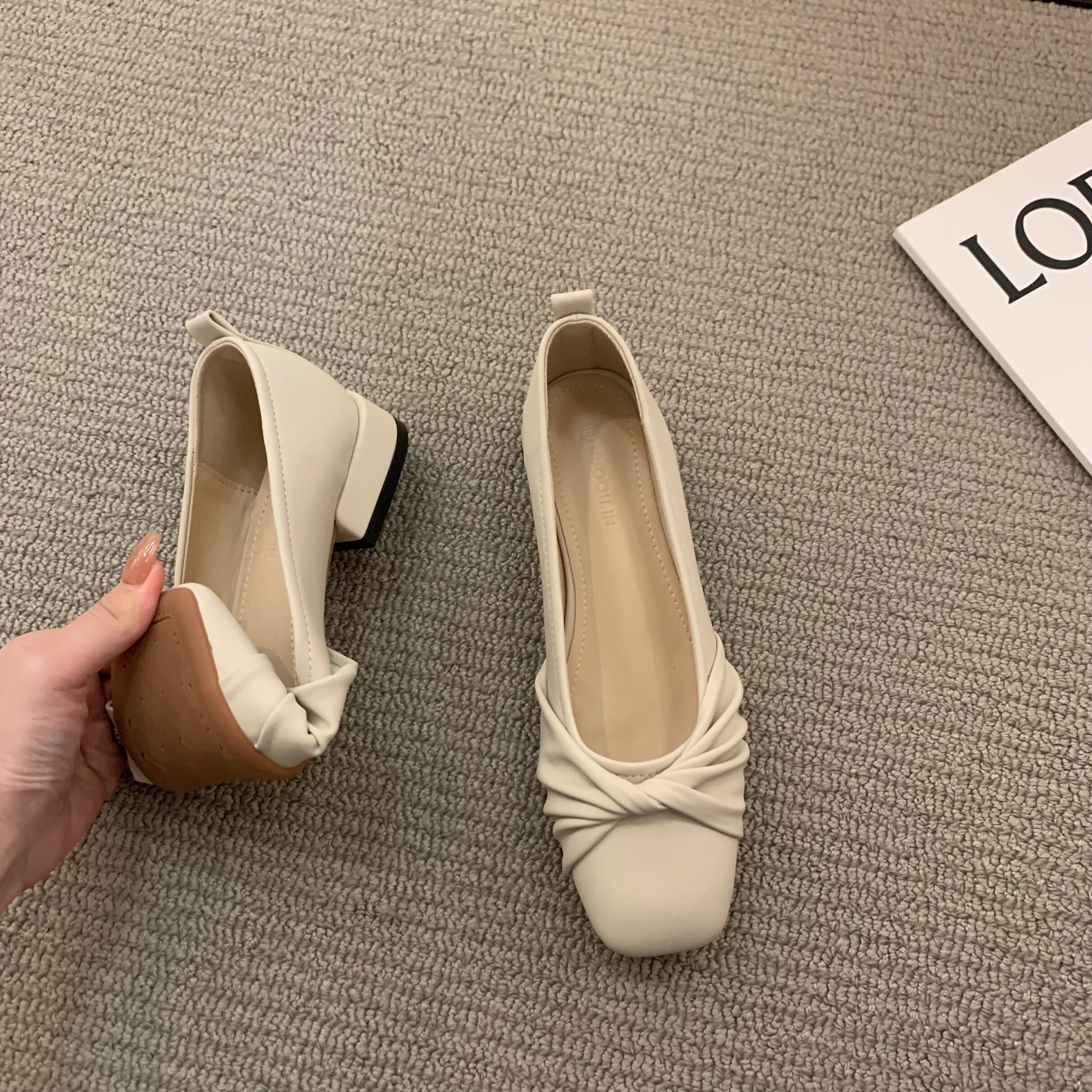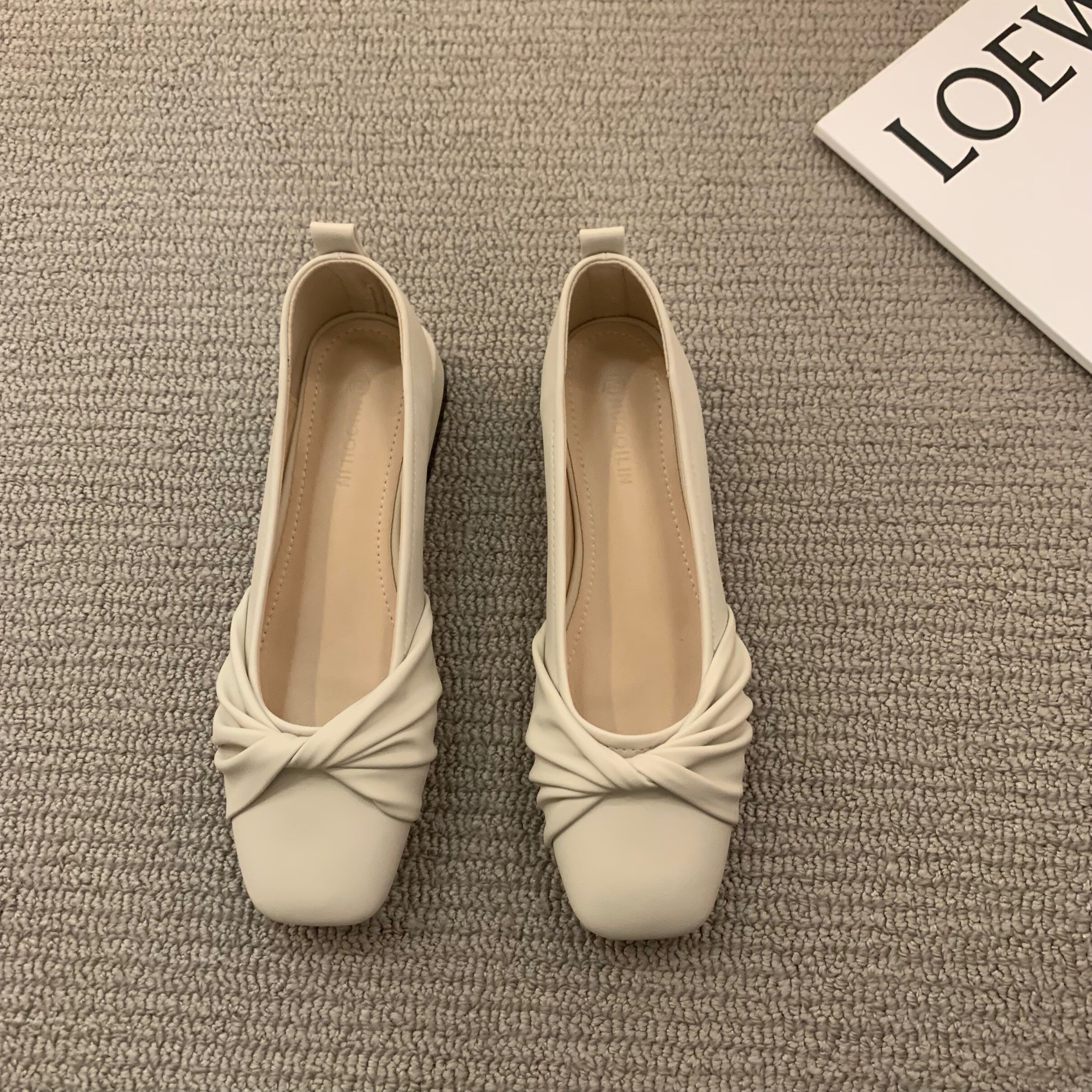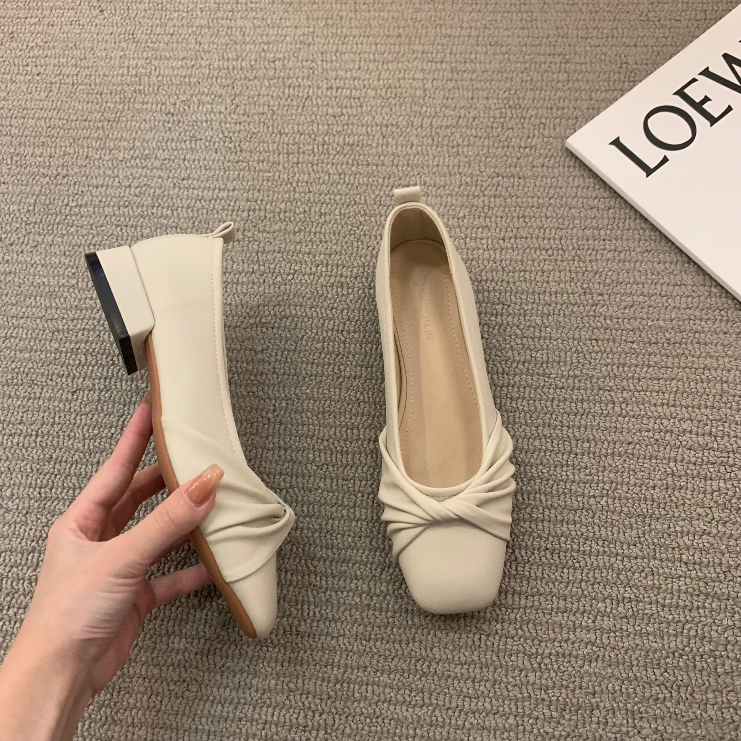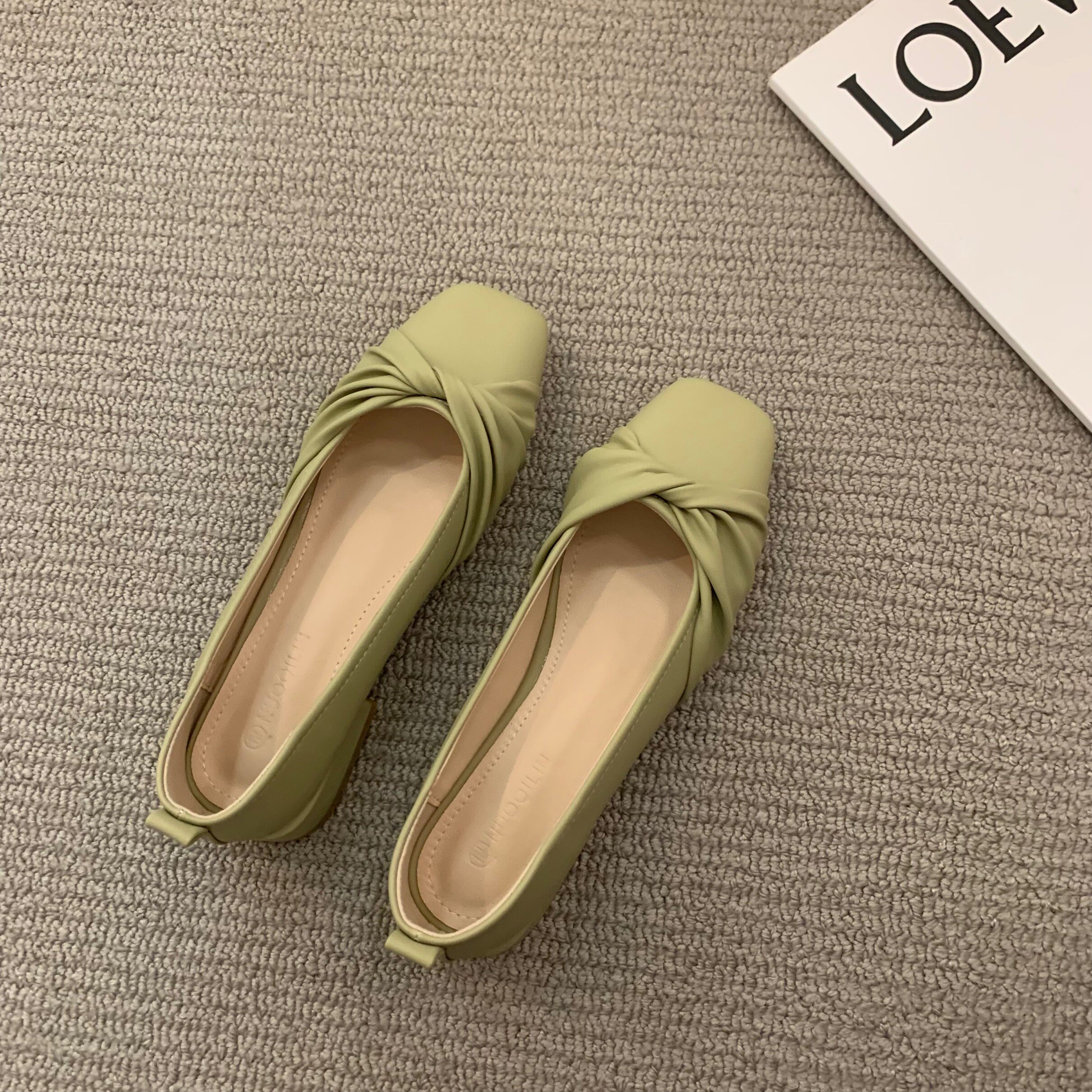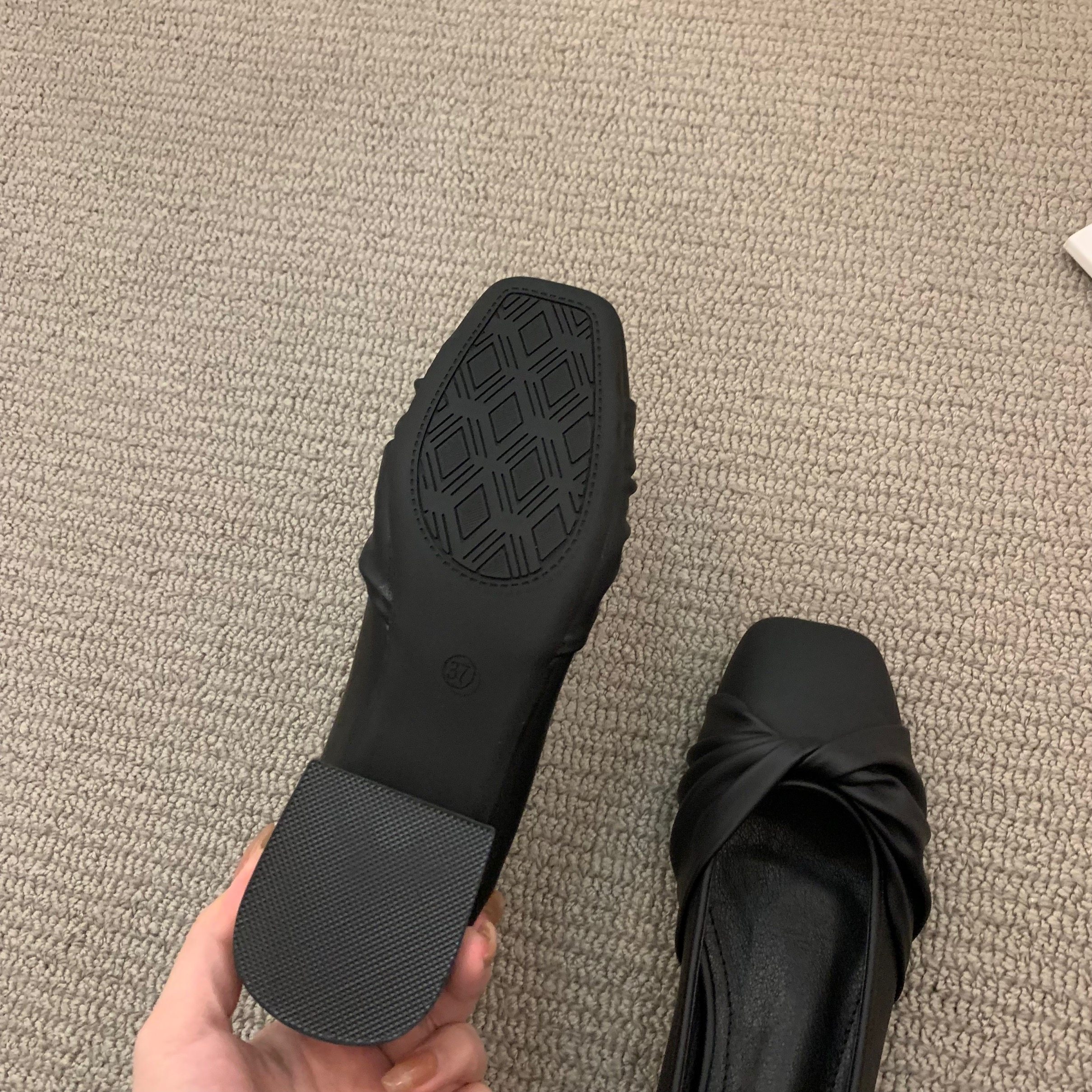 Низколепа квадратные черные туфли для одиночной обувь женская женская обувь 2023 Новая весенняя плоская складка ретро -скрещивание и осенние совок обуви