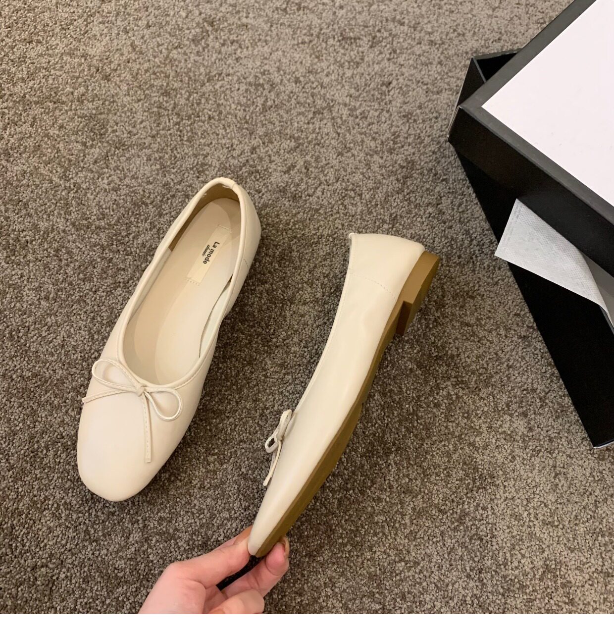 Весенняя черная обувь с бантиком, 2025 года, французский стиль